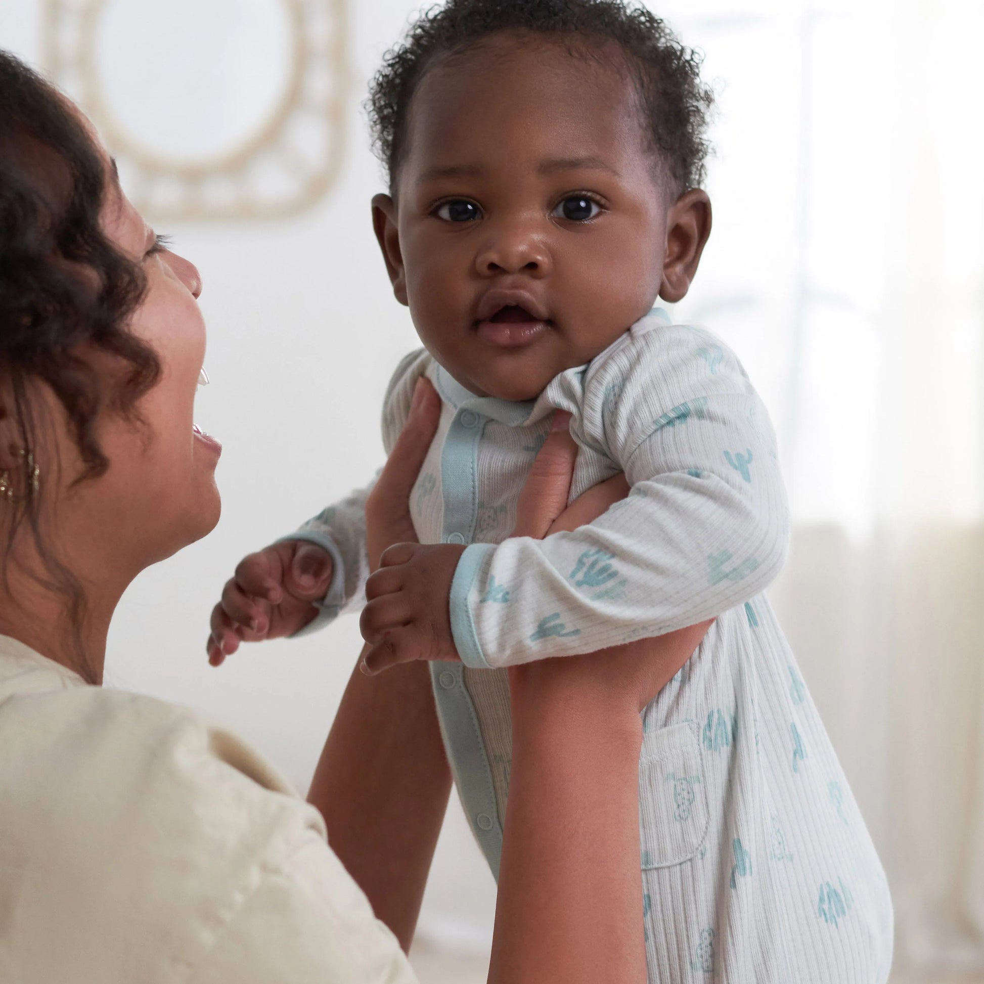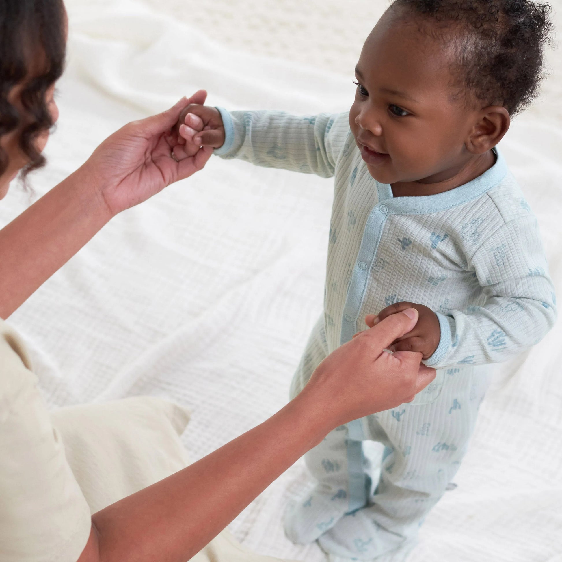 Our soft desert themed Sleep 'N Plays are the ultimate loungewear, perfect for newborns! The snap front makes changes easier and is gentle on his healing tummy. We use STANDARD 100 by OEKO-TEX® certification on products tested in an independent laboratory against a list of more than 400 harmful substances, including PFAS.