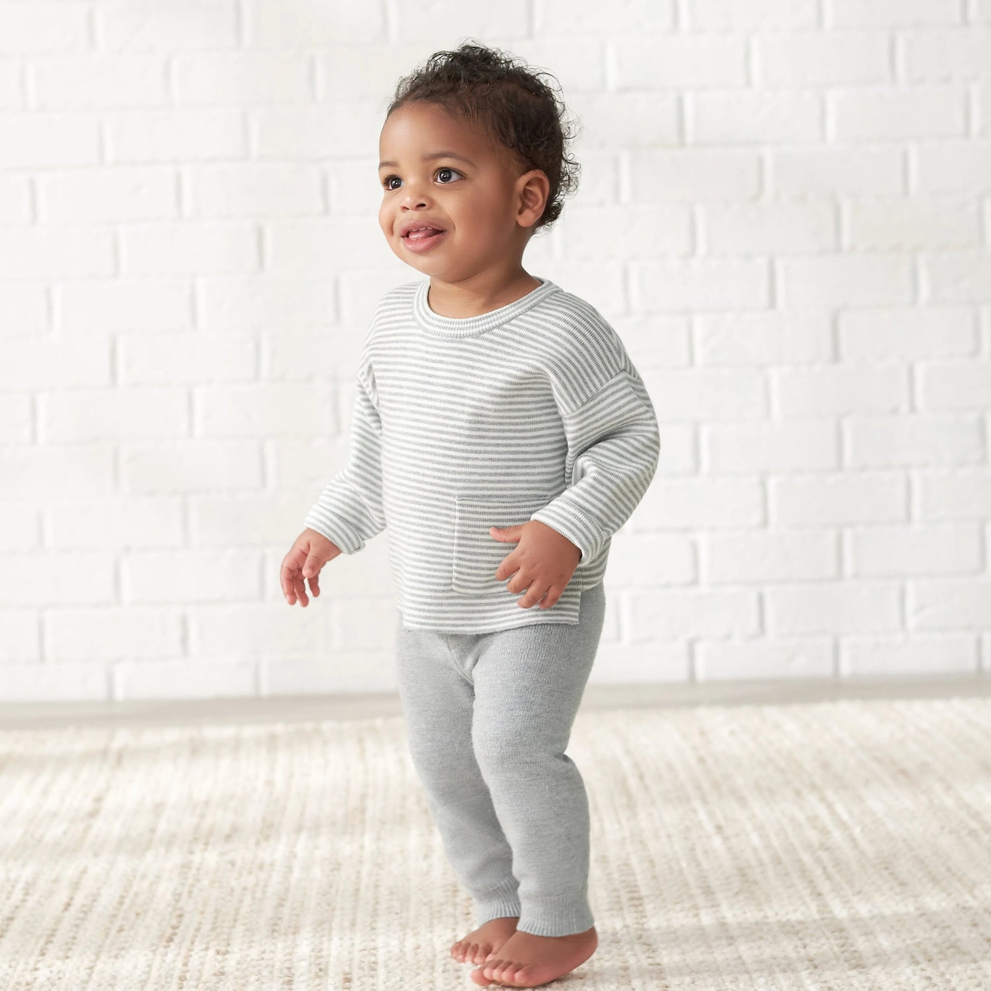 Infant & Toddler Boys Gray Heather Striped Sweater with Pocket