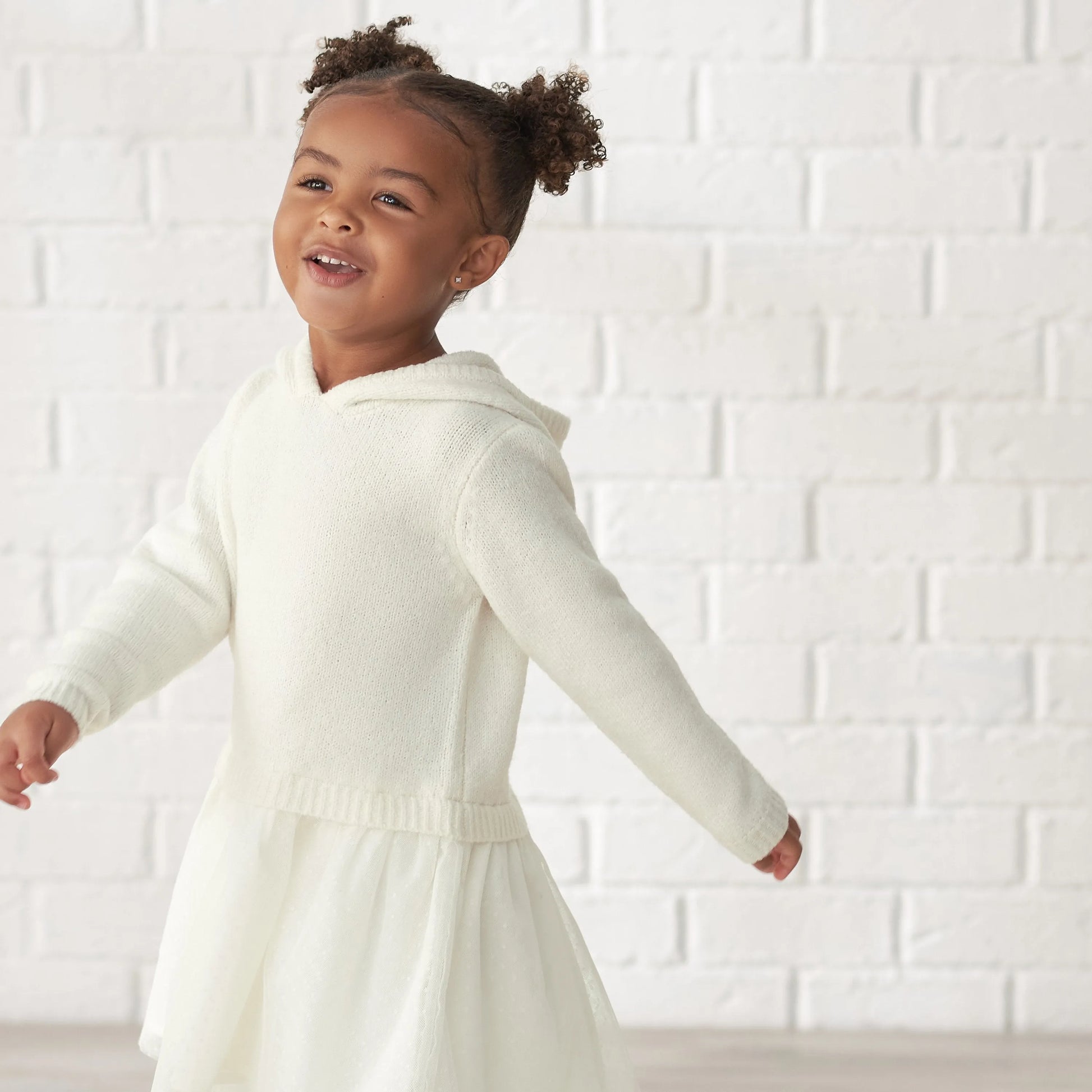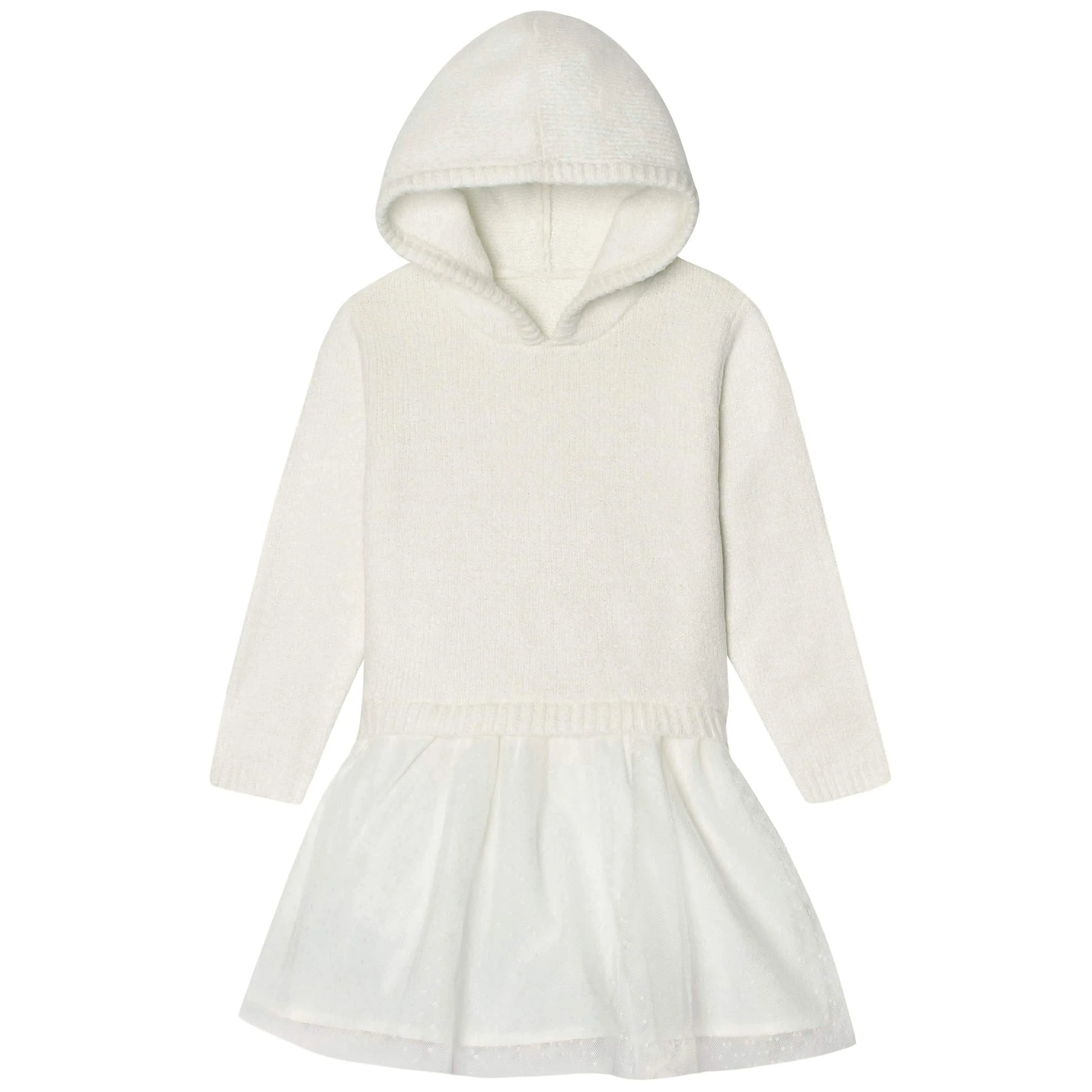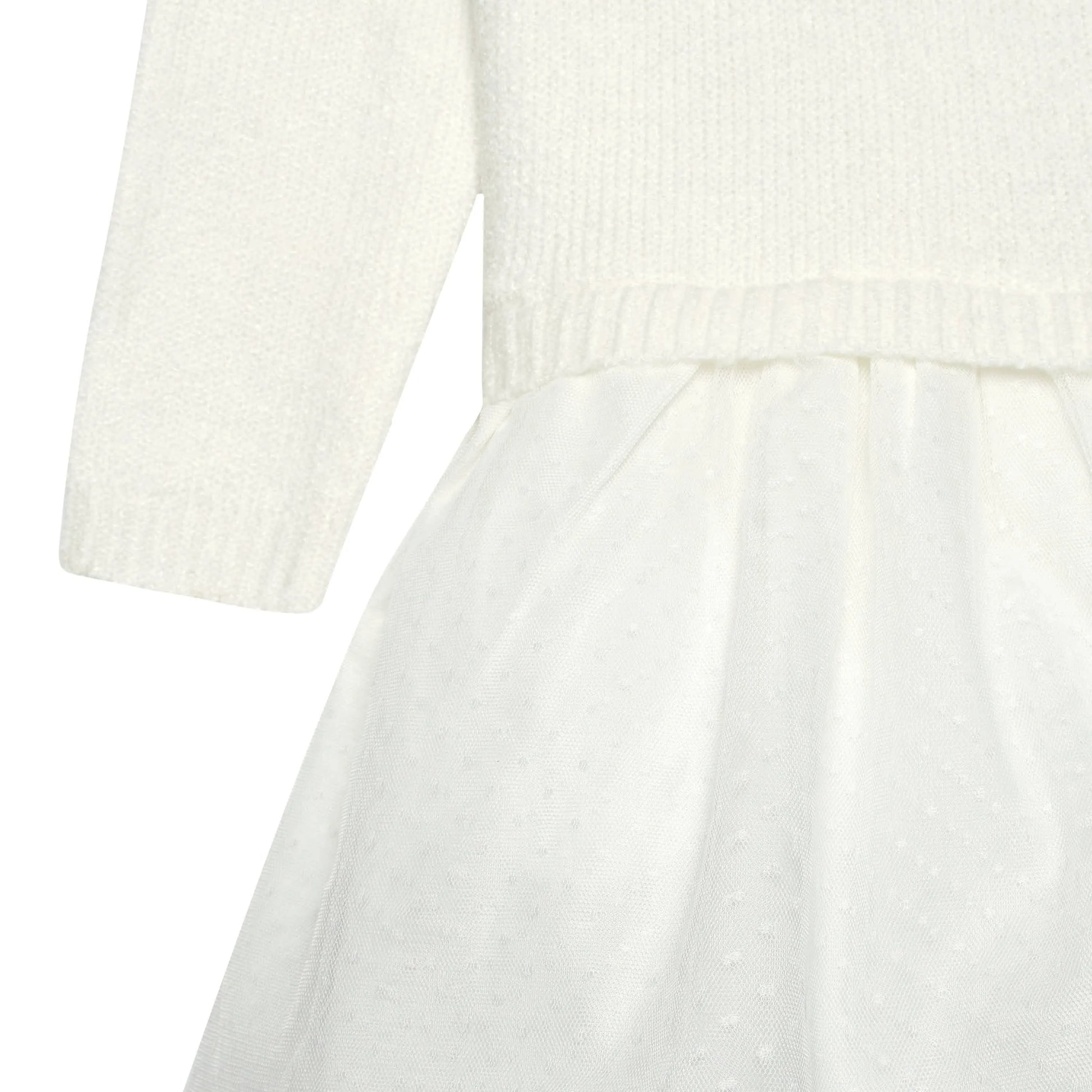 Infant & Toddler Girls White Sweater Dress With Tulle Skirt