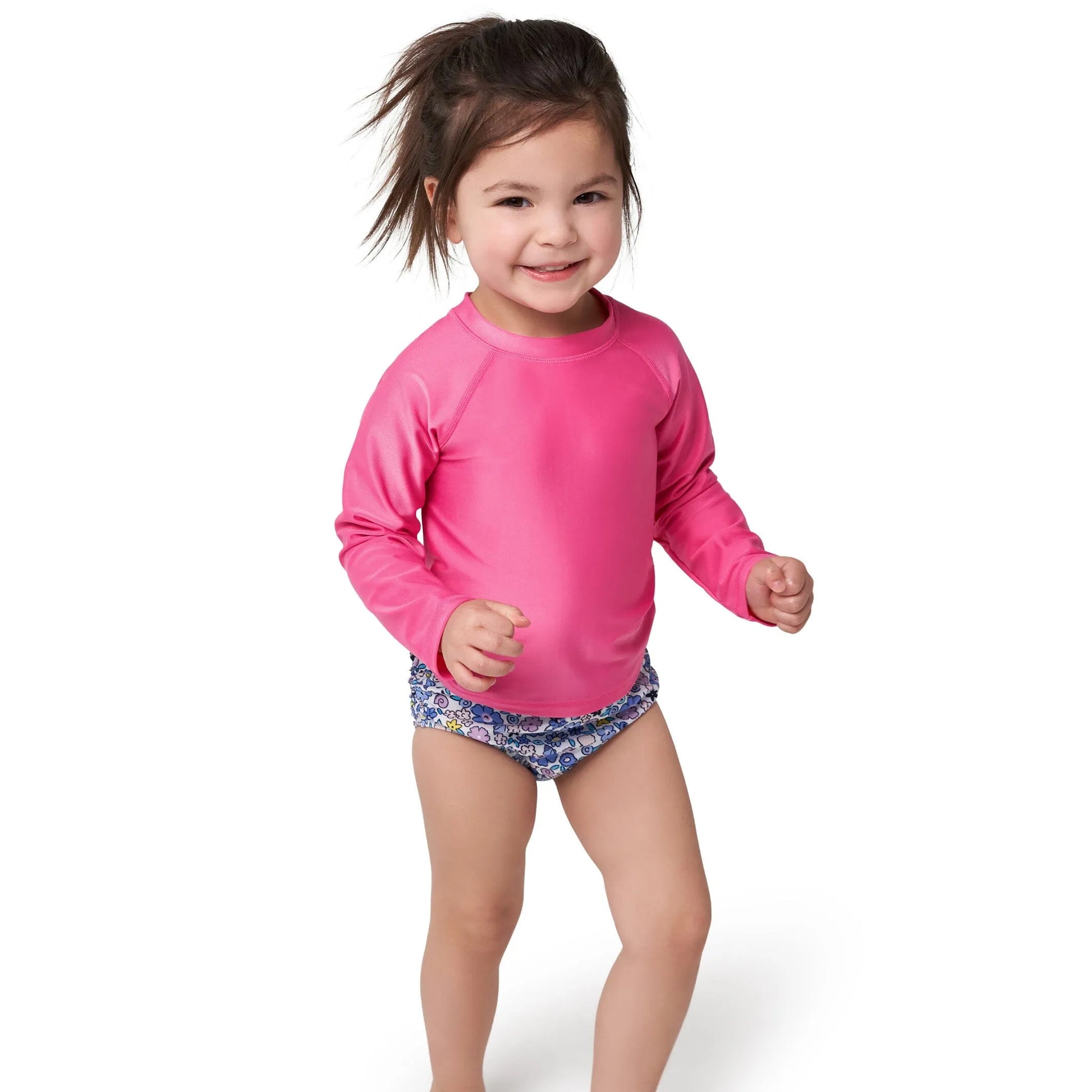 Our pink baby and toddler rashguards are made with UPF 50+ fabric to help protect your little one from the sun. They’re cute, comfy, easy-care, and perfect for any swimming adventure!