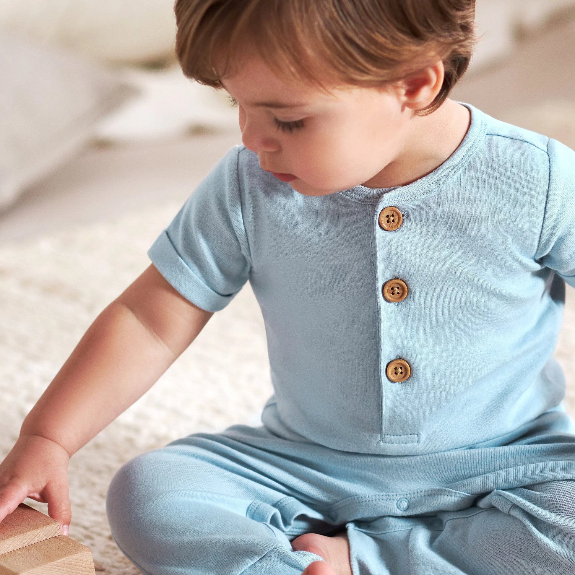 Our adorable short sleeve rompers will keep them cool in the spring or summer! Each baby girl and baby boy romper is made with super soft cotton fabric blended with a touch of spandex. Our essentials have been independently certified with STANDARD 100 by OEKO-TEX® so that you don’t have to worry about harmful substances in your baby’s wardrobe.
