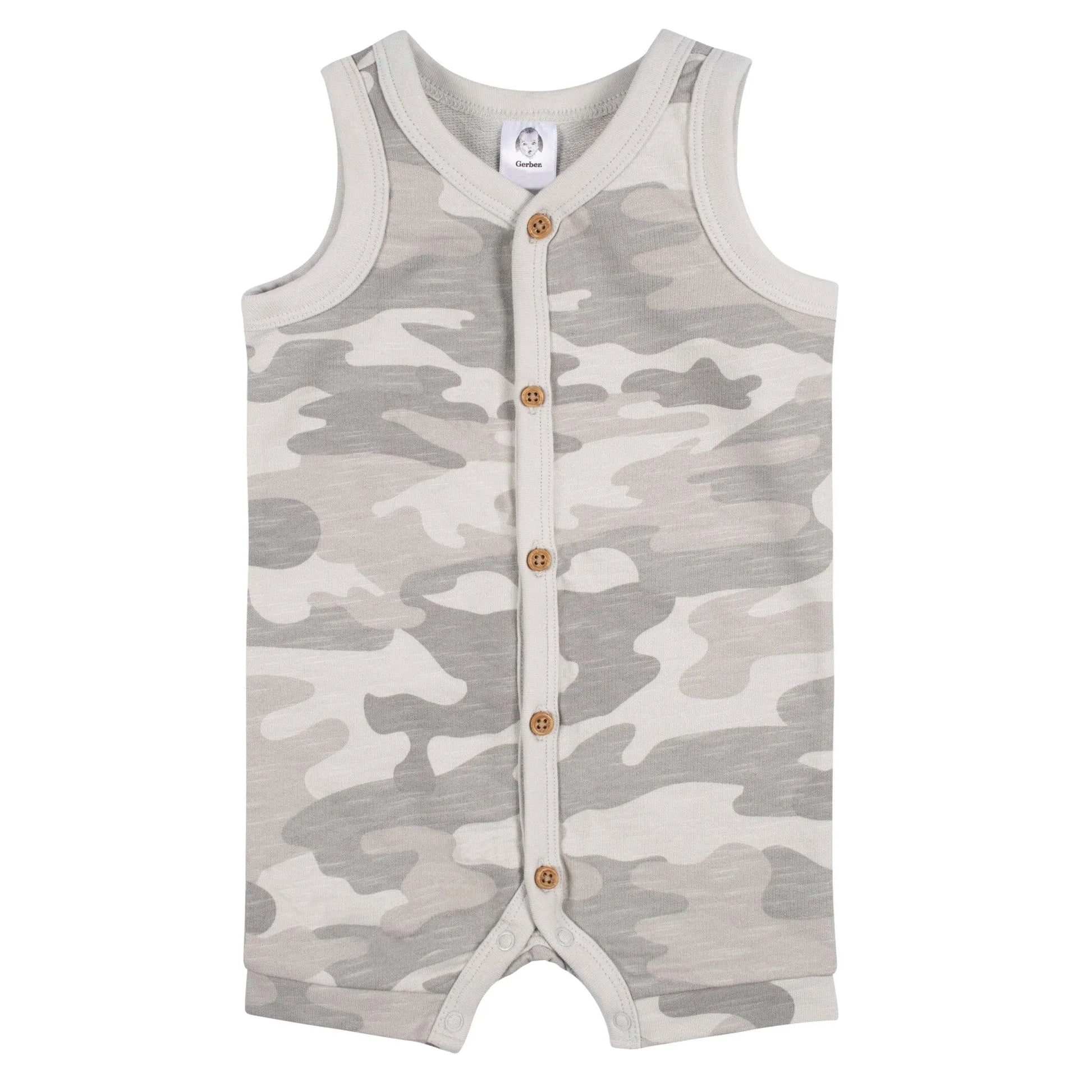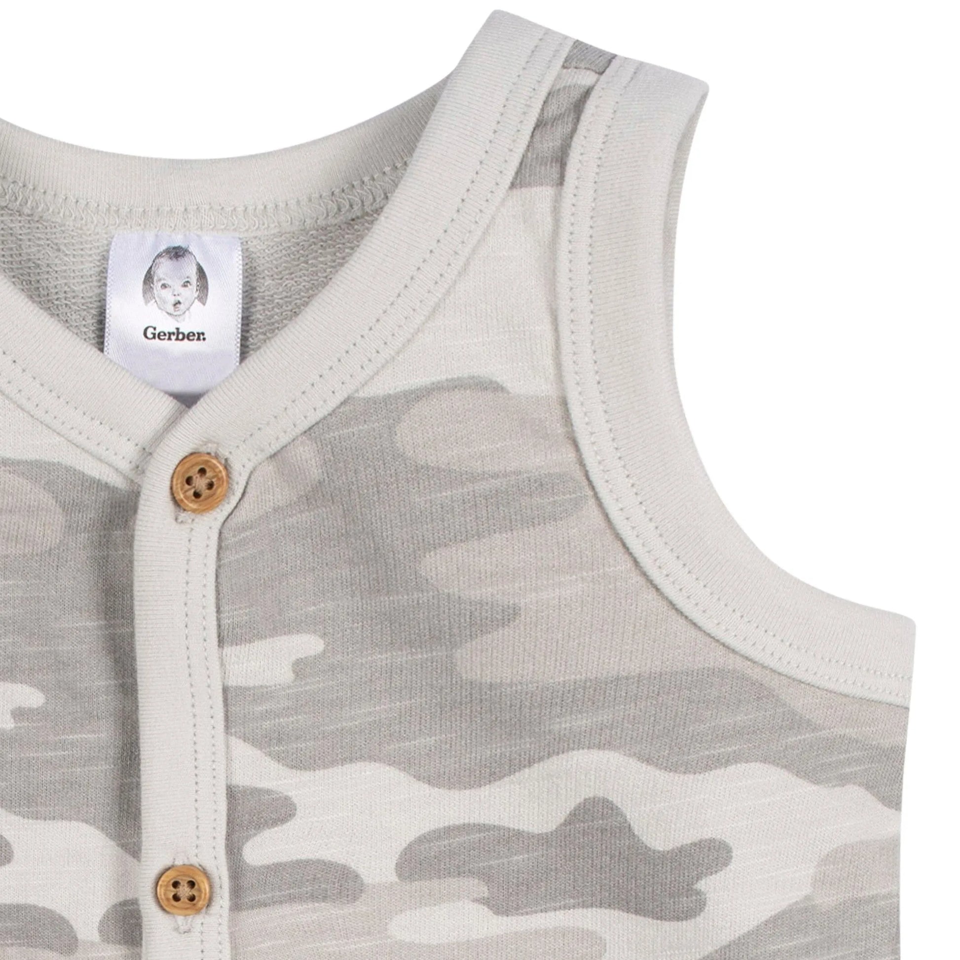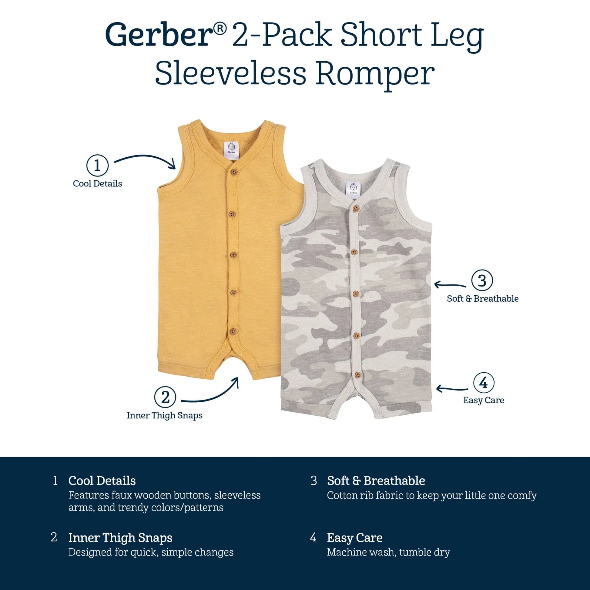 2-Pack Baby Boys Camo & Yellow Short Leg Sleeveless Romper