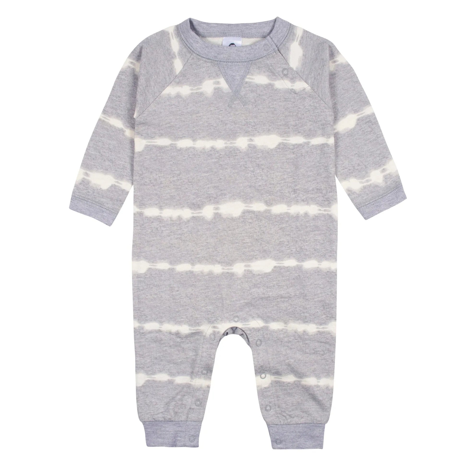 2-Pack Baby Boys Light Gray Tie Dye & Striped Raglan Sleeve Romper