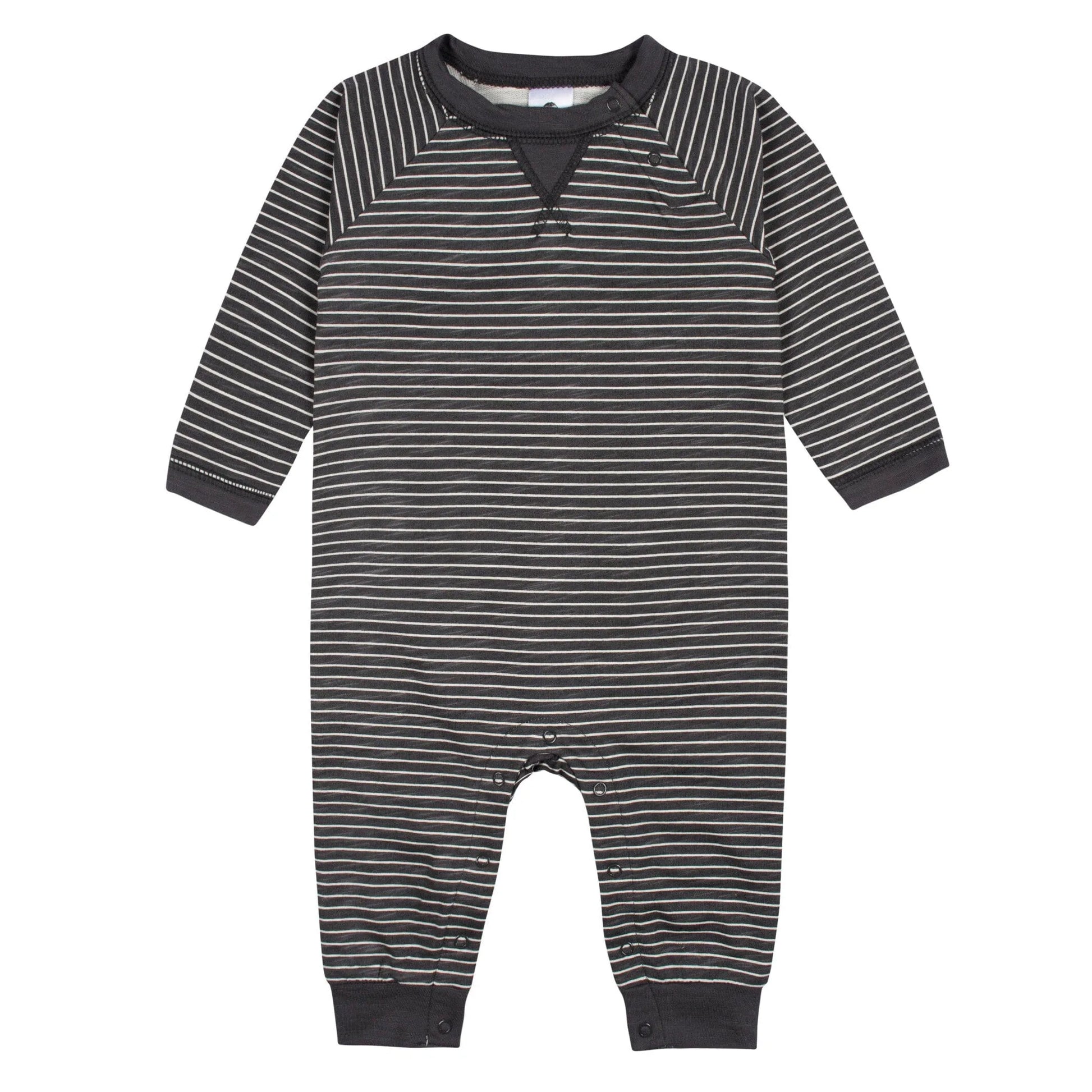 Your little one will adore our soft long sleeve rompers! Each one is made with 100% cotton french terry. We had our essentials independently certified with STANDARD 100 by OEKO-TEX® so that you don’t have to worry about harmful substances in your baby’s wardrobe. This pack includes two baby boy light gray camo and striped rompers.