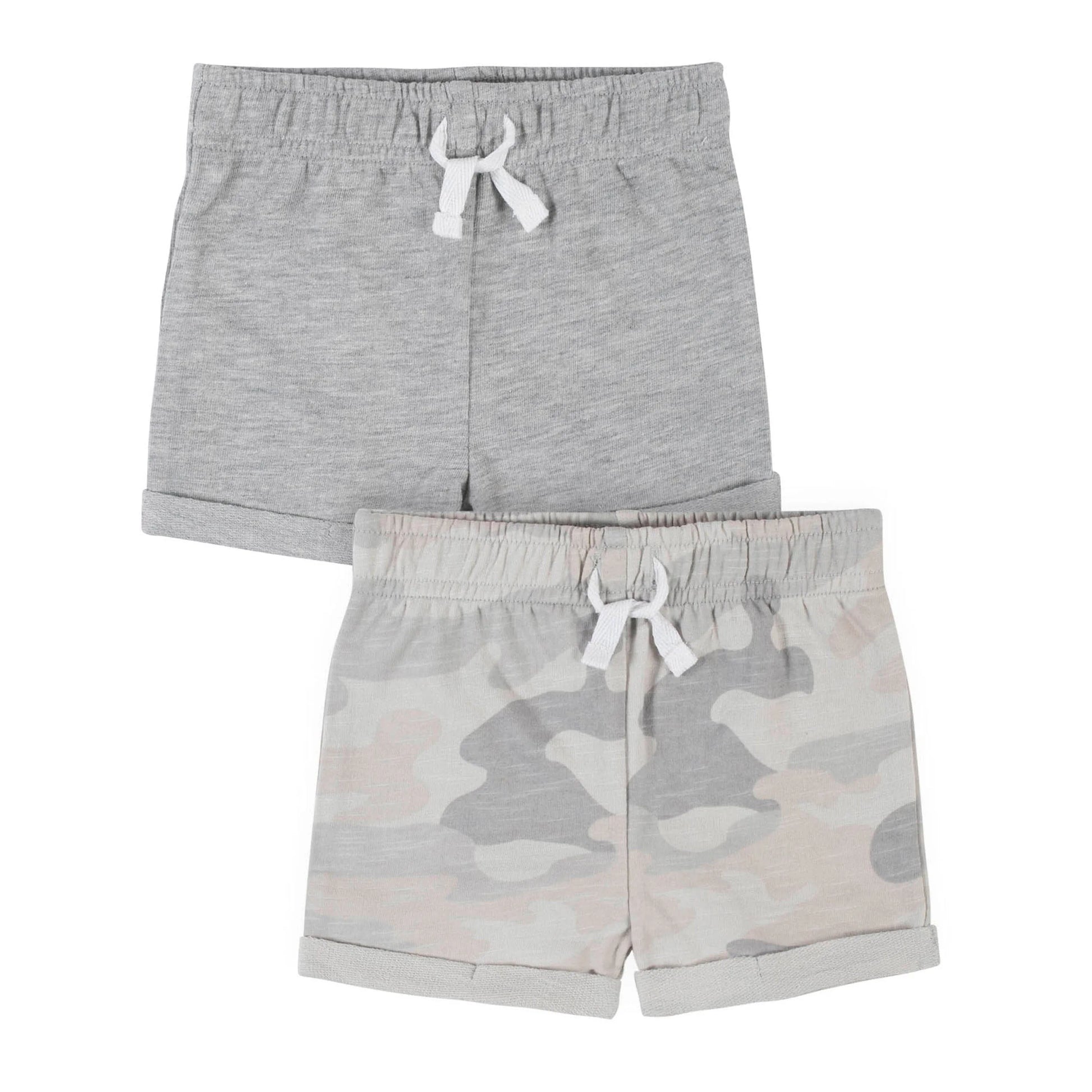 Modern Moments brings casual sophistication to your little one’s wardrobe. Each of our 2-pack shorts are designed for easier changes and is made with super soft fabric for all-day comfort and easy care. We had our essentials independently certified with STANDARD 100 by OEKO-TEX® so that you don’t have to worry about harmful substances in your baby’s clothing. This pack includes two pairs of baby boy shorts with a gray color scheme.