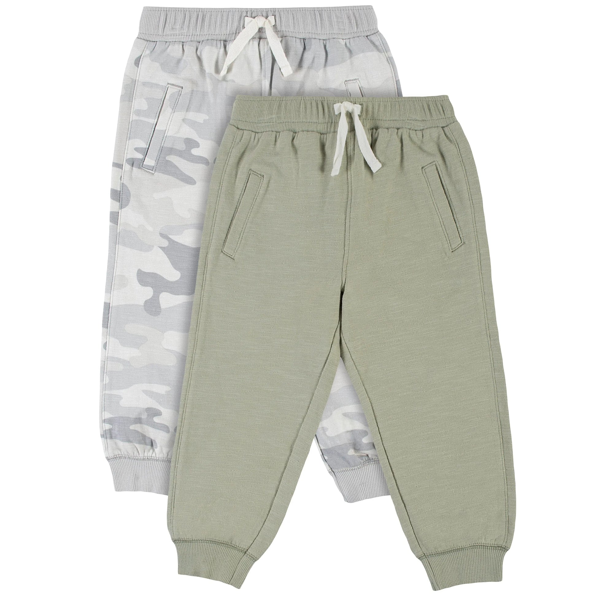 Modern Moments by Gerber® brings modern sophistication and casual comfort to your little boy’s wardrobe. Our mix & match toddler boy clothes and baby boy clothes are made with soft cotton and blended cotton fabrics to keep your little one comfortable all day long. We had our essentials independently certified with STANDARD 100 by OEKO-TEX® so that you don’t have to worry about harmful substances in your baby’s nursery. This pack includes two pairs of boys' pocketed joggers in camo and seagrass green color schemes.