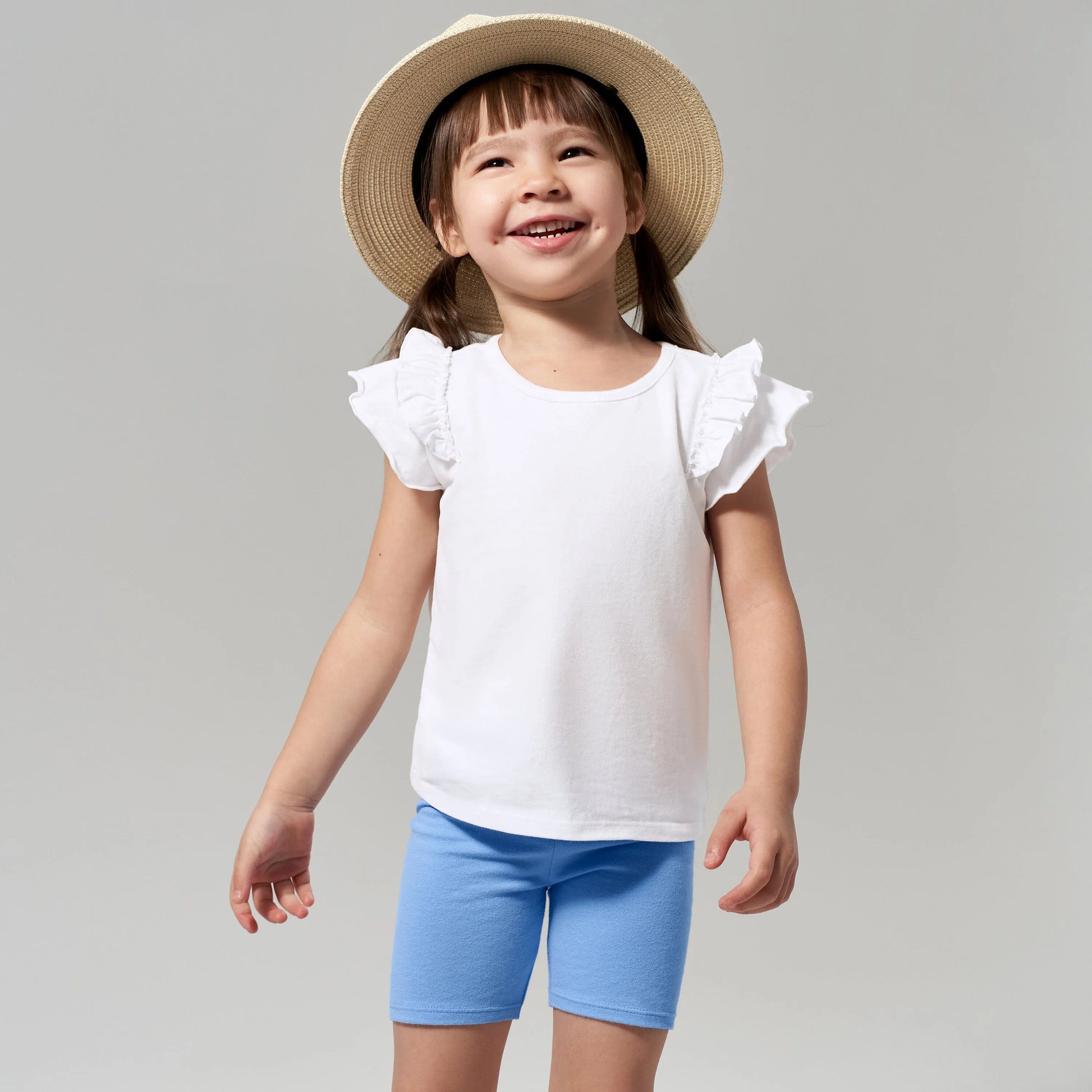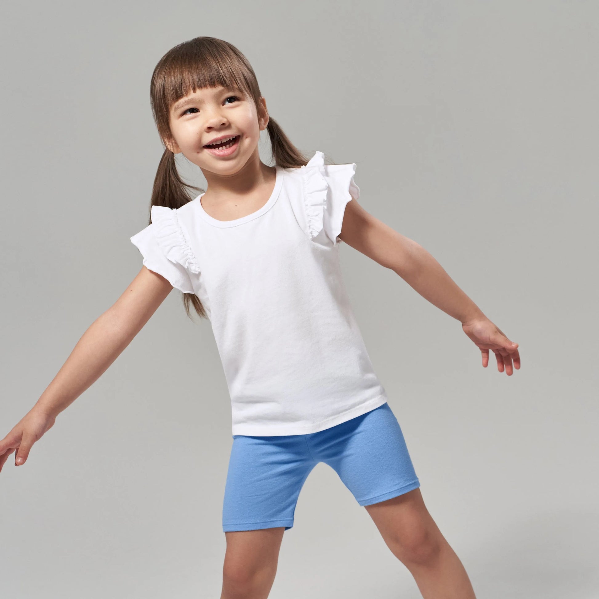 Get ready for spring and summer with our adorable shades of blue infant and toddler bike shorts! Each piece is made with soft cotton and just the right amount of spandex for breathability and to provide all-day comfort. We use STANDARD 100 by OEKO-TEX® certification on products tested in an independent laboratory against a list of more than 400 harmful substances, including PFAS. Complete the look with our mix and match separate short sleeve and sleeveless tops.