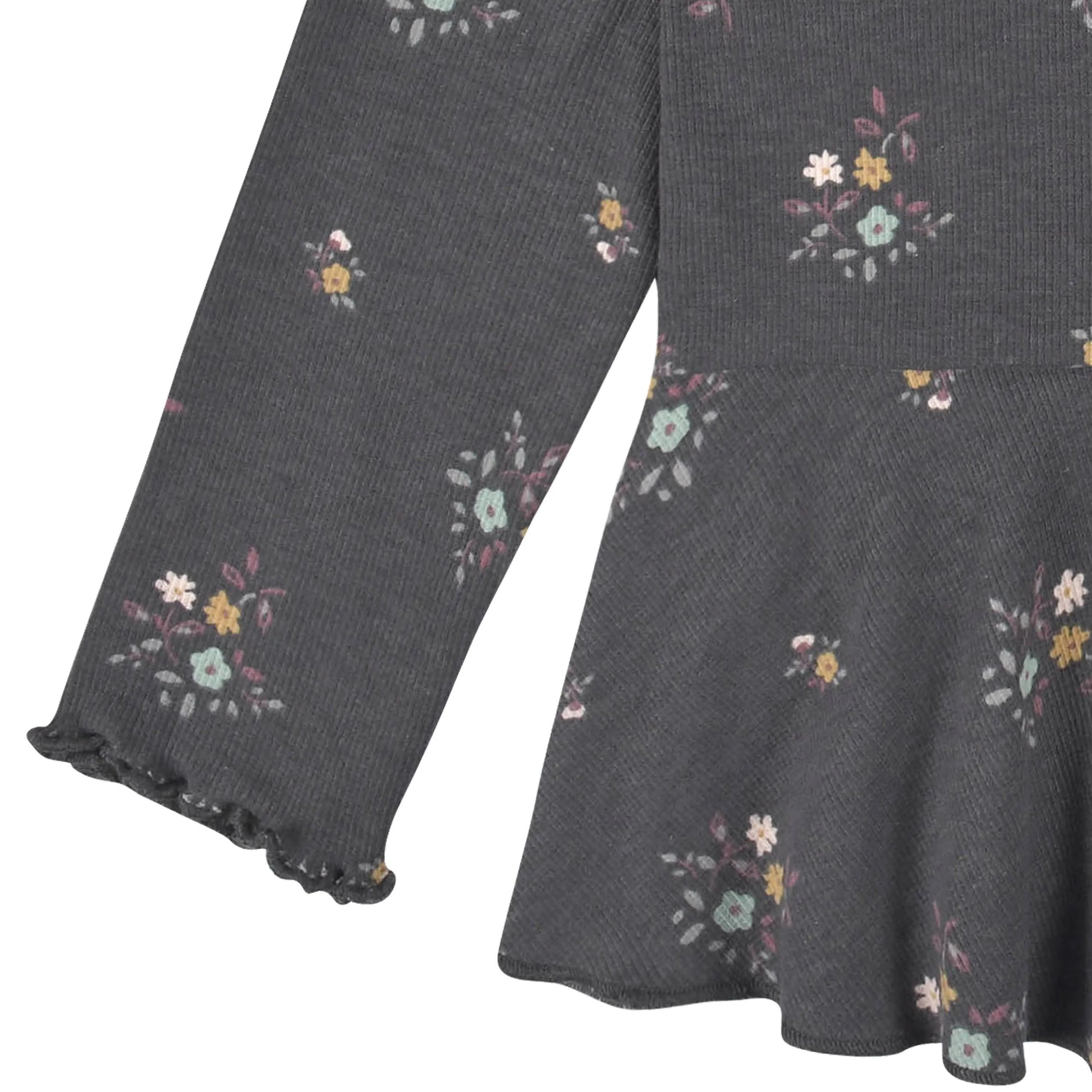 2-Pack Infant & Toddler Girls Mustard & Charcoal Floral Peplum Tops