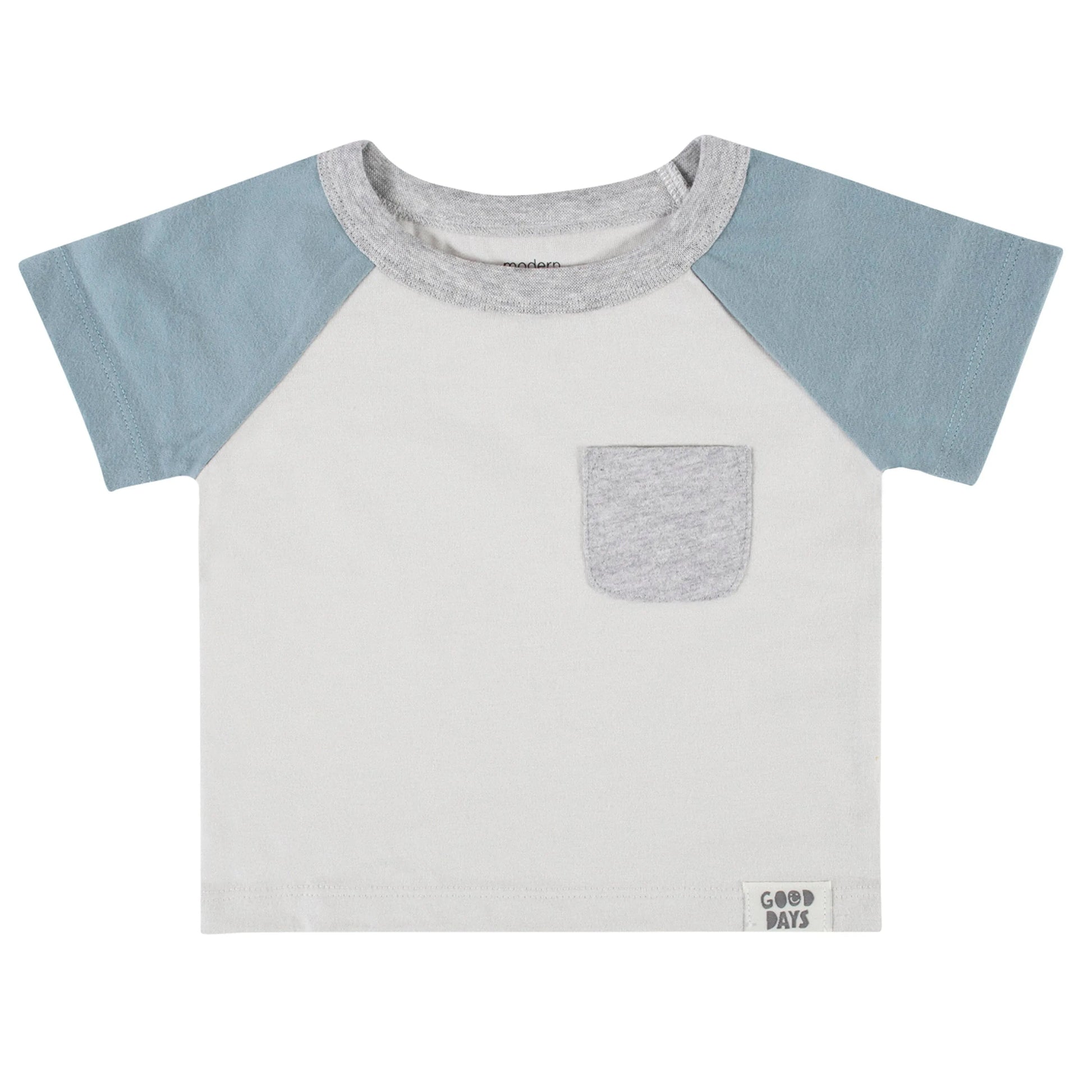 Modern Moments brings casual sophistication to your little one’s wardrobe. Each of our 2-piece top and shorts sets are designed for easier changes and is made with super soft fabric for all-day comfort and easy care. We had our essentials independently certified with STANDARD 100 by OEKO-TEX® so that you don’t have to worry about harmful substances in your baby’s clothing. This pack includes one baby boy tee and one pair of baby boy shorts with a blue and gray color scheme.