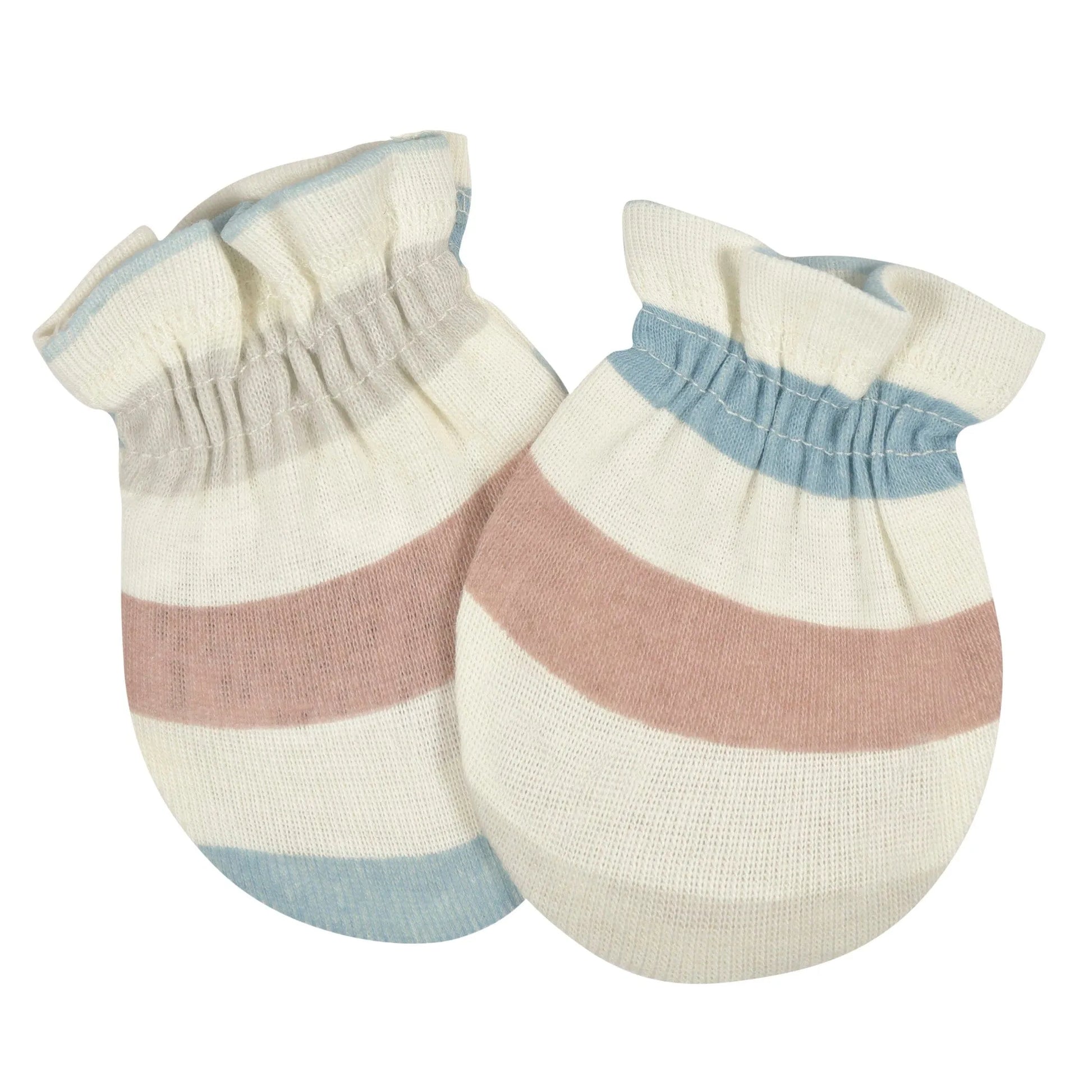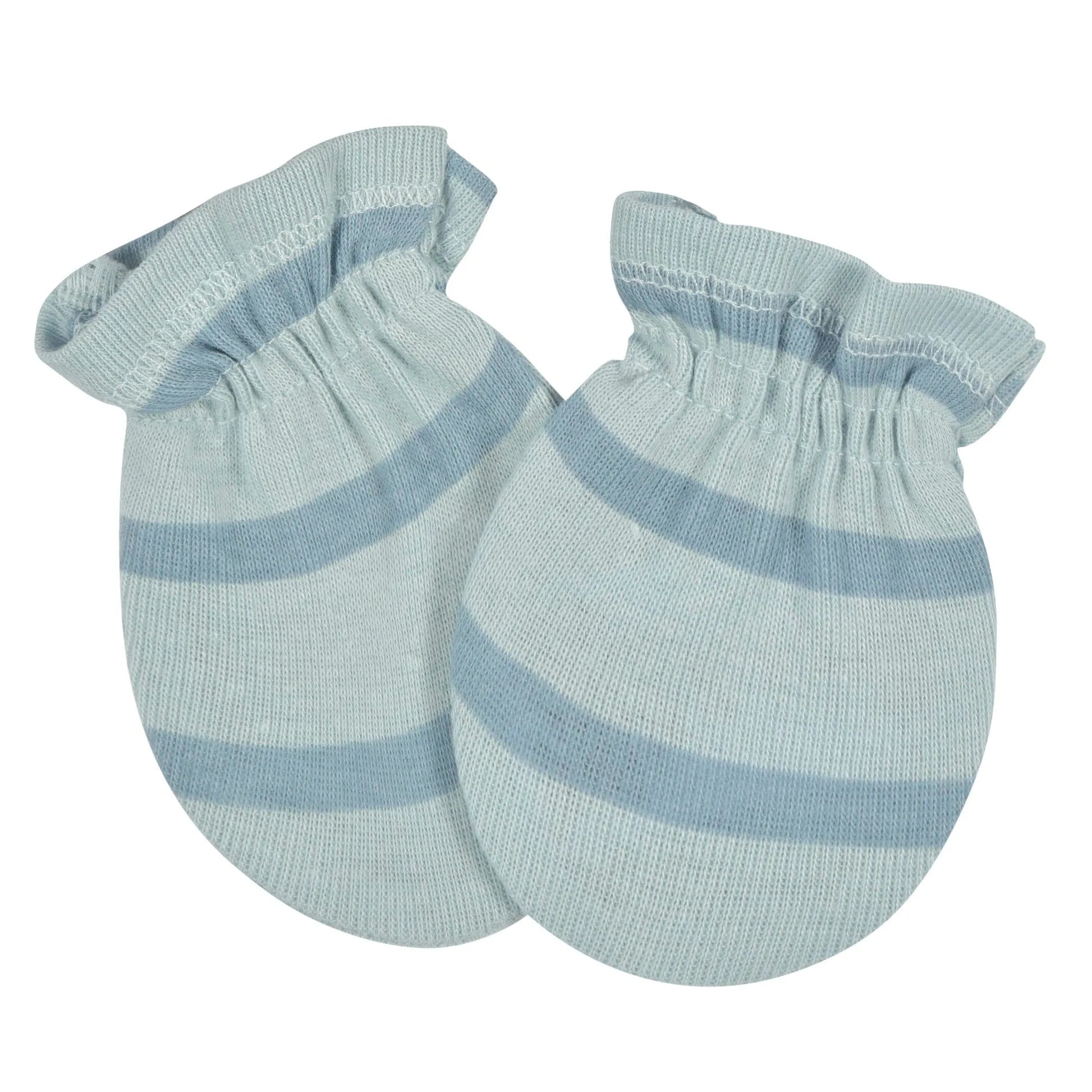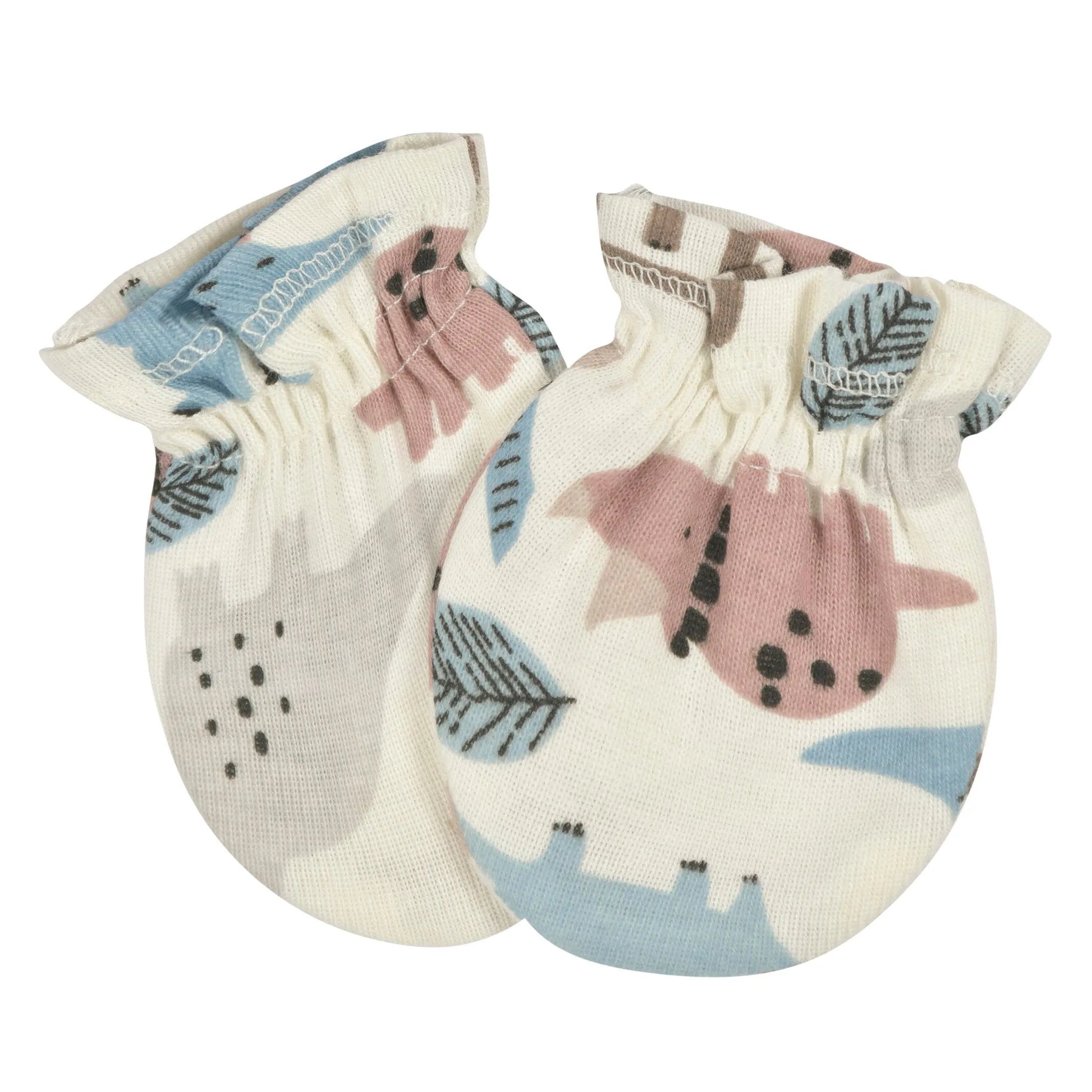 Keep your little one’s face free of accidental scratches with our adorable no scratch baby mittens. Each one is made with soft cotton, a gentle fabric that’s perfect for your baby’s sensitive skin. We use STANDARD 100 by OEKO-TEX® certification on products tested in an independent laboratory against a list of more than 400 harmful substances, including PFAS. Our mittens feature gentle elastic wristbands to keep the mittens held securely and comfortably in place. Each pair of baby boy mittens or baby girl mittens is machine washable and machine dryable for your convenience. This pack includes three pairs of dino themed no scratch mittens.