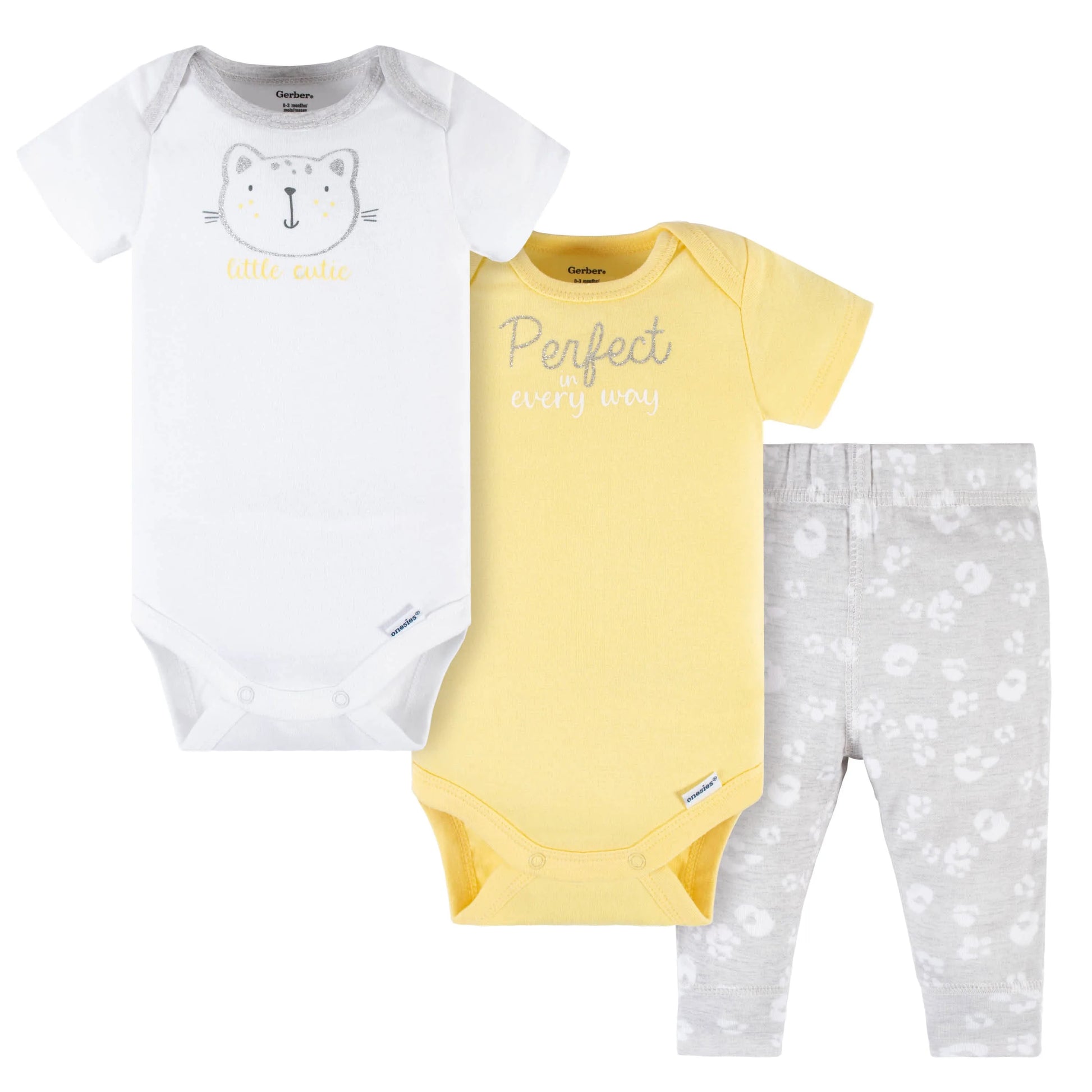 3-Piece Baby Girls Purrfectly Wild Short Sleeve Onesies Bodysuits & Pants Set