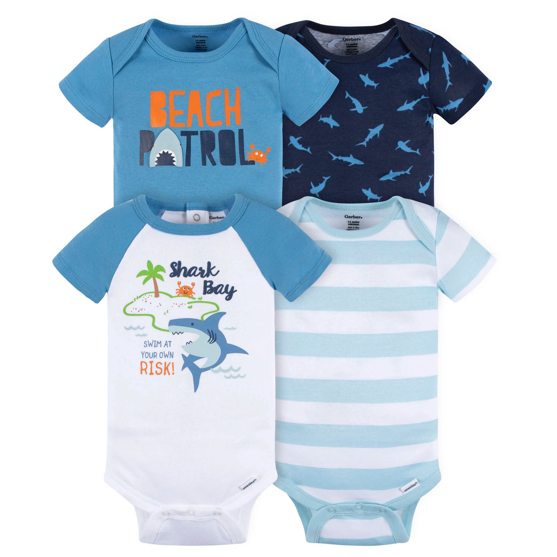 4-Pack Baby Boys Shark Bay Short Sleeve Onesies Bodysuits