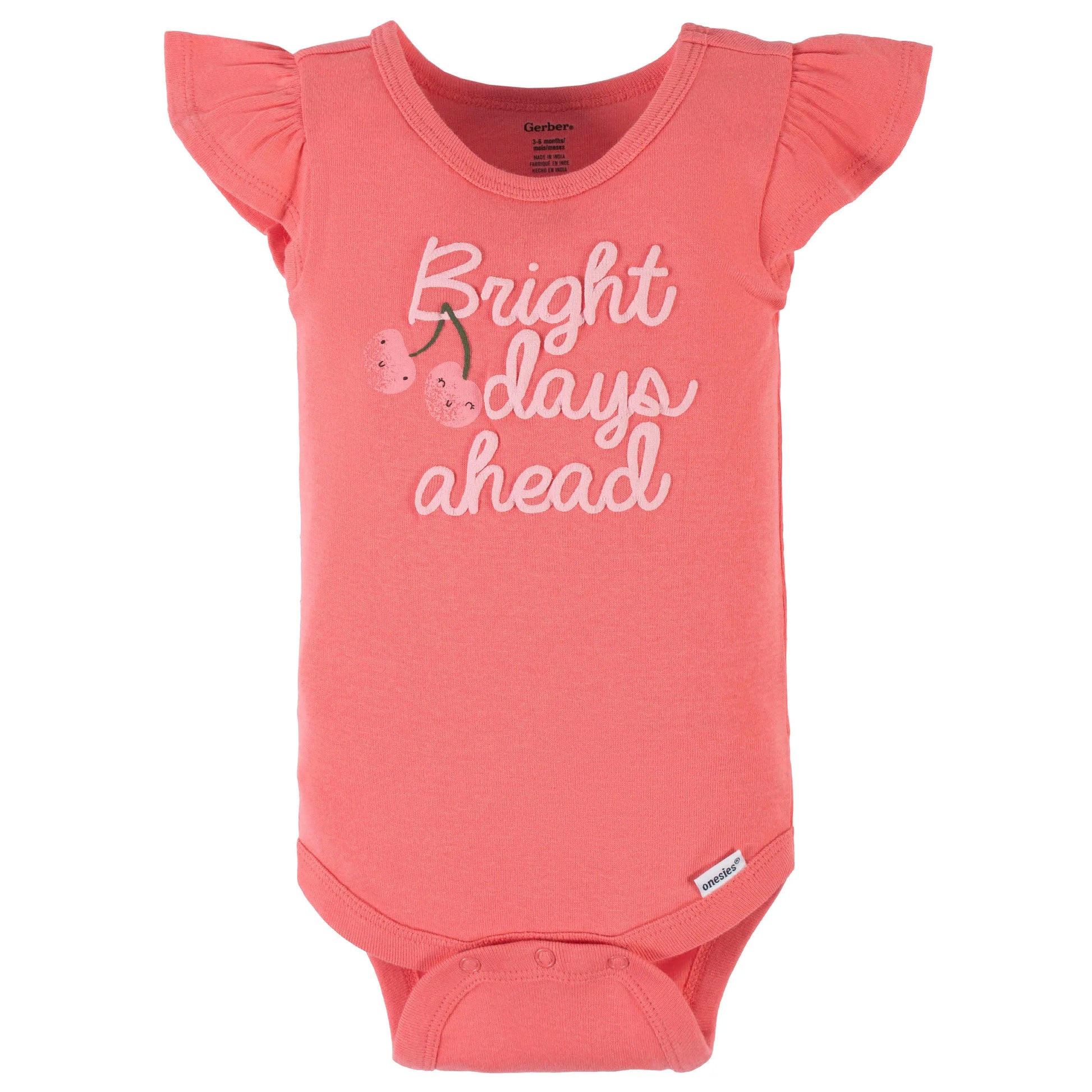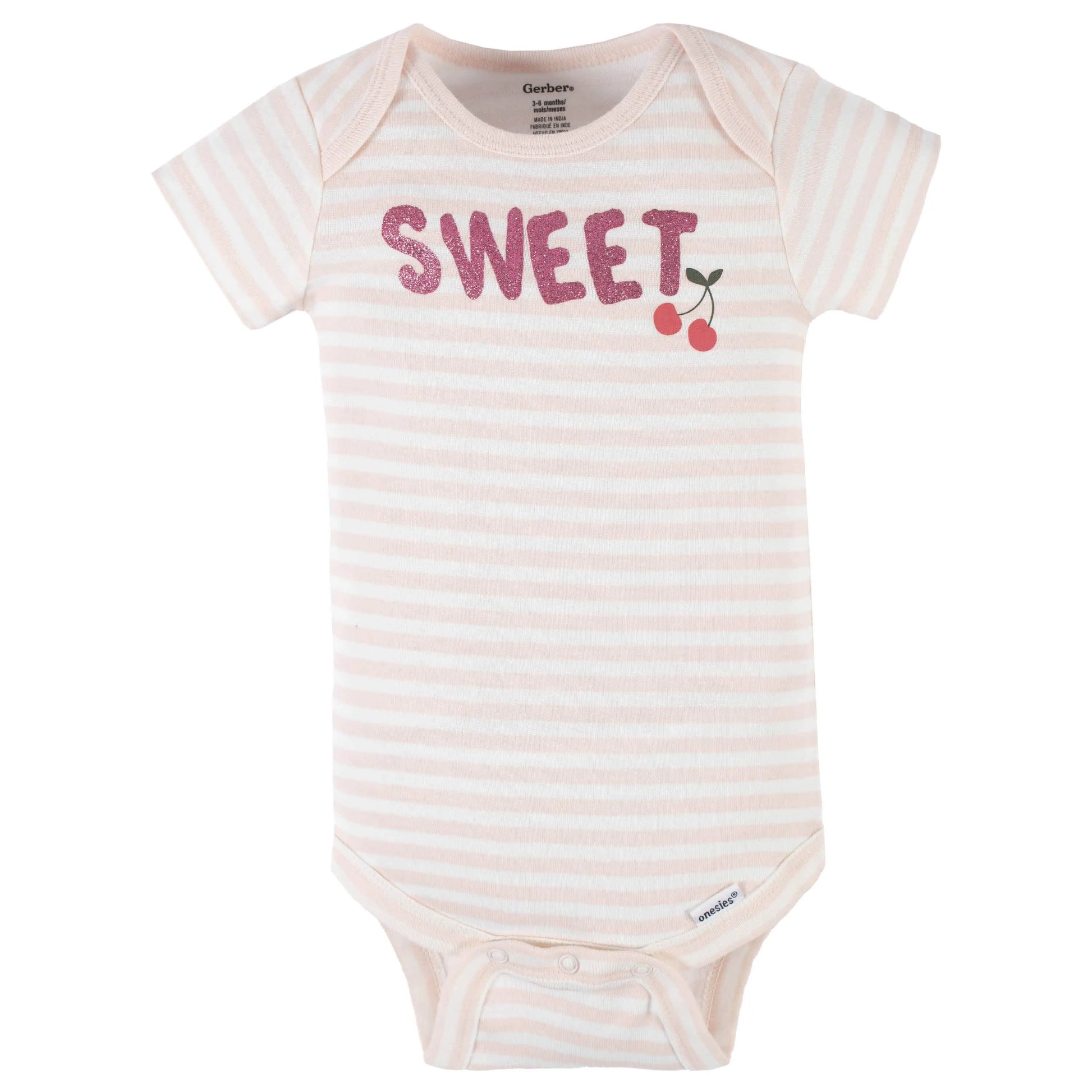 4-Pack Baby Girls Cherry Kisses Short Sleeve Onesies Bodysuits