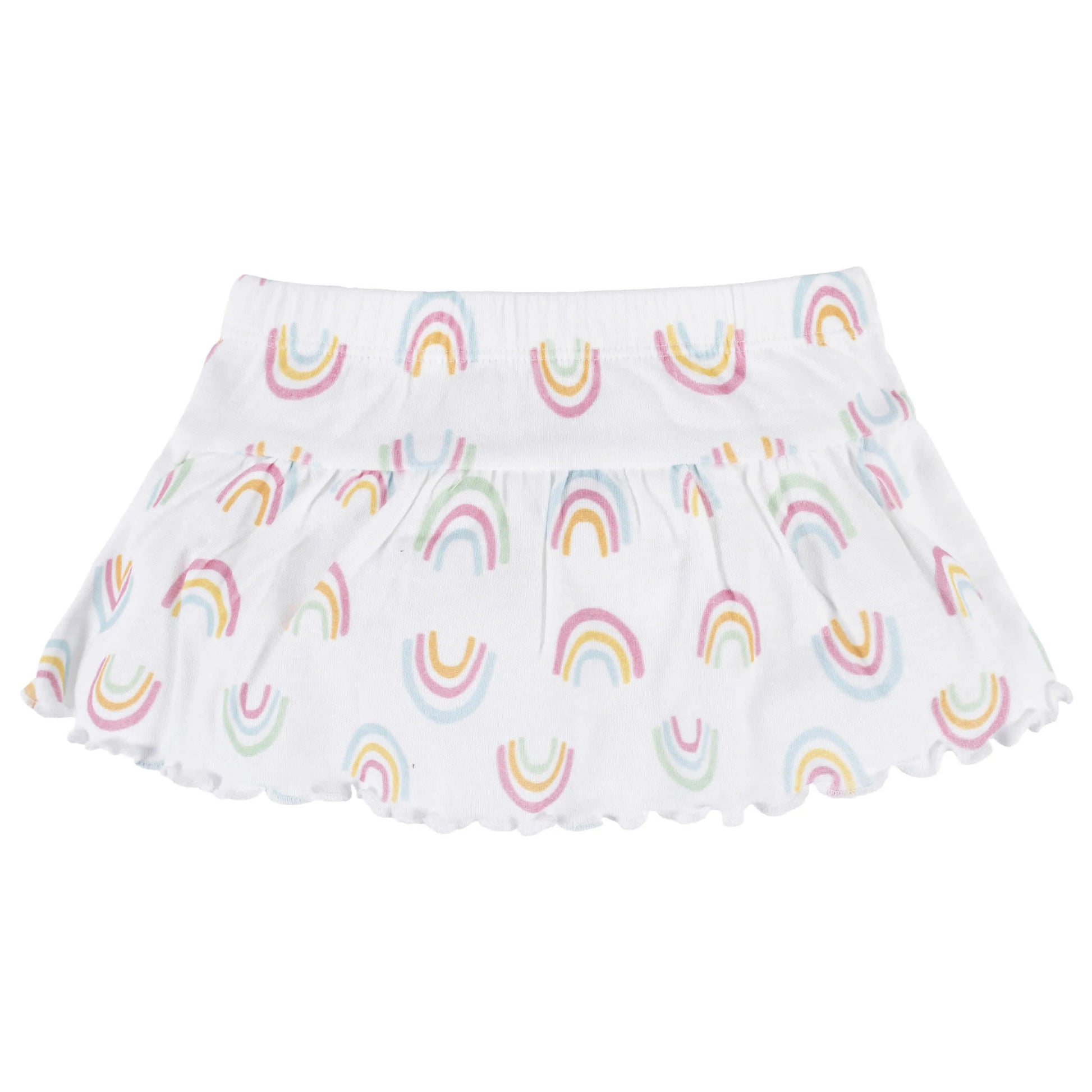 4-Piece Baby Girls Dots Of Rainbows Onesies Bodysuit, Tee, Skort & Pant Set
