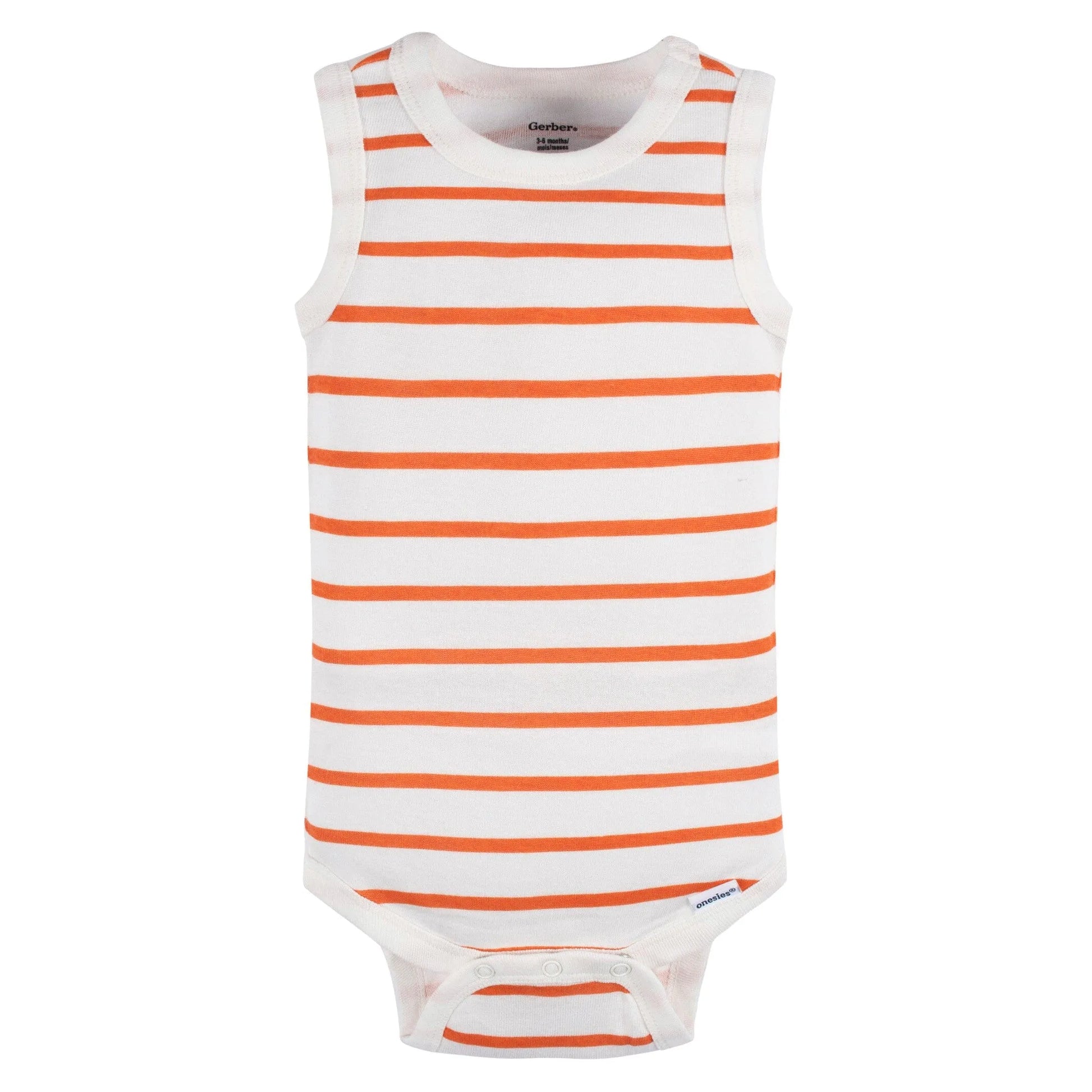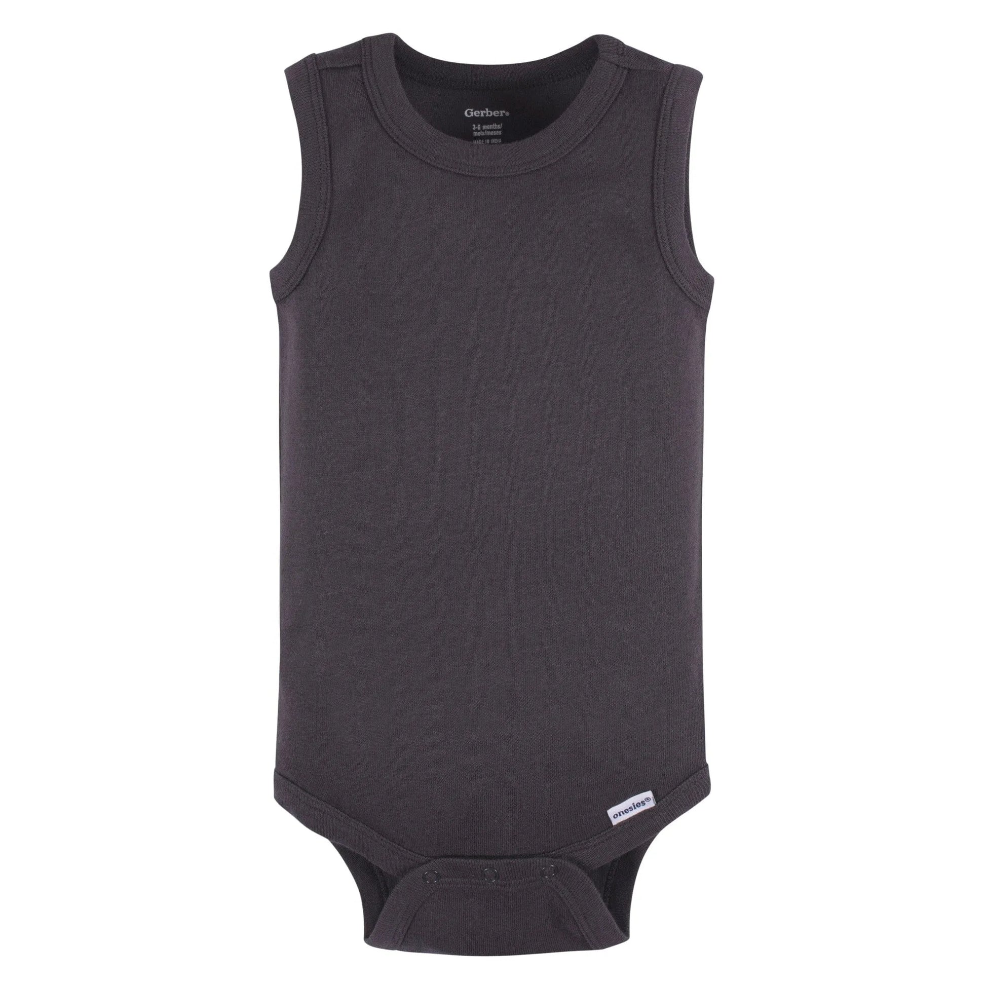 This set of Onesies® brand baby boy bodysuits features versatile colors of green, brown, black, and gray, making them a valuable addition to your baby's wardrobe. The bodysuits come in a mix of polka dots, stripes, and solid designs, which can be paired with other clothing items to create a complete outfit. Made from 100% cotton, each sleeveless bodysuit is gentle on sensitive skin, soft, and breathable. Additionally, snap closures make diaper changes effortless, and the bodysuits are simple to care for with machine washing and drying. Our essentials have been independently certified with STANDARD 100 by OEKO-TEX® so that you don’t have to worry about harmful substances in your baby’s wardrobe. This pack includes five bodysuits.