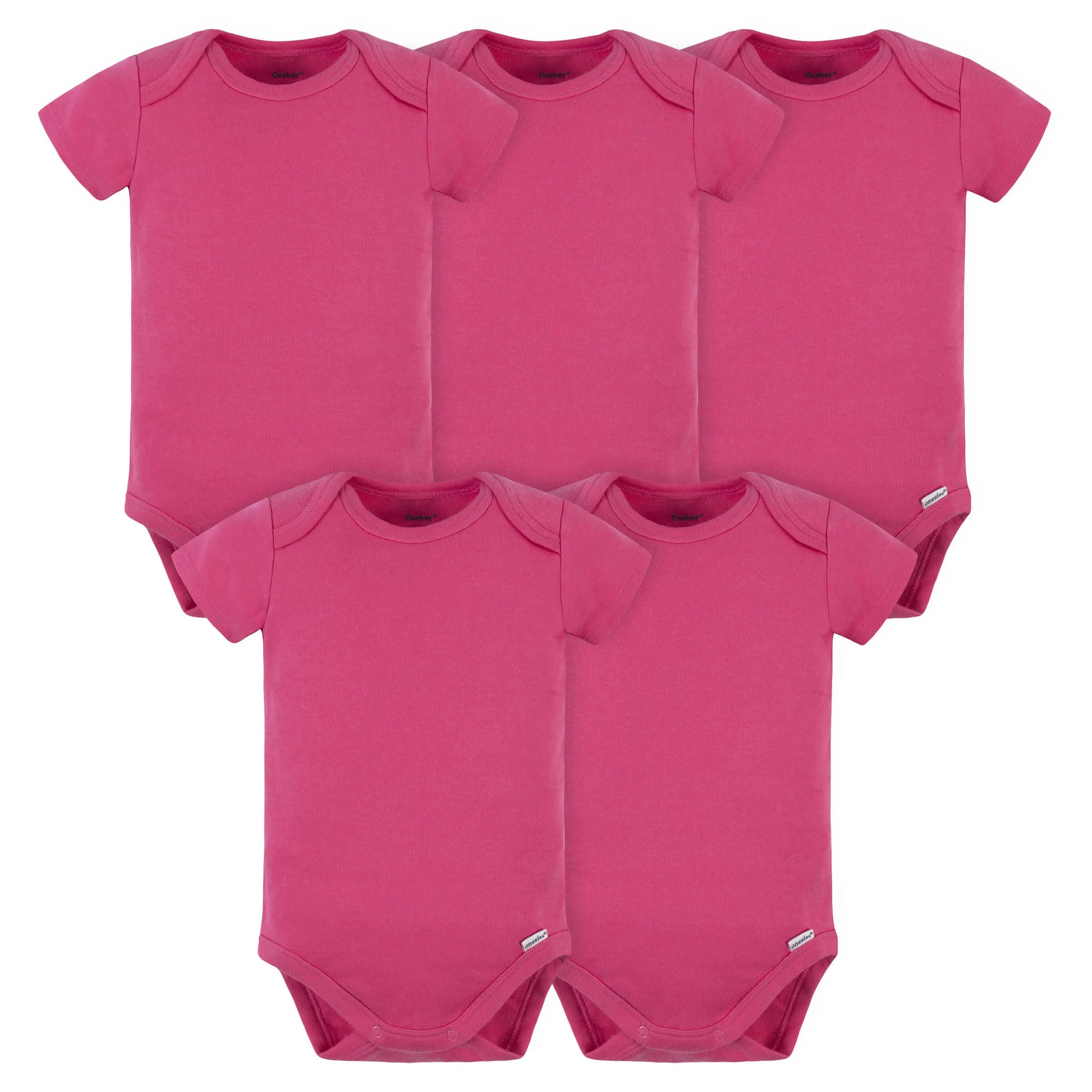 5-Pack Baby Hot Pink Premium Short Sleeve Onesies Bodysuits