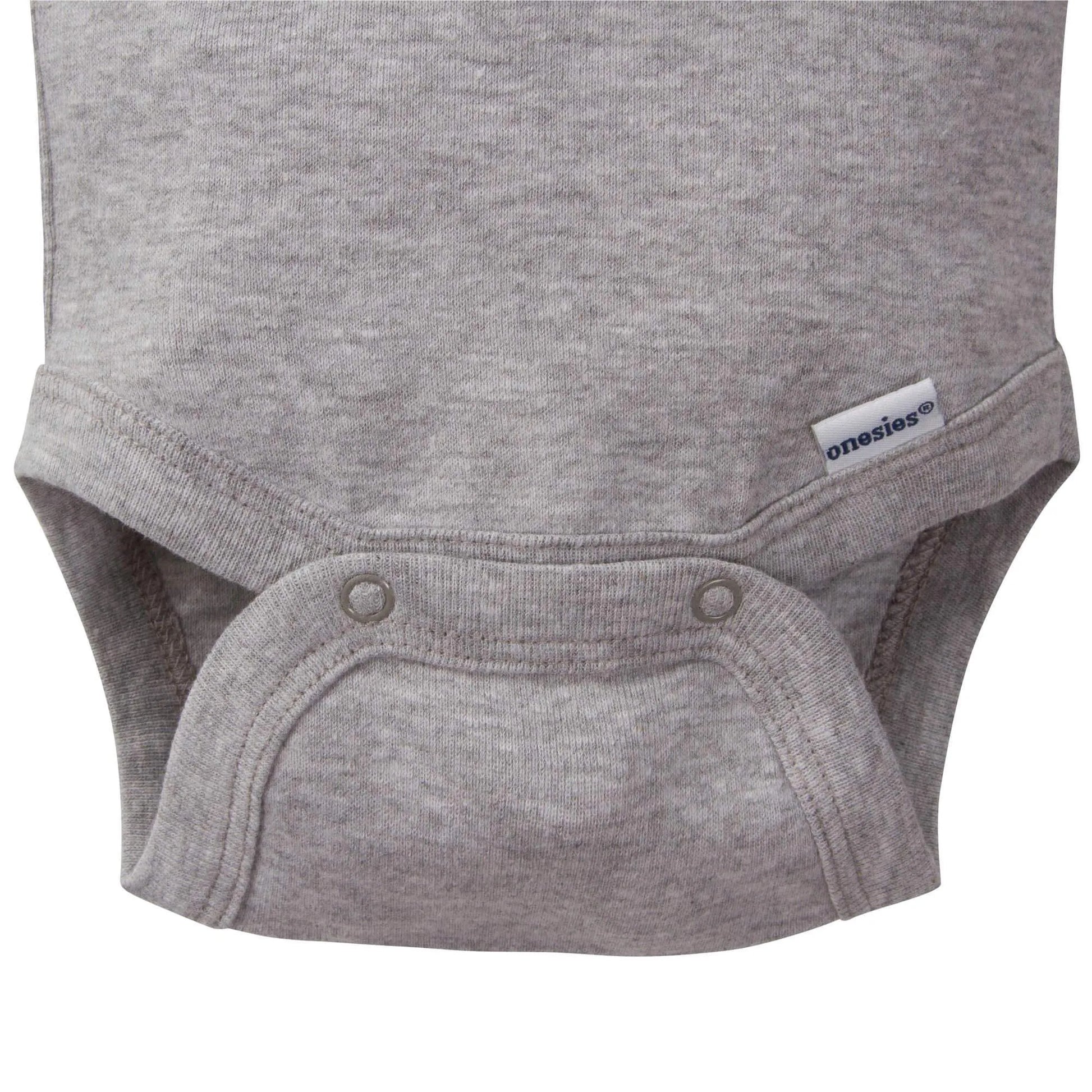 This 5-pack of short sleeve Onesies bodysuits is unbearably cute! Made with cotton rib, the bodysuits are soft, comfortable, and easy to clean. Mix and match them to create fun and stylish outfits. These Onesies are ideal for layering in cooler temperatures.