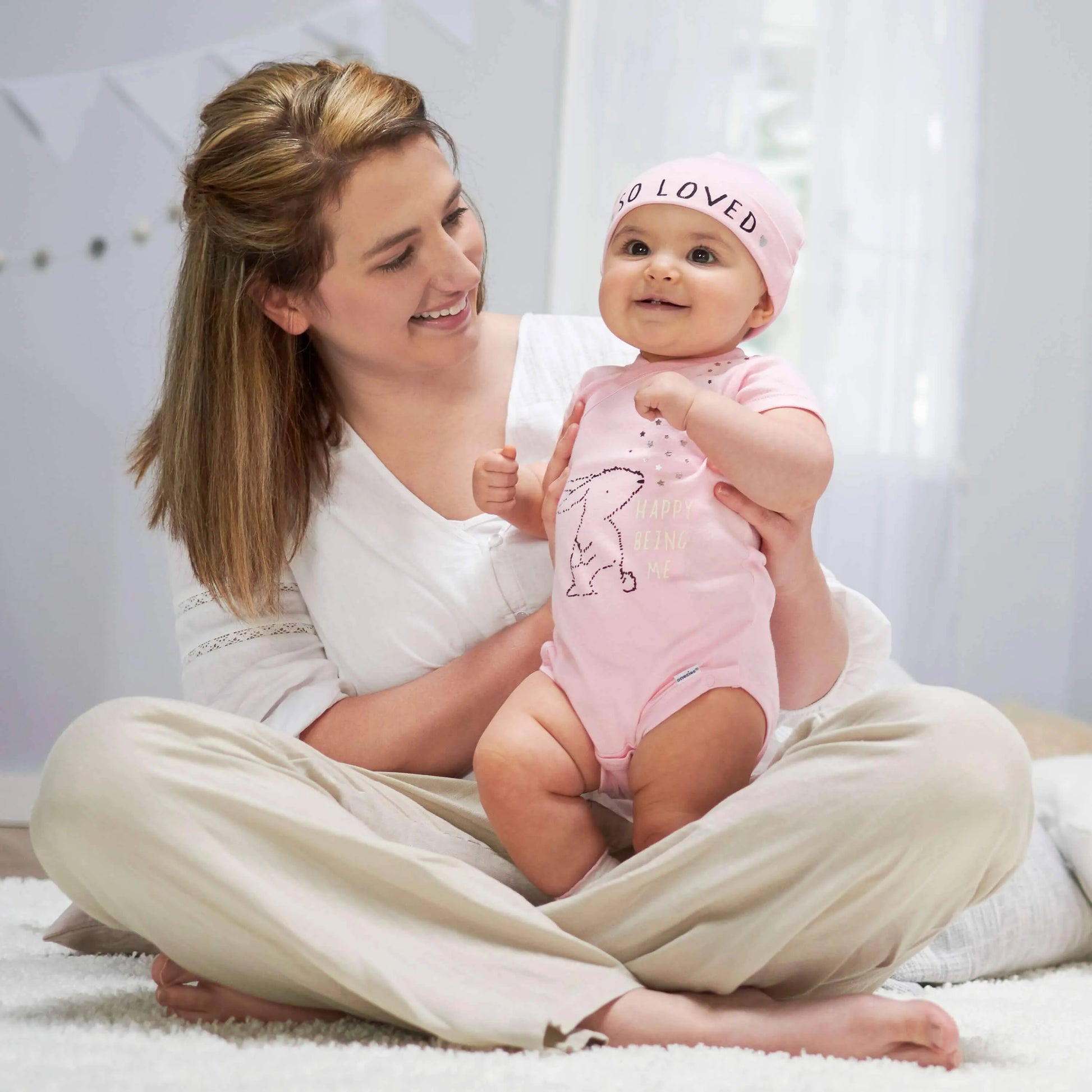 Somebunny special will love this 5-pack of short sleeve Onesies® bodysuits! Made with cotton rib, the bodysuits are soft, comfortable, and easy to clean. Mix and match them to create fun and stylish outfits. These Onesies® bodysuits are ideal for layering in cooler temperatures. Imported.