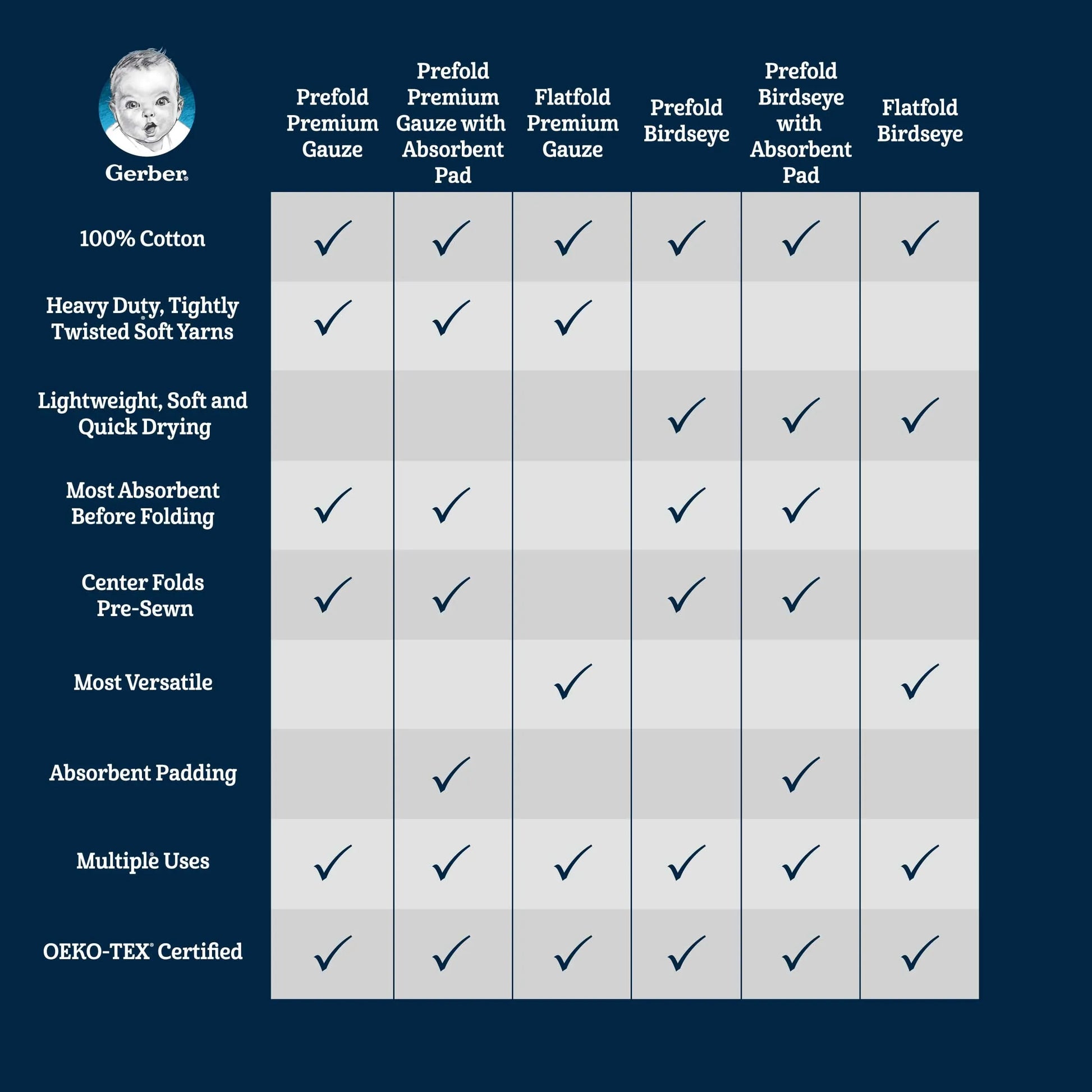 These premium prefold heavyweight gauze diapers are made from heavy, tightly twisted yarns, woven in a fashion that provides an exceptionally durable diaper. 100% cotton diaper. Can be used for many things, including as a cloth diaper, burp cloth, lap pad, cleaning cloth, changing pad. Comfortable, recyclable and reusable. 5 count, 6-ply white assortment. Great for giving as a gift.