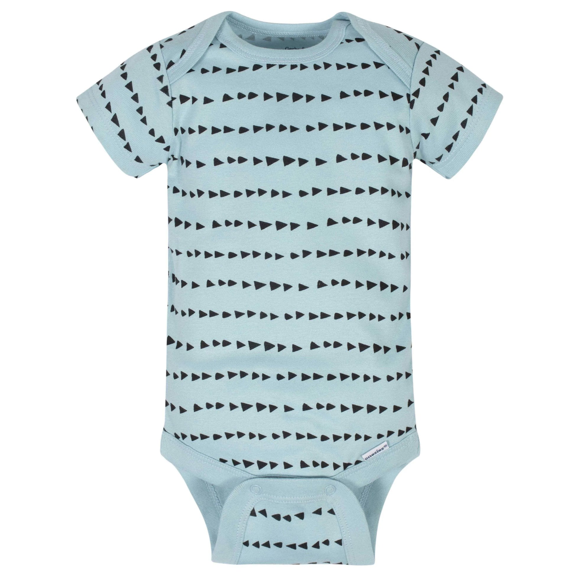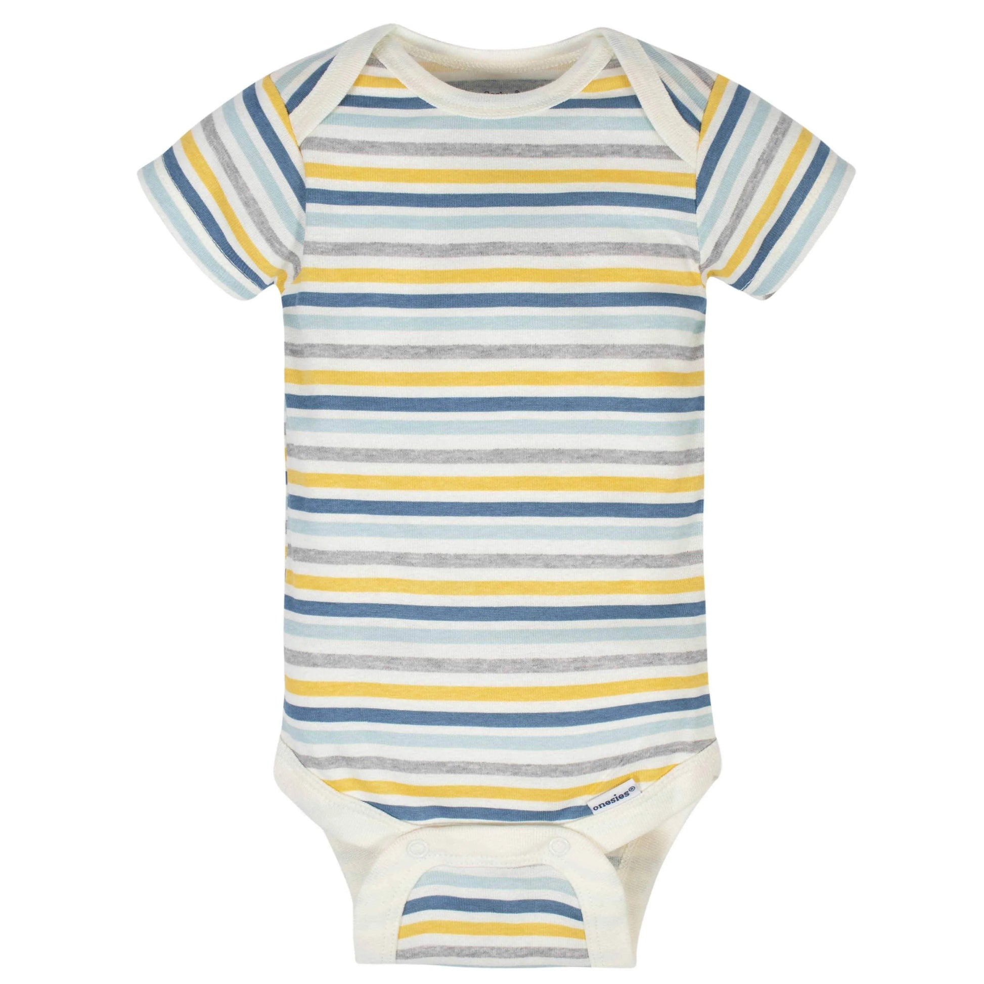 Baby Onesies® bodysuits are essential for baby! These adorable, assorted Onesies® bodysuits are made with a soft cotton fabric that’s perfectly comfortable against baby’s delicate skin. Baby will love how breathable this material is! We had this product independently certified with STANDARD 100 by OEKO-TEX® so that you don’t have to worry about harmful substances in your baby’s clothing. This pack includes four bodysuits. These classic baby clothes feature lap shoulder necklines that make wardrobe changes easier than ever. The necklines allow the garment to slip over baby’s head in total comfort. They also feature bottom snap enclosures that are conveniently positioned higher in front to quicken diaper changes. Gerber® Onesies® bodysuits are machine washable and machine dryable. Gerber® offers quality products that parents trust to bring their babies style and comfort.