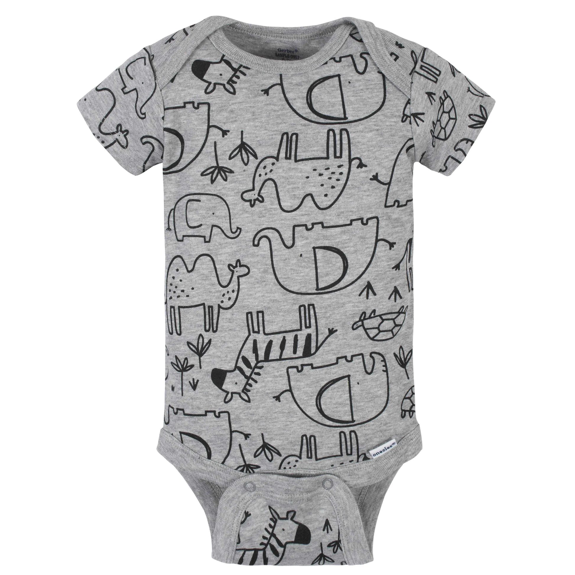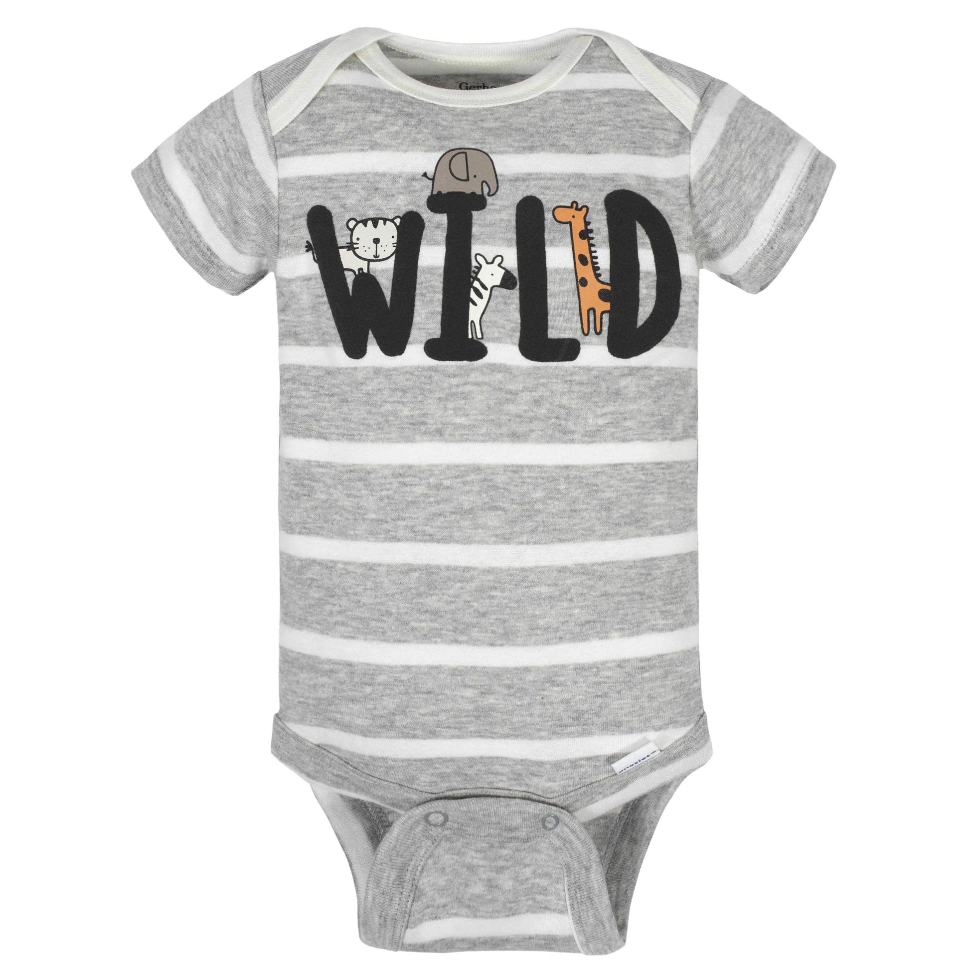 Baby Onesies® bodysuits are essential for baby! These adorable, assorted Onesies® bodysuits are made with a soft cotton fabric that’s perfectly comfortable against baby’s delicate skin. Baby will love how breathable this material is! We had this product independently certified with STANDARD 100 by OEKO-TEX® so that you don’t have to worry about harmful substances in your baby’s clothing. This pack includes four bodysuits. These classic baby clothes feature lap shoulder necklines that make wardrobe changes easier than ever. The necklines allow the garment to slip over baby’s head in total comfort. They also feature bottom snap enclosures that are conveniently positioned higher in front to quicken diaper changes. Gerber® Onesies® bodysuits are machine washable and machine dryable. Gerber® offers quality products that parents trust to bring their babies style and comfort.