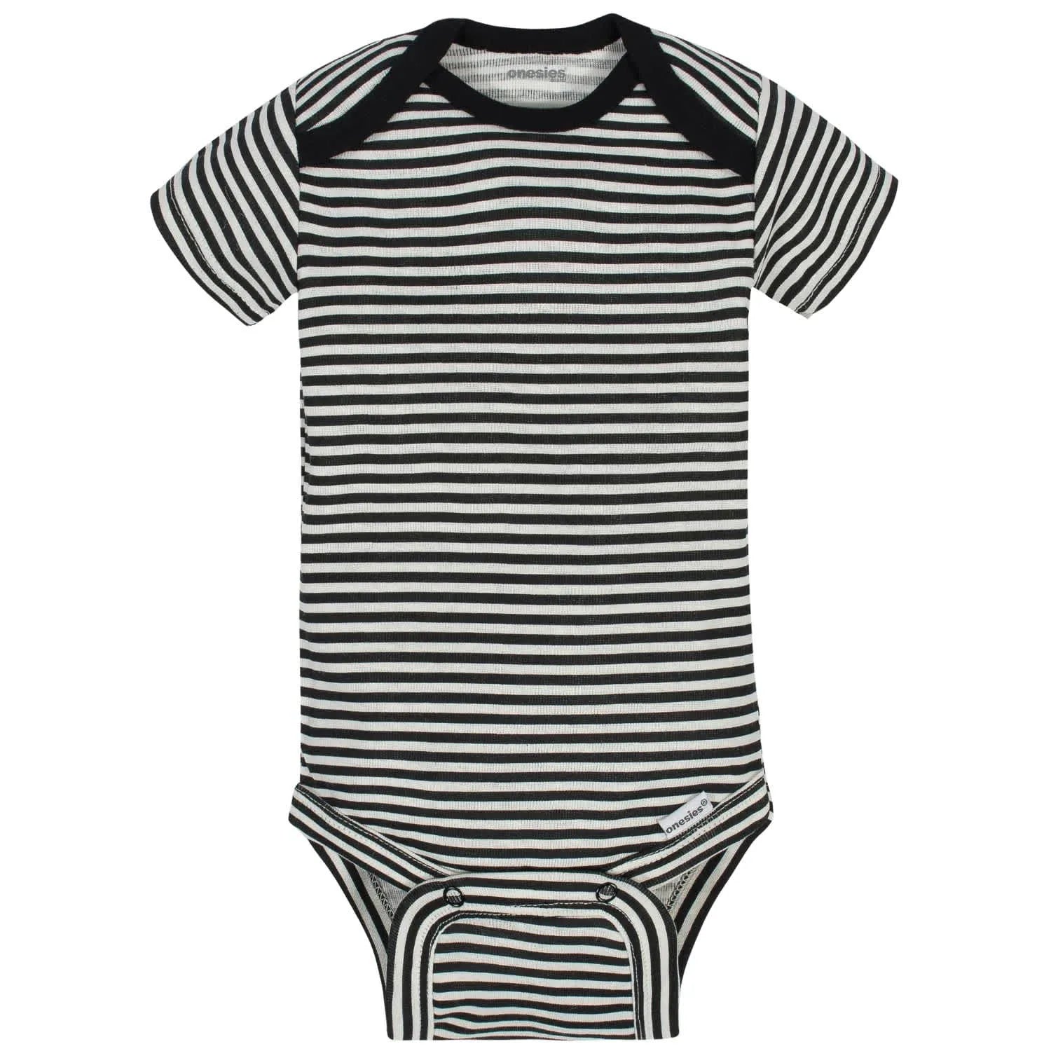 Baby Onesies® Bodysuits are stylish and comfortable! These adorable, assorted Onesies® Bodysuits are made with a soft cotton fabric thats perfectly comfortable against babys delicate skin. Baby will love how breathable this material is! This pack includes eight bodysuits. Pair them with baby pants, baby shorts, or cute baby socks to create fun and comfortable outfits your baby boy is sure to love! These classic baby clothes feature lap shoulder necklines that make wardrobe changes easier than ever. The necklines allow the garment to slip over babys head in total comfort. They also feature bottom snap enclosures that are conveniently positioned higher in front to quicken diaper changes. Adorable and affordable, these bodysuits truly are high-quality. Onesies® Bodysuits are perfect for any little one with style.