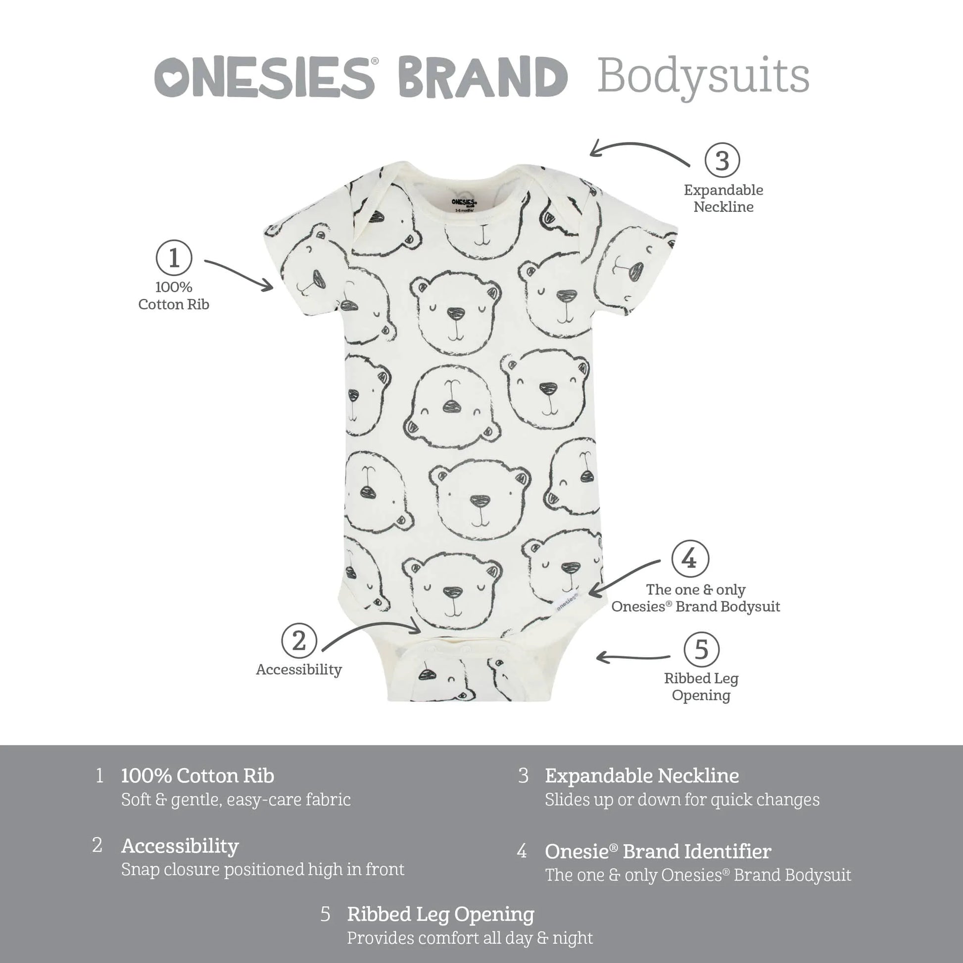 Our Onesies® bodysuits are designed for versatility, easy on and off, and of course, comfort! We use STANDARD 100 by OEKO-TEX® certification on products tested in an independent laboratory against a list of more than 400 harmful substances, including PFAS. This pack includes eight bear themed Onesies® bodysuits.