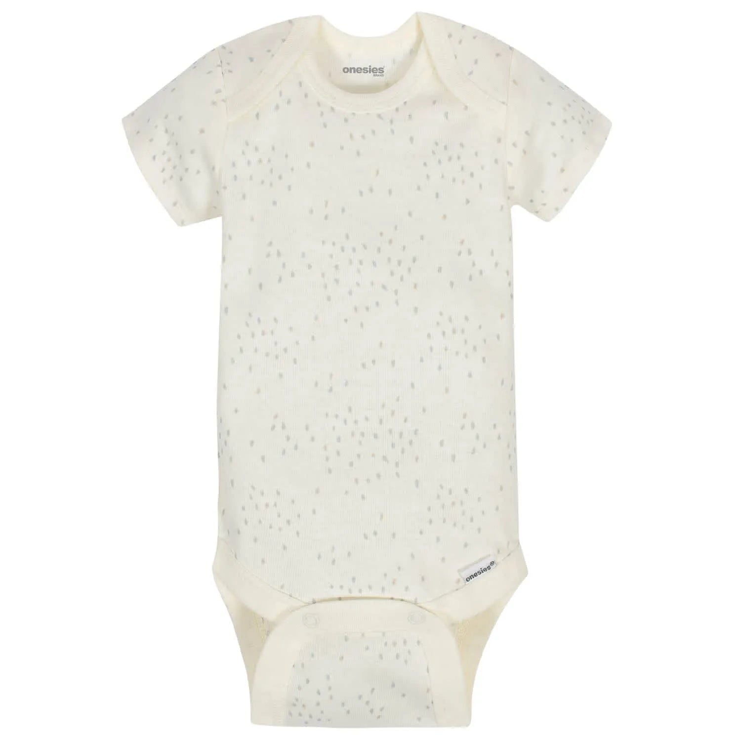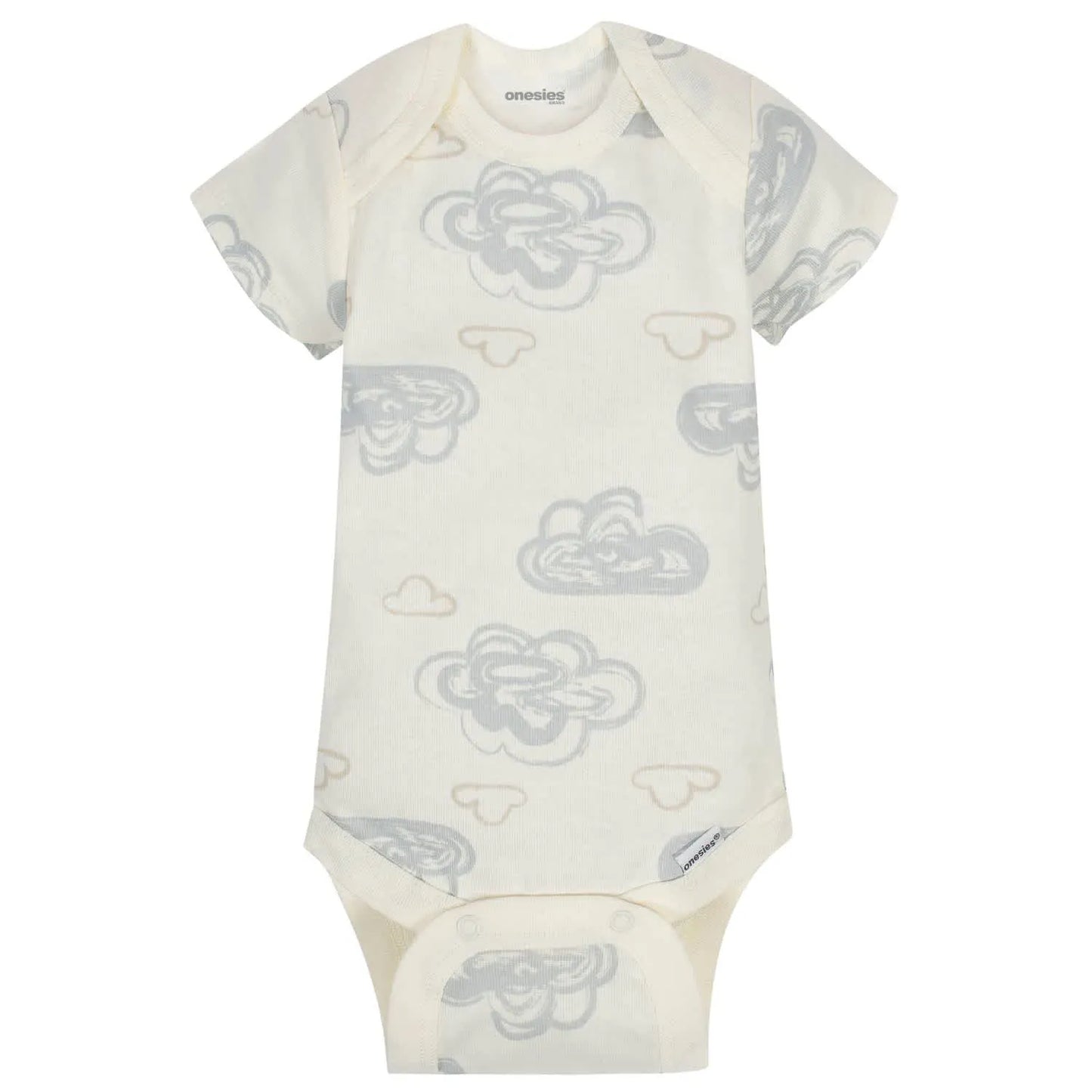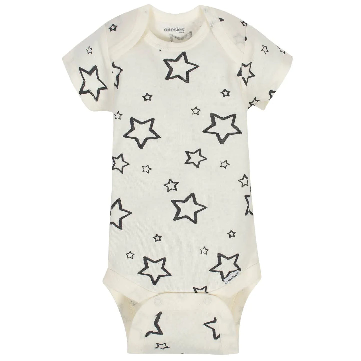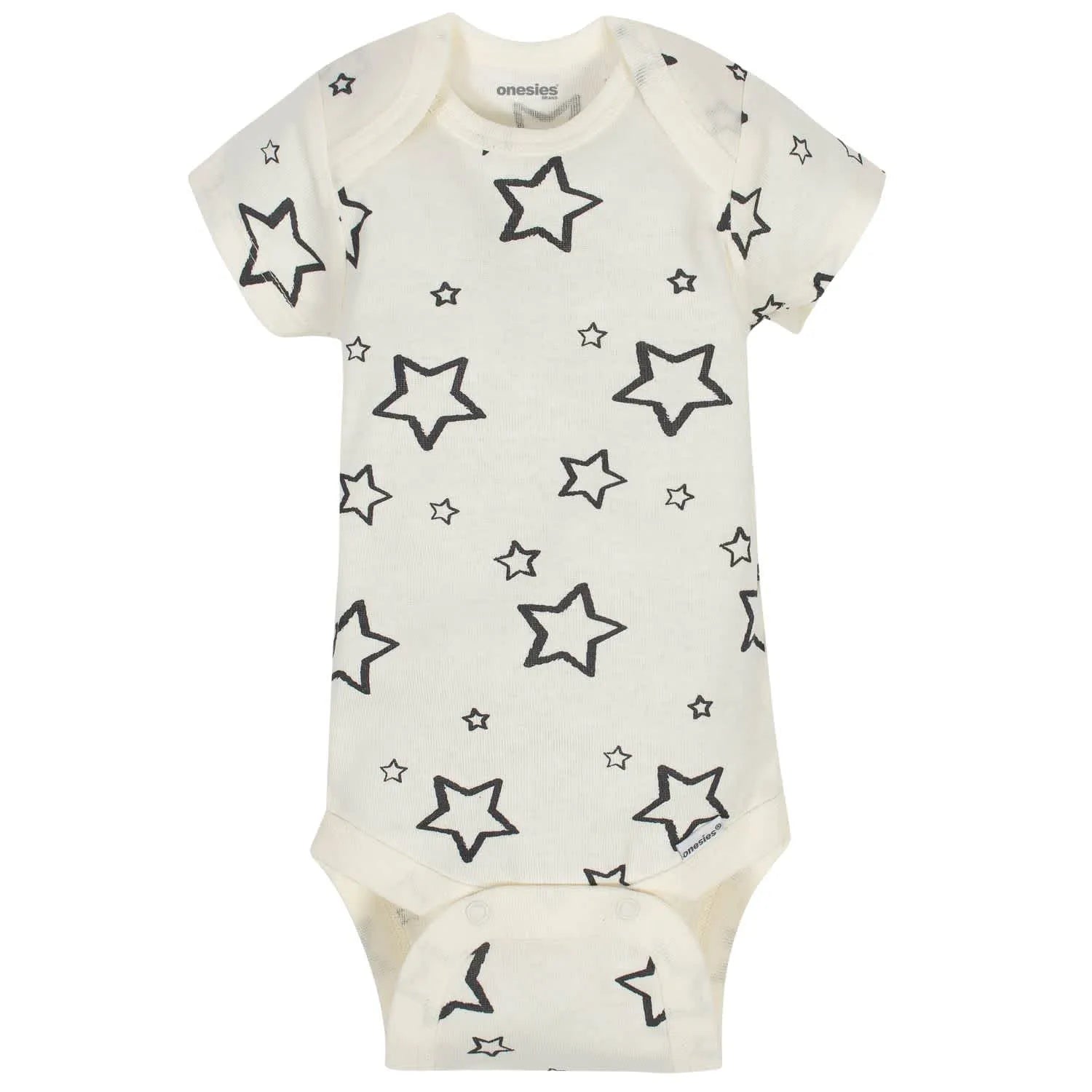 Baby Onesies bodysuits are stylish and comfortable! These adorable, asorted Onesies bodysuits are made with a soft cotton fabric thats perfectly comfortable against babys delicate skin. Baby will love how breathable this material is! This pack includes eight bodysuits. Pair them with baby pants, baby shorts, or cute baby socks to create fun and comfortable outfits your baby boy is sure to love! These classic baby clothes feature lap shoulder necklines that make wardrobe changes easier than ever. The necklines allow the garment to slip over babys head in total comfort. They also feature bottom snap enclosures that are conveniently positioned higher in front to quicken diaper changes. Adorable and affordable, these bodysuits truly are high-quality. Onesies bodysuits are perfect for any little one with style.