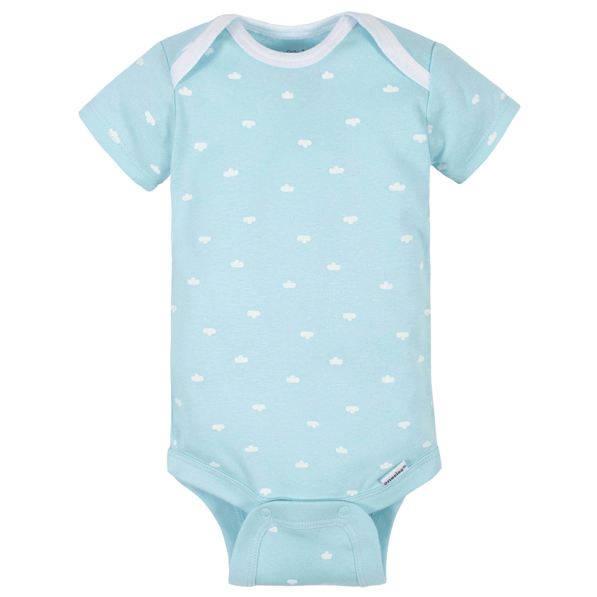 Onesies® bodysuits are essential for baby! These adorable, assorted Onesies® bodysuits are made with a soft cotton fabric that’s perfectly comfortable against baby’s delicate skin. Baby will love how breathable this material is! We had this product independently certified with STANDARD 100 by OEKO-TEX® so that you don’t have to worry about harmful substances in your baby’s clothing. This pack includes four bodysuits. These classic baby clothes feature lap shoulder necklines that make wardrobe changes easier than ever. The necklines allow the garment to slip over baby’s head in total comfort. They also feature bottom snap enclosures that are conveniently positioned higher in front to quicken diaper changes. Gerber® Onesies® bodysuits are machine washable and machine dryable. Gerber® offers quality products that parents trust to bring their babies style and comfort.