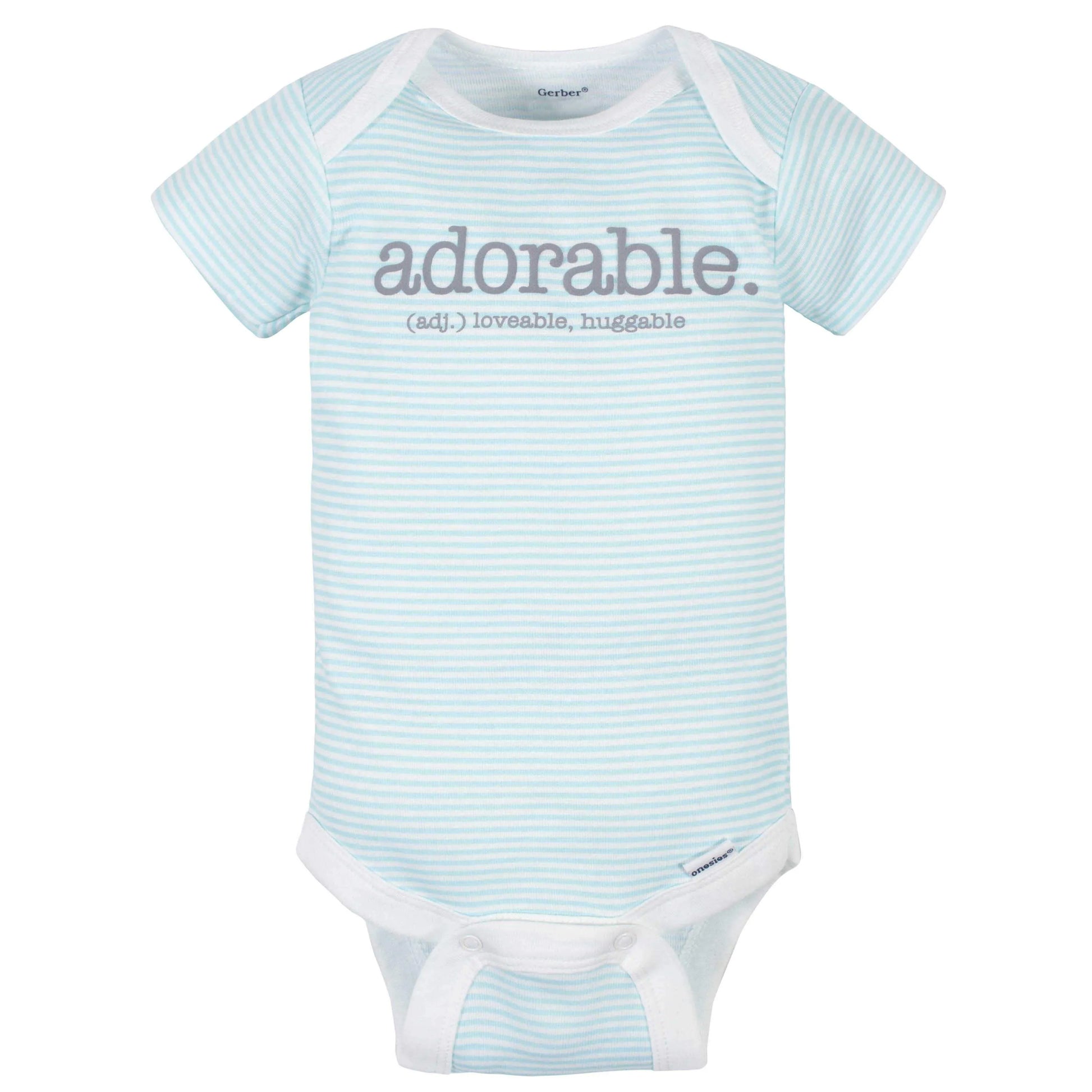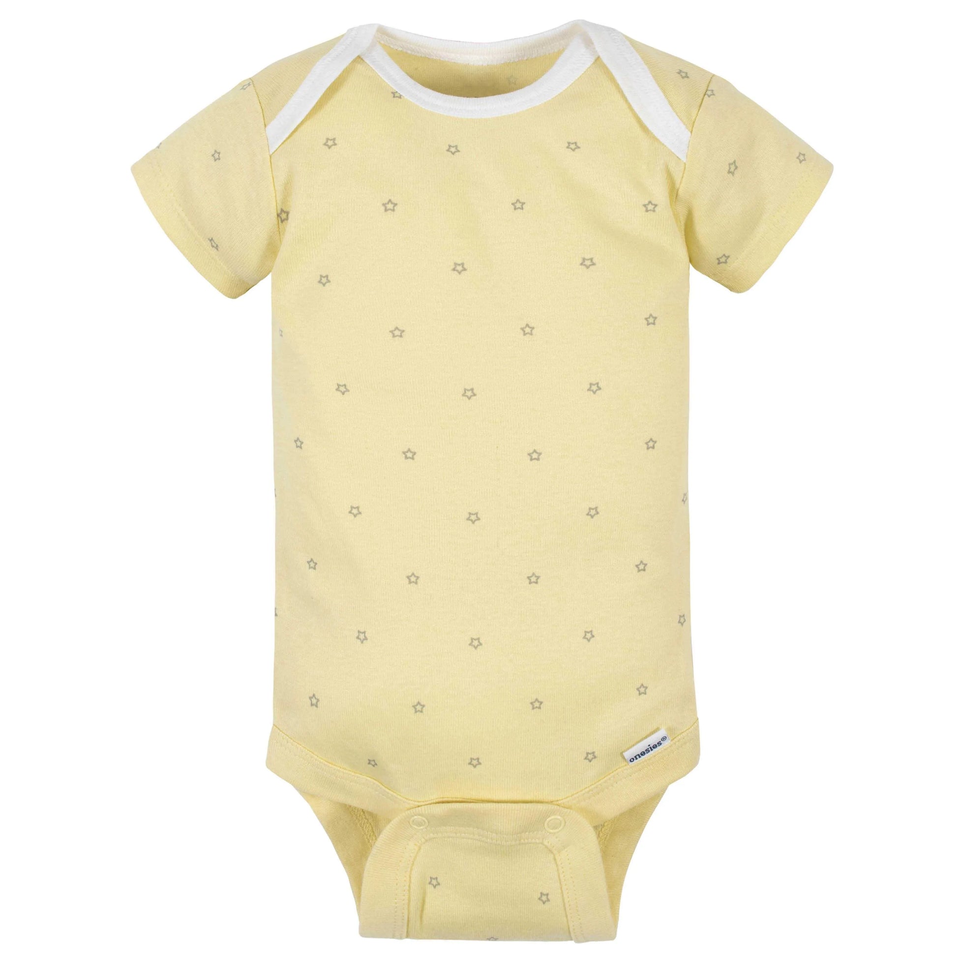 Onesies® bodysuits are essential for baby! These adorable, assorted Onesies® bodysuits are made with a soft cotton fabric that’s perfectly comfortable against baby’s delicate skin. Baby will love how breathable this material is! We had this product independently certified with STANDARD 100 by OEKO-TEX® so that you don’t have to worry about harmful substances in your baby’s clothing. This pack includes four bodysuits. These classic baby clothes feature lap shoulder necklines that make wardrobe changes easier than ever. The necklines allow the garment to slip over baby’s head in total comfort. They also feature bottom snap enclosures that are conveniently positioned higher in front to quicken diaper changes. Gerber® Onesies® bodysuits are machine washable and machine dryable. Gerber® offers quality products that parents trust to bring their babies style and comfort.