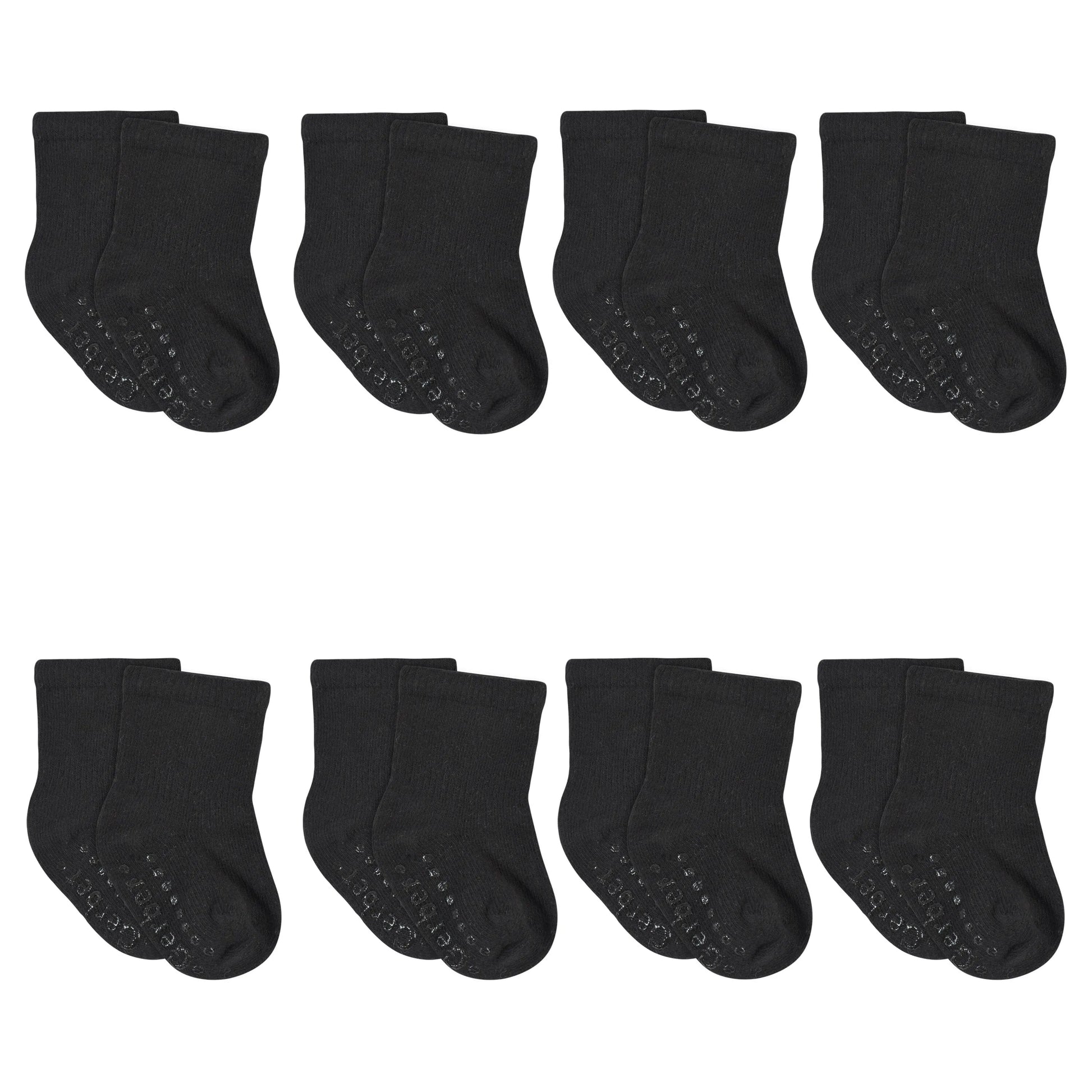 8-Pack Baby & Toddler Black Wiggle Proof Jersey Crew Socks