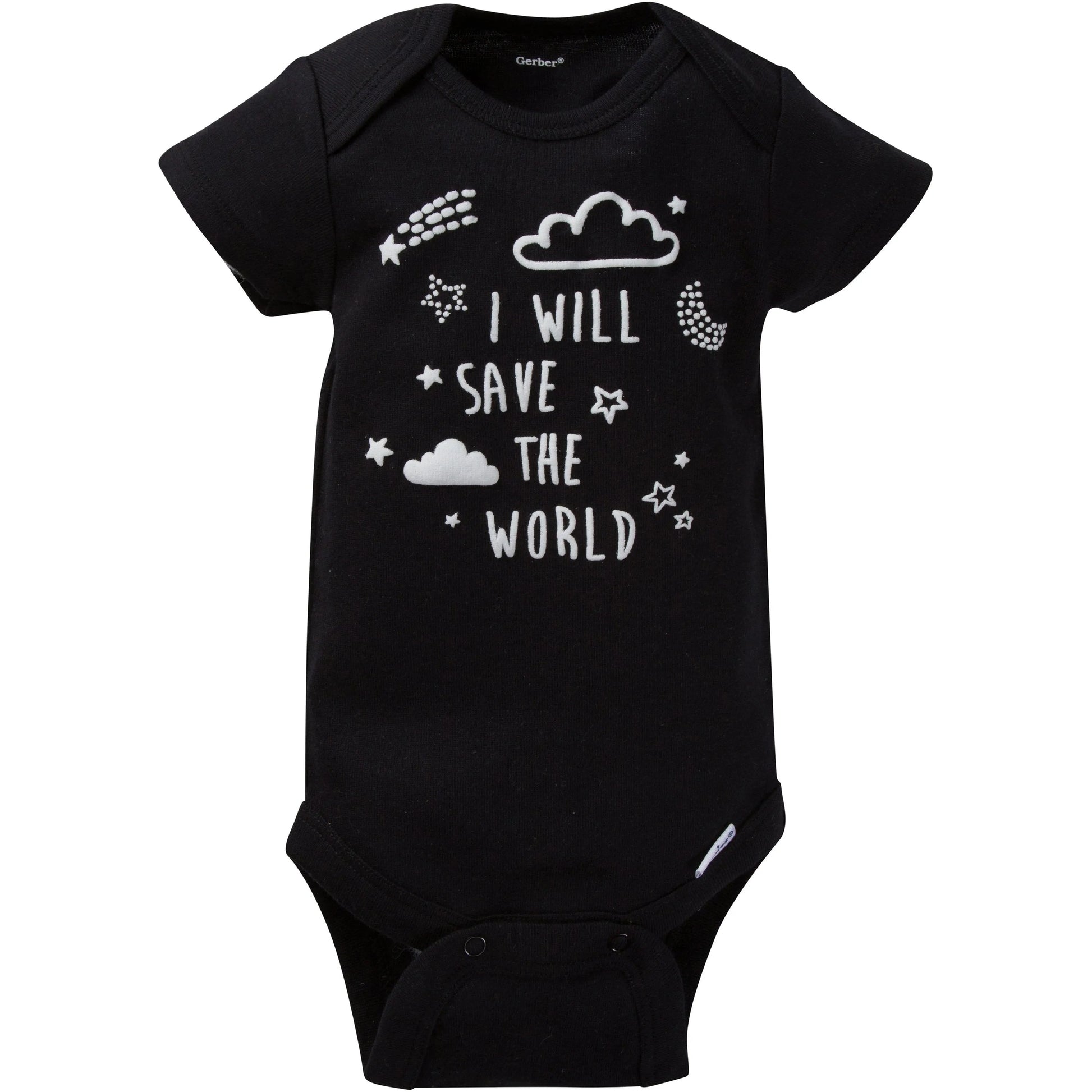 This 8-pack of baby boys' short sleeve Onesies bodysuits from Gerber is full of adorable fun! Themed designs are creatively featured in puff print details. He'll bring smiles to everyone he sees dressed in these sweet bodysuits. The comfortable, 100% cotton rib fabric breathes easily, keeping him feeling his best as he motors along on all of the day's adventures. The bottom snap closure that's higher in the front is designed with convenience in mind. Diaper changes go by more quickly with improved access. The machine wash and dry fabric helps to keep laundry day short and sweet for busy moms.
