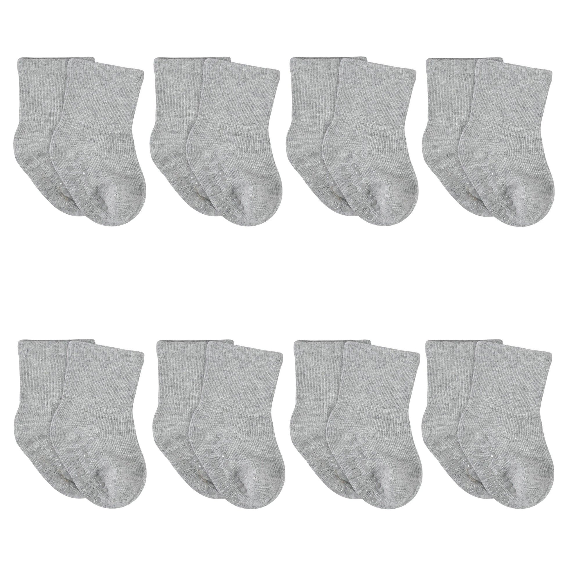 8-Pack Baby & Toddler Gray Heather Wiggle Proof Jersey Crew Socks
