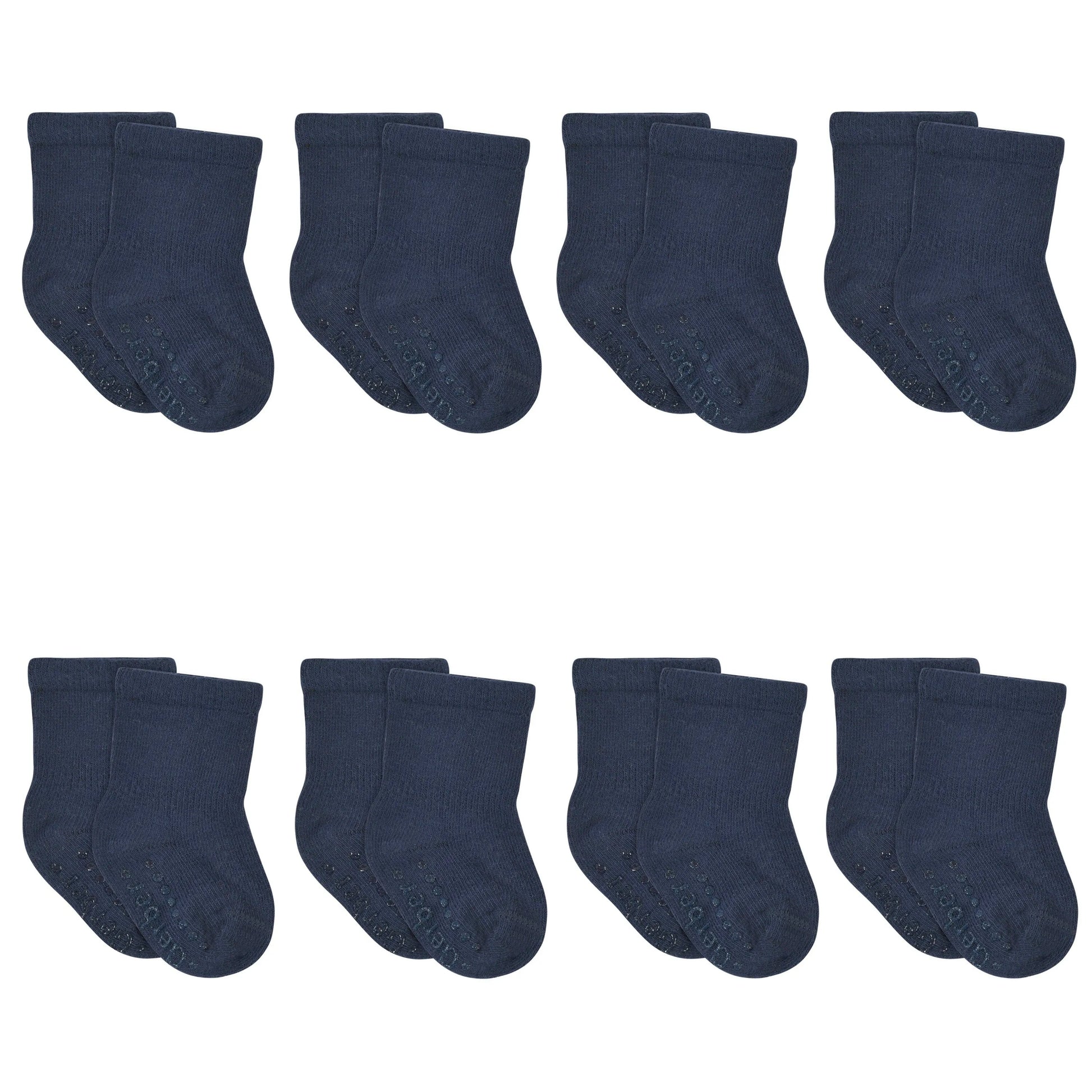 8-Pack Baby & Toddler Navy Wiggle Proof Jersey Crew Socks