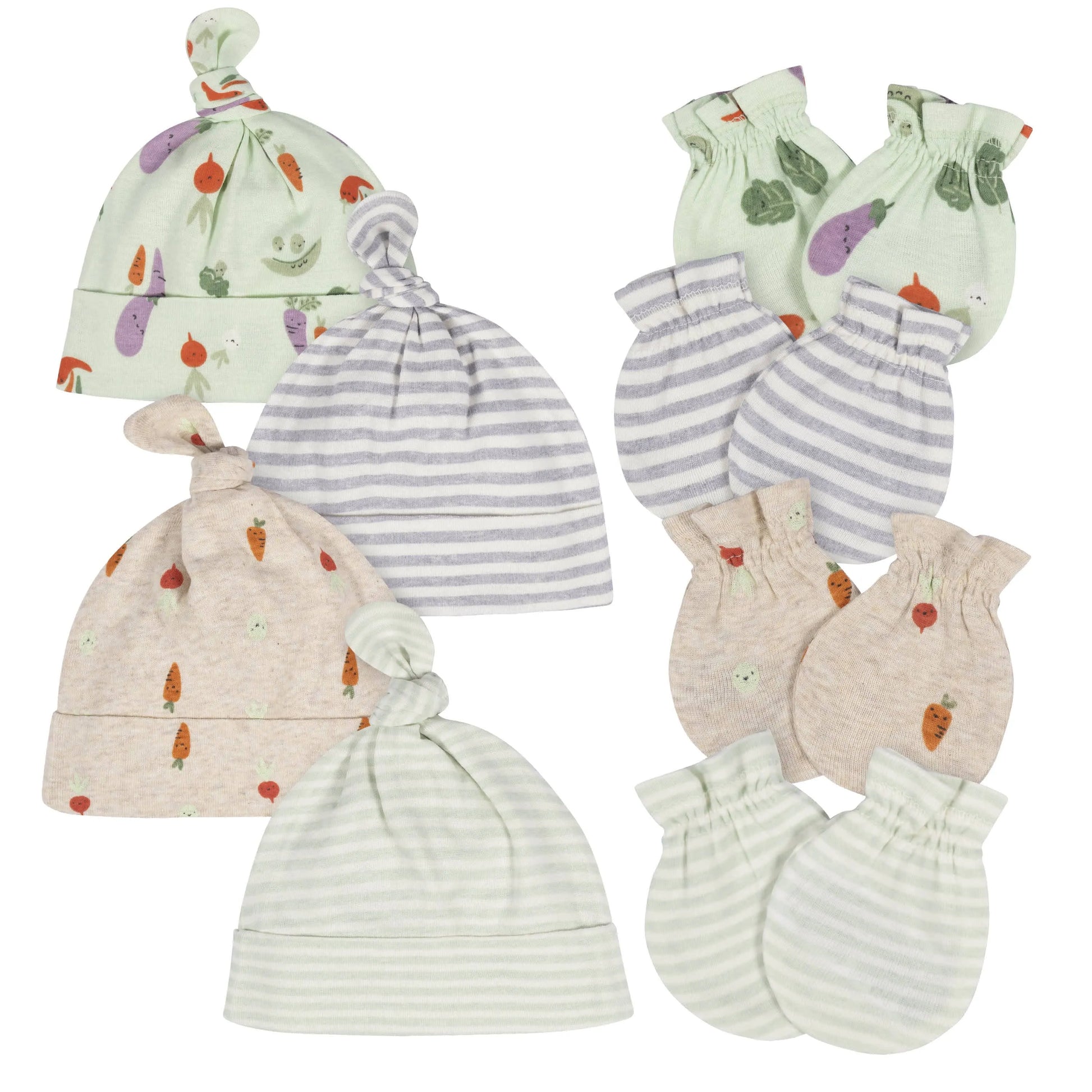 8-Piece Baby Neutral Happy Veggies No Scratch Mittens & Caps Set