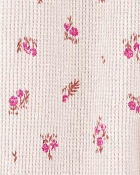 Baby Floral 2-Way Zip Waffle Knit Sleep & Play Pajamas - Khaki