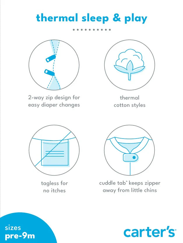 Carter's Baby Floral Trim 2-Way Zip Thermal Textured Sleep & Play