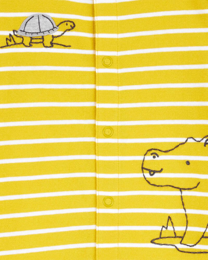 Sweeten his wardrobe with this short-sleeve snap-up romper with a super cute print.