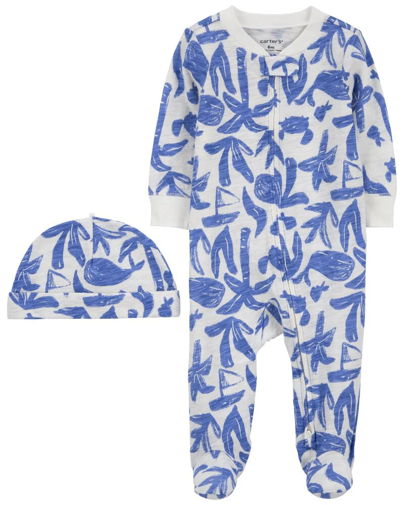 Carter's Whale Cotton Sleeper & Cap Set