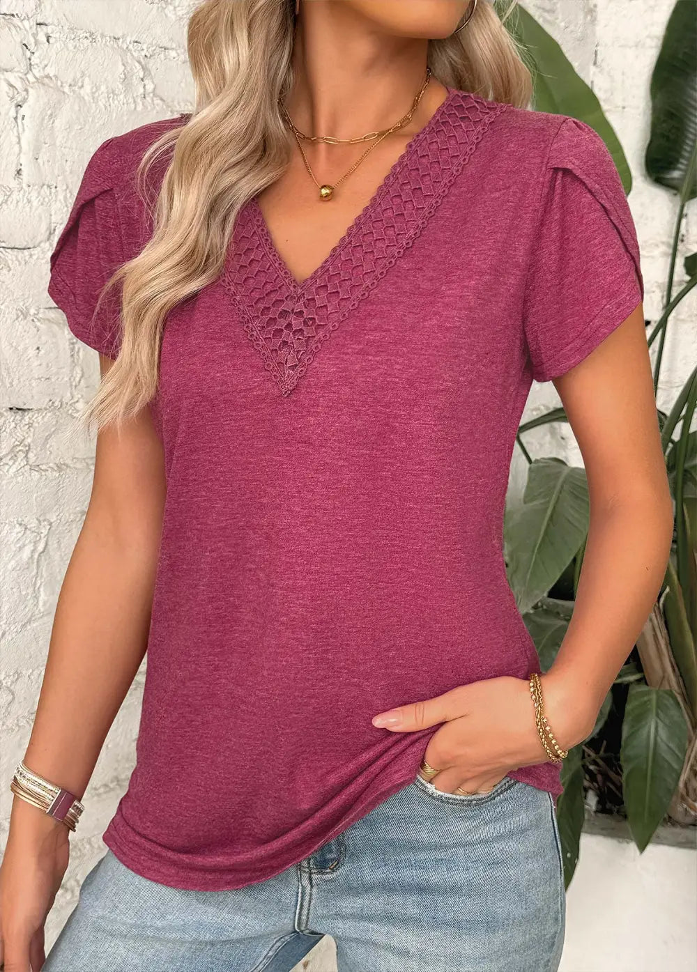 Dark Reddish Purple Short Sleeve V Neck T Shirt