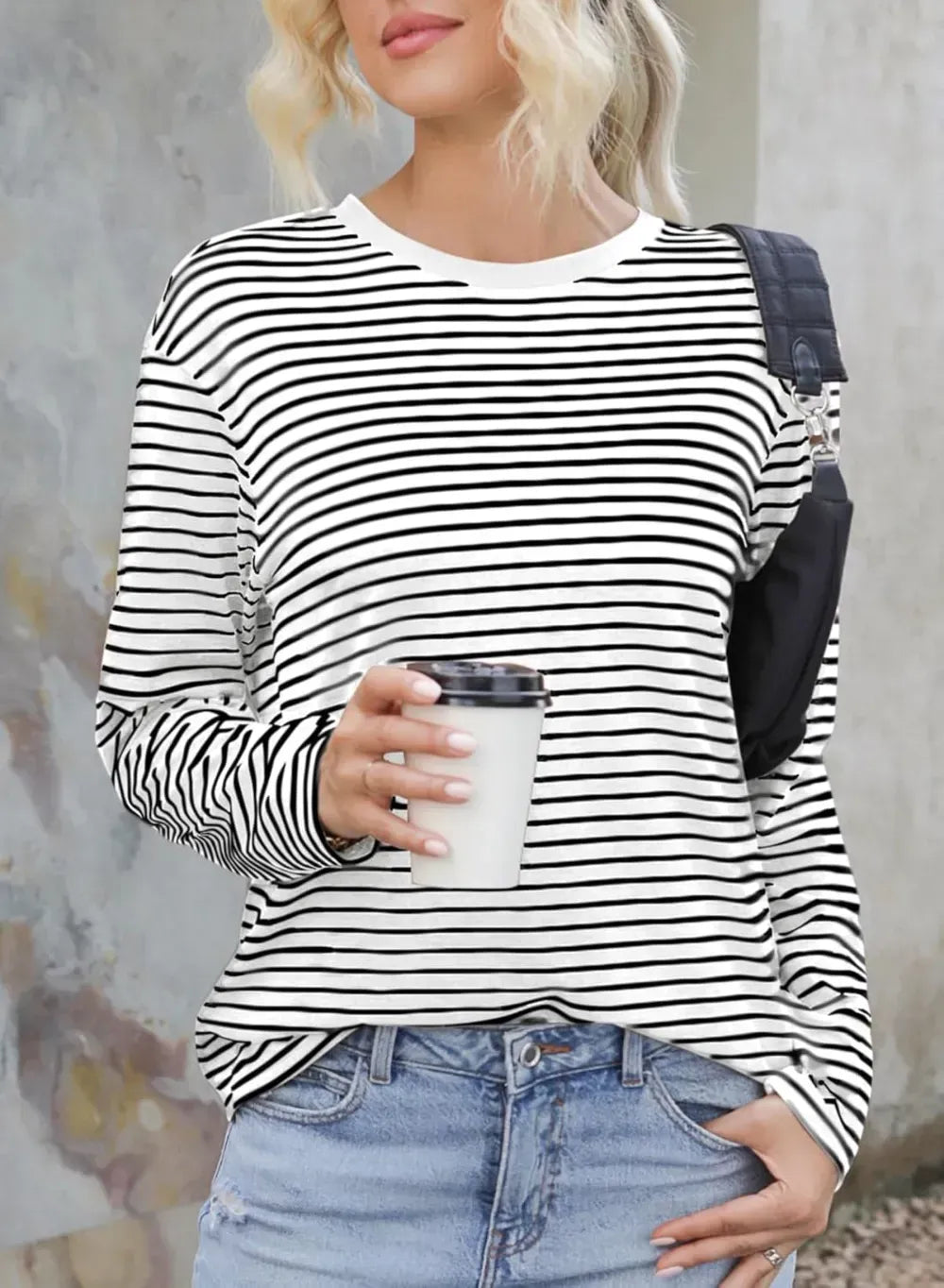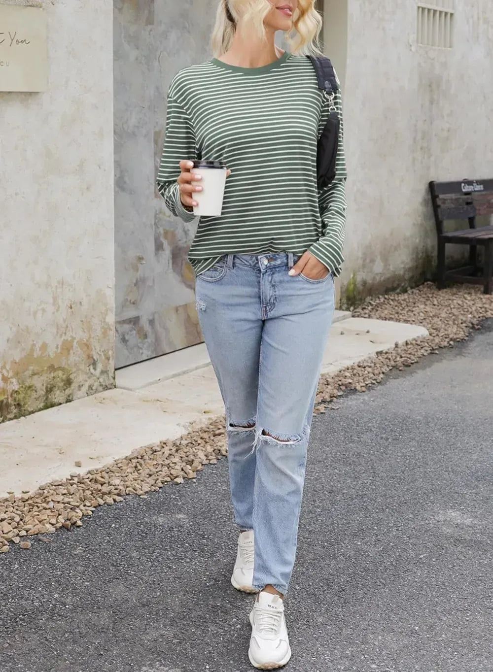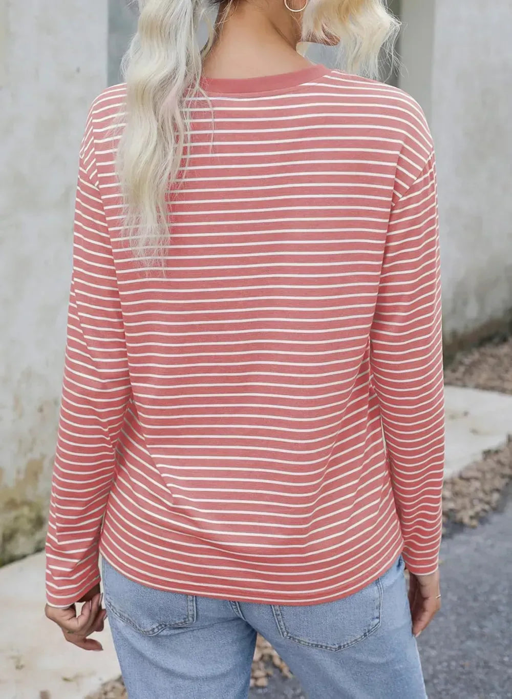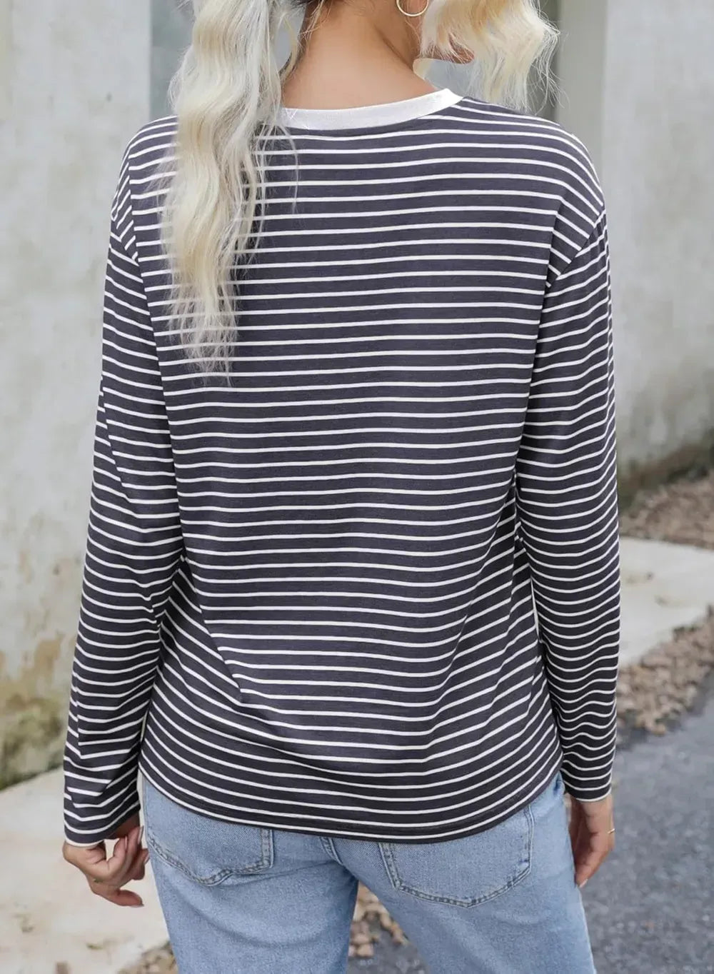 Dokotoo Women's Casual Striped Long Sleeve Tops Crew Neck Knit Ribbed Basic T Shirts