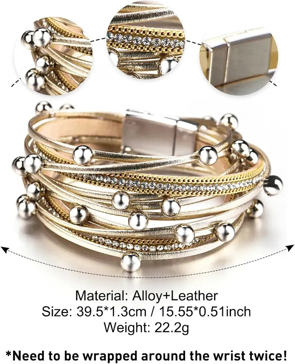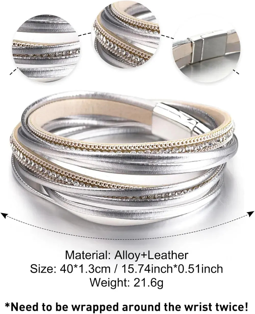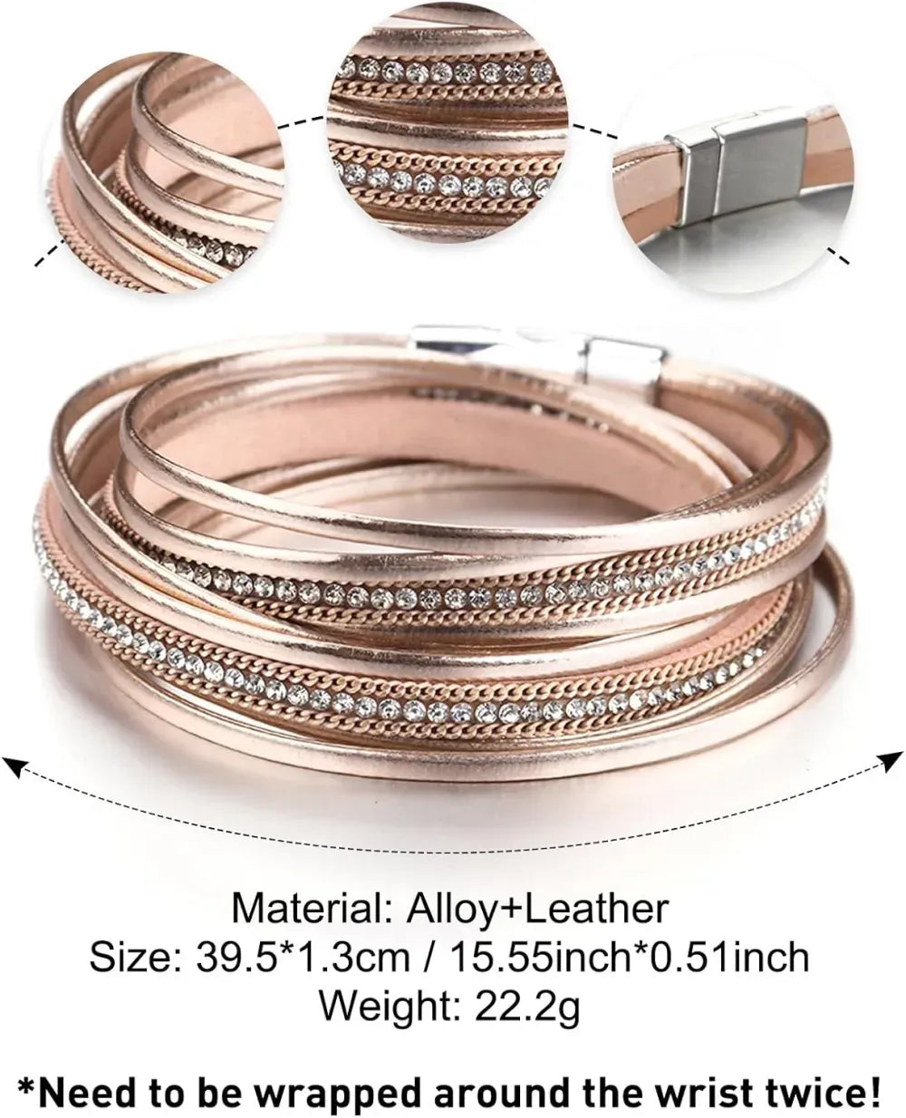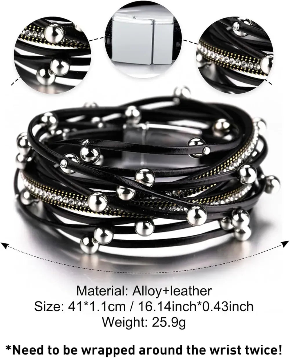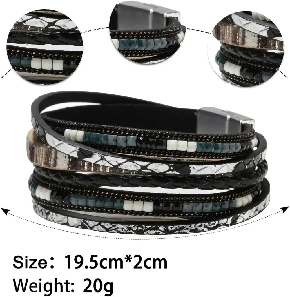 Fesciory Leather Wrap Bracelets for Women, Boho Leopard Multi-Layer Crystal Beads Cuff Bracelet Jewelry