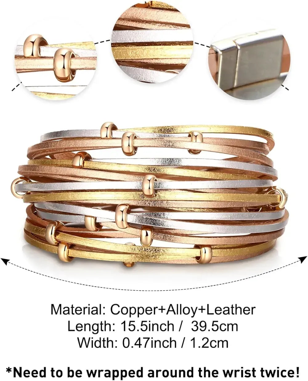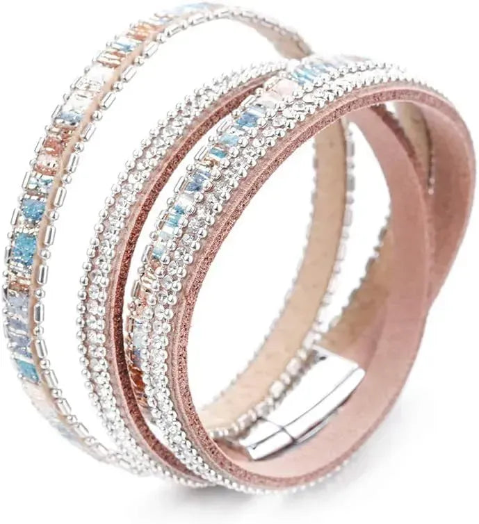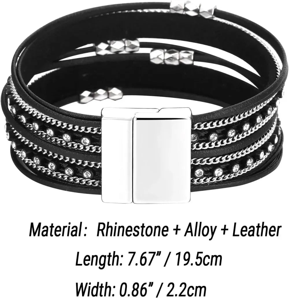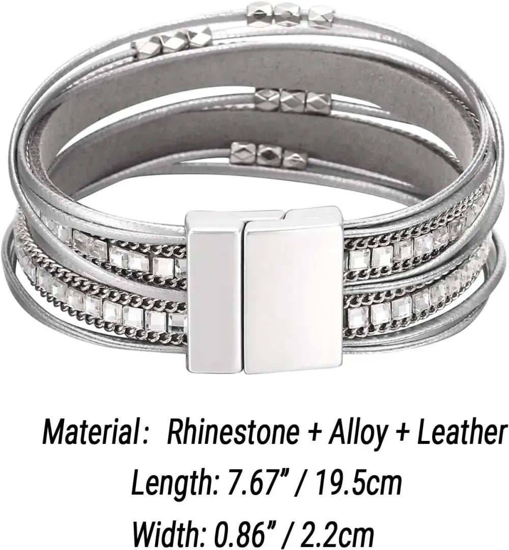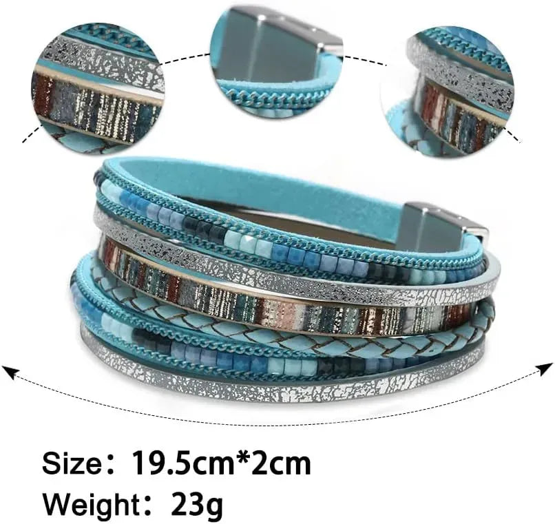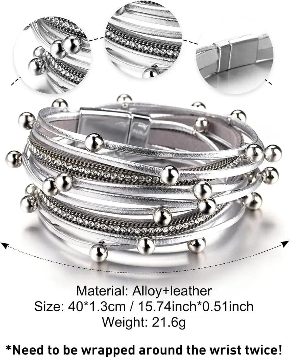 Fesciory Leather Wrap Bracelets for Women, Boho Leopard Multi-Layer Crystal Beads Cuff Bracelet Jewelry