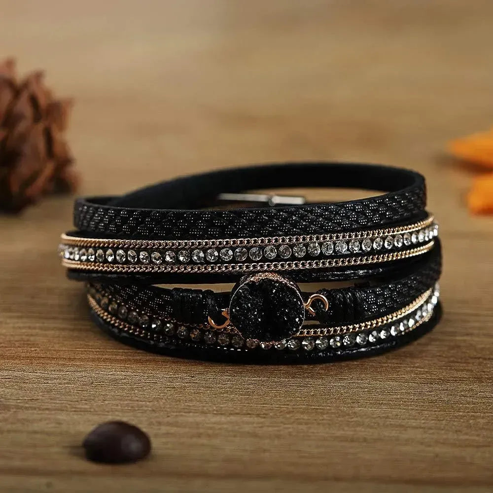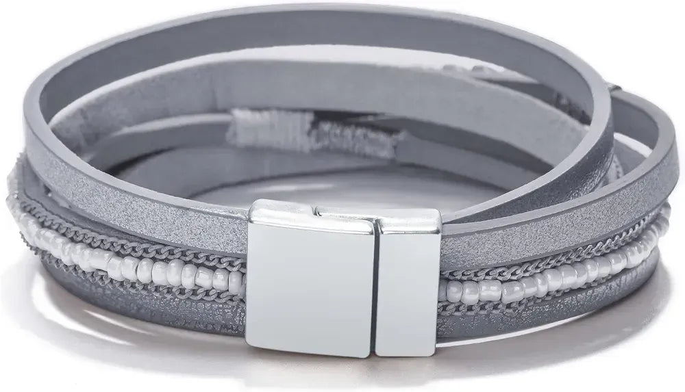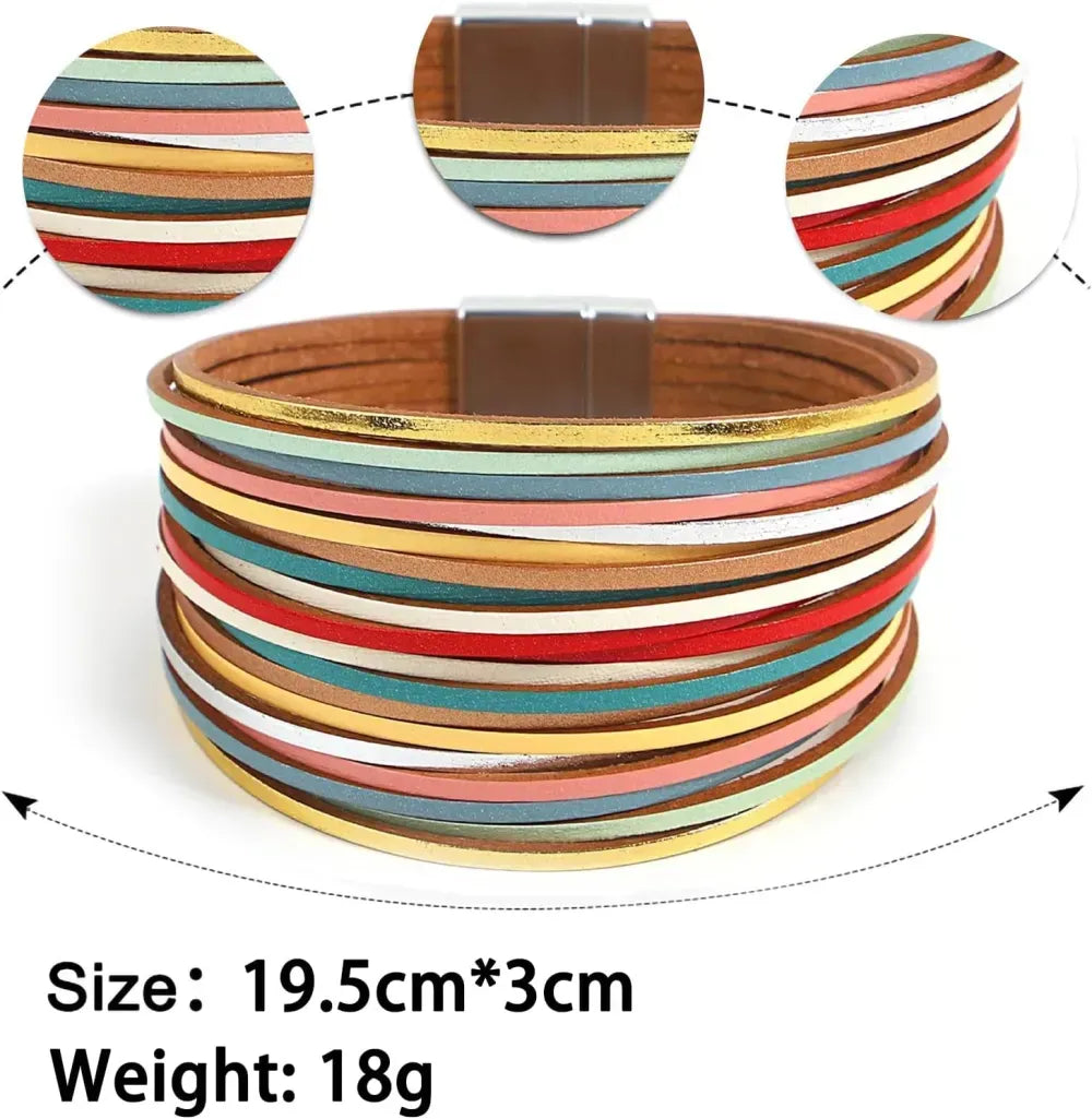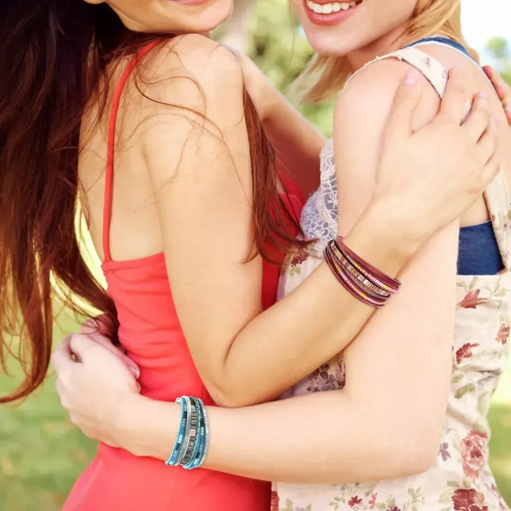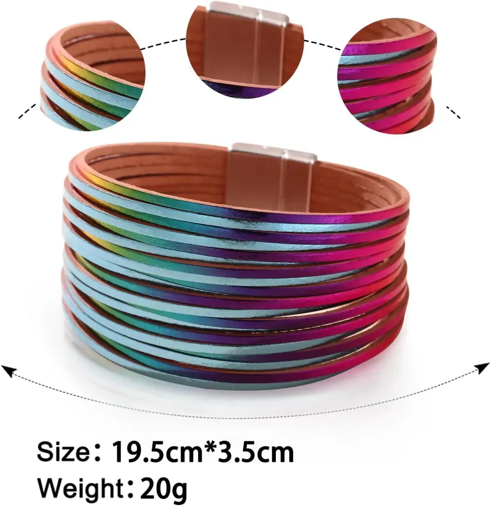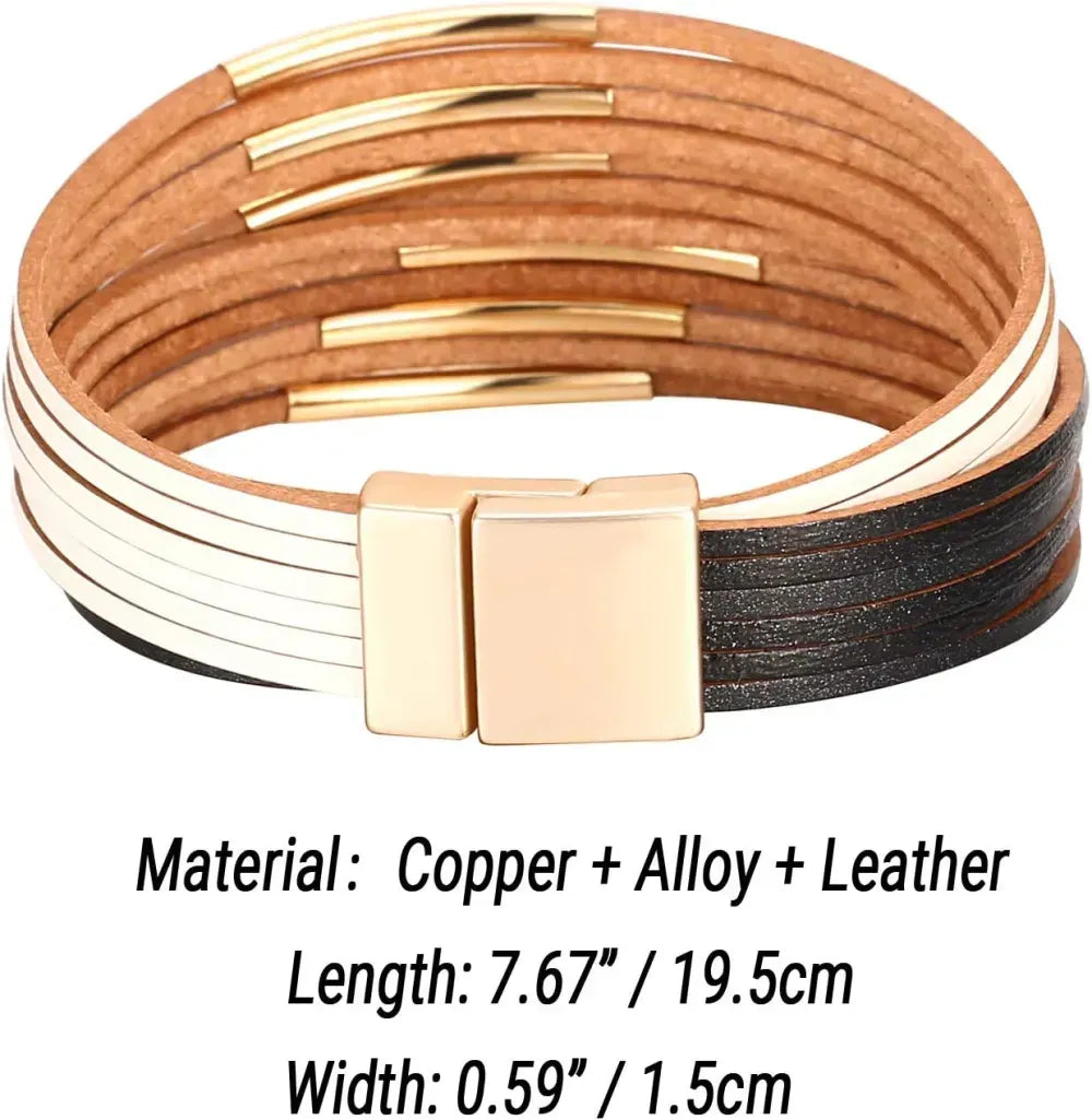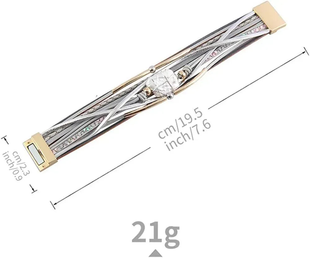 Fesciory Leather Wrap Bracelets for Women, Boho Leopard Multi-Layer Crystal Beads Cuff Bracelet Jewelry