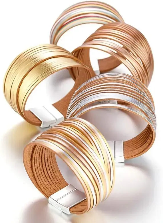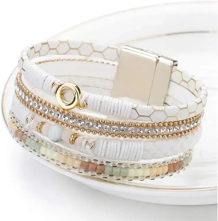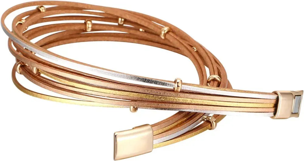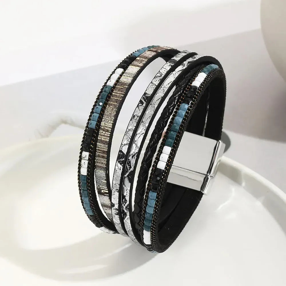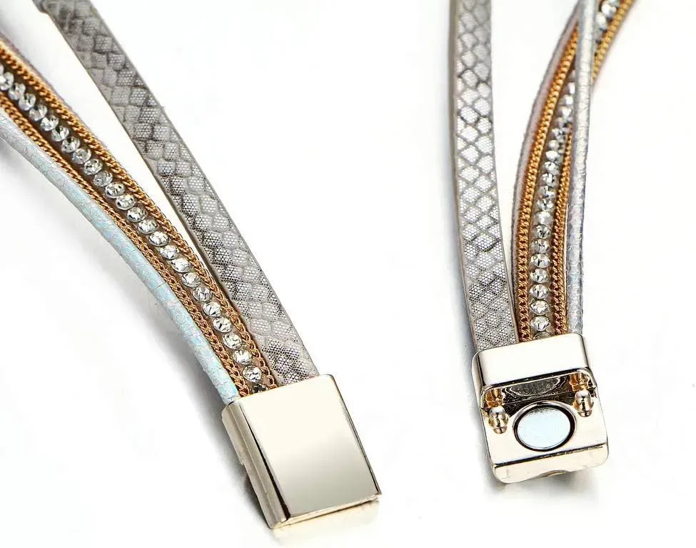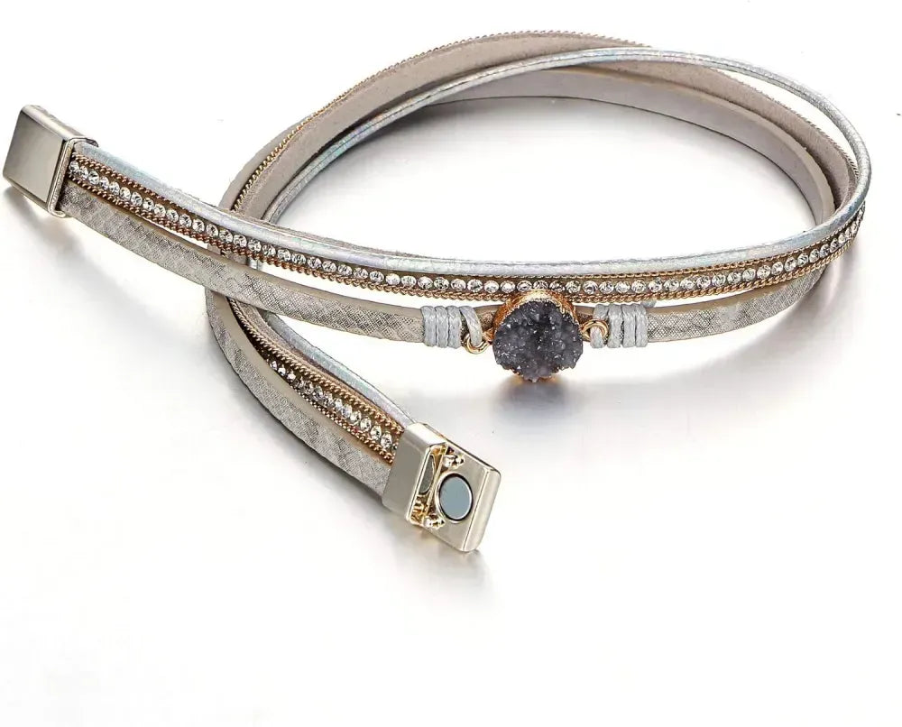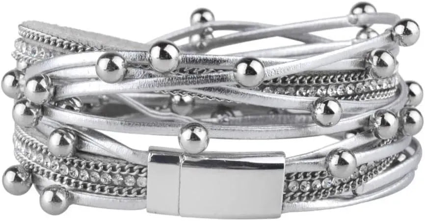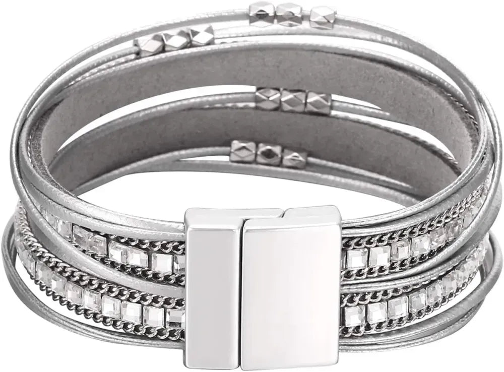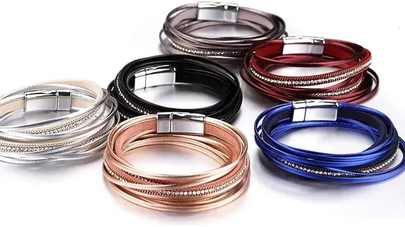 Fesciory Leather Wrap Bracelets for Women, Boho Leopard Multi-Layer Crystal Beads Cuff Bracelet Jewelry