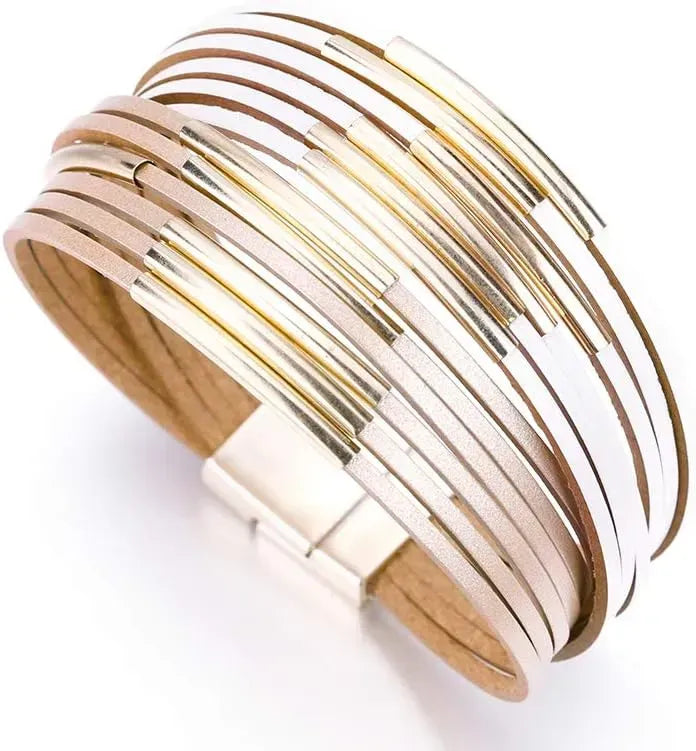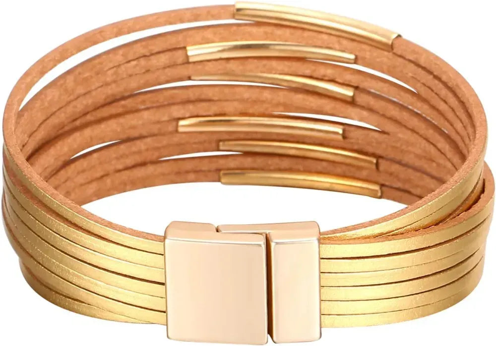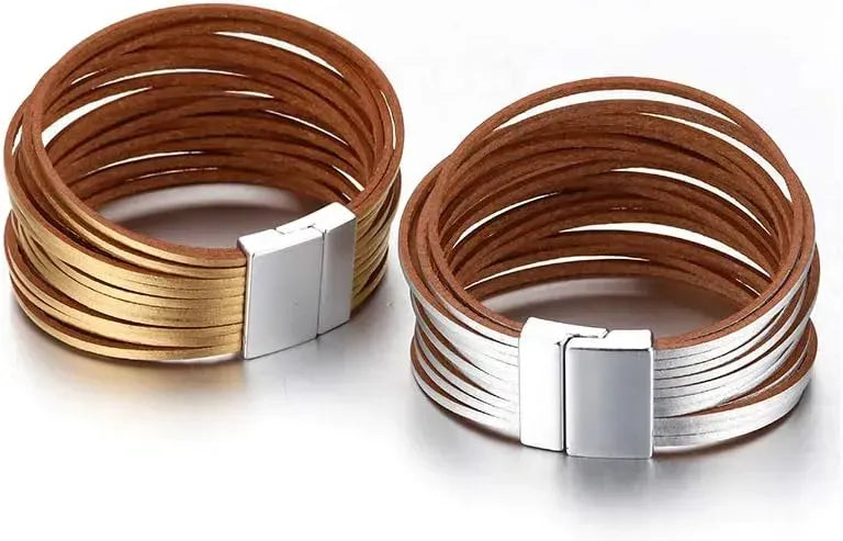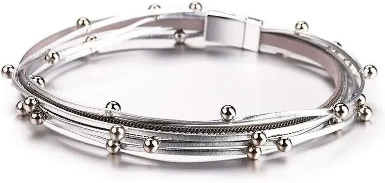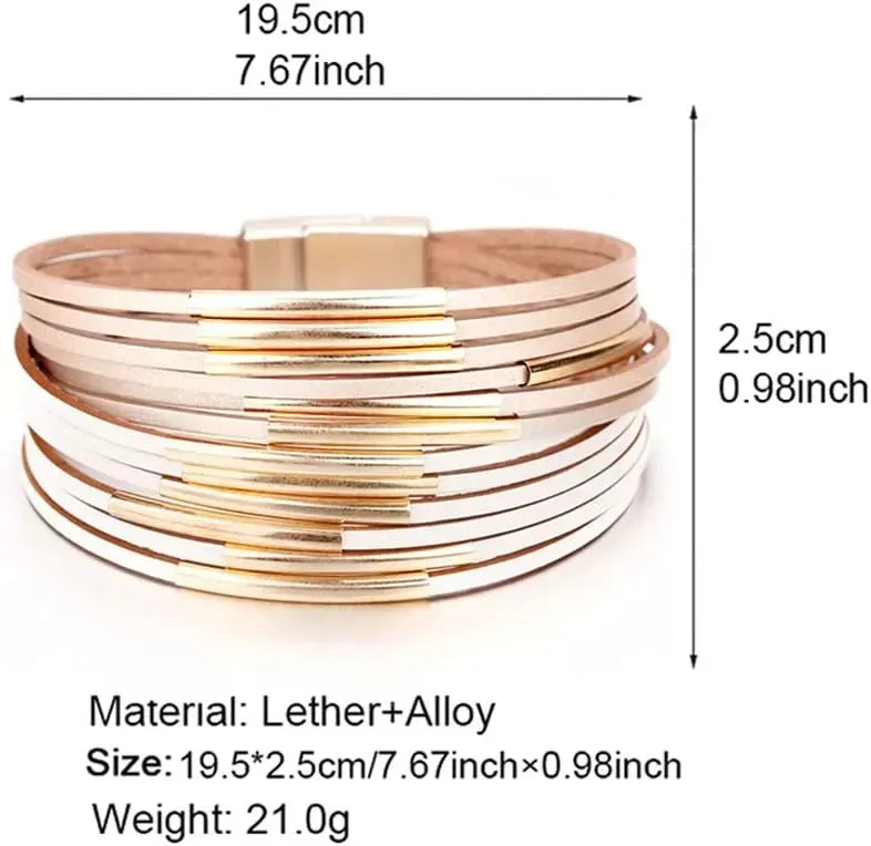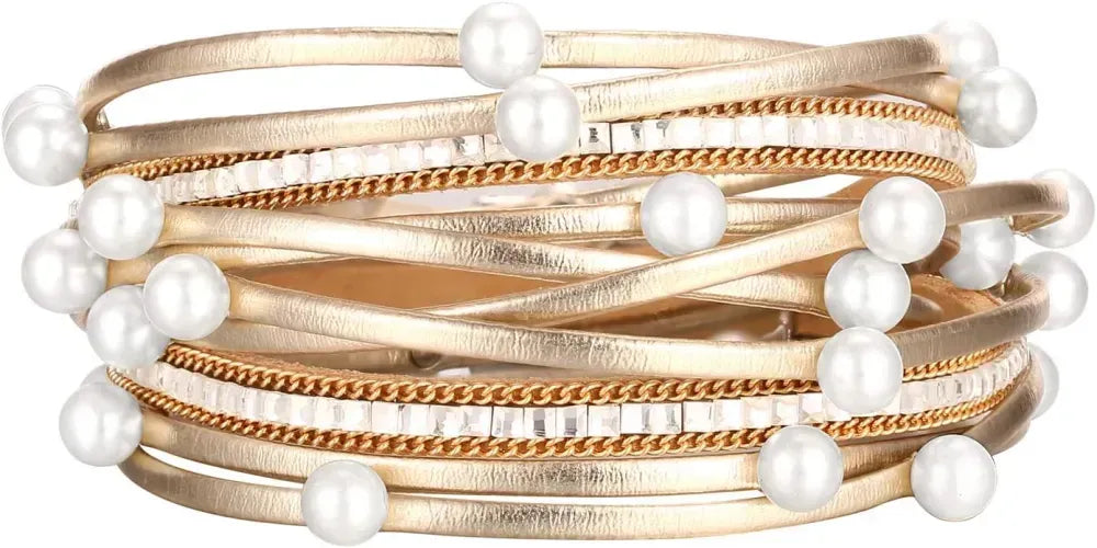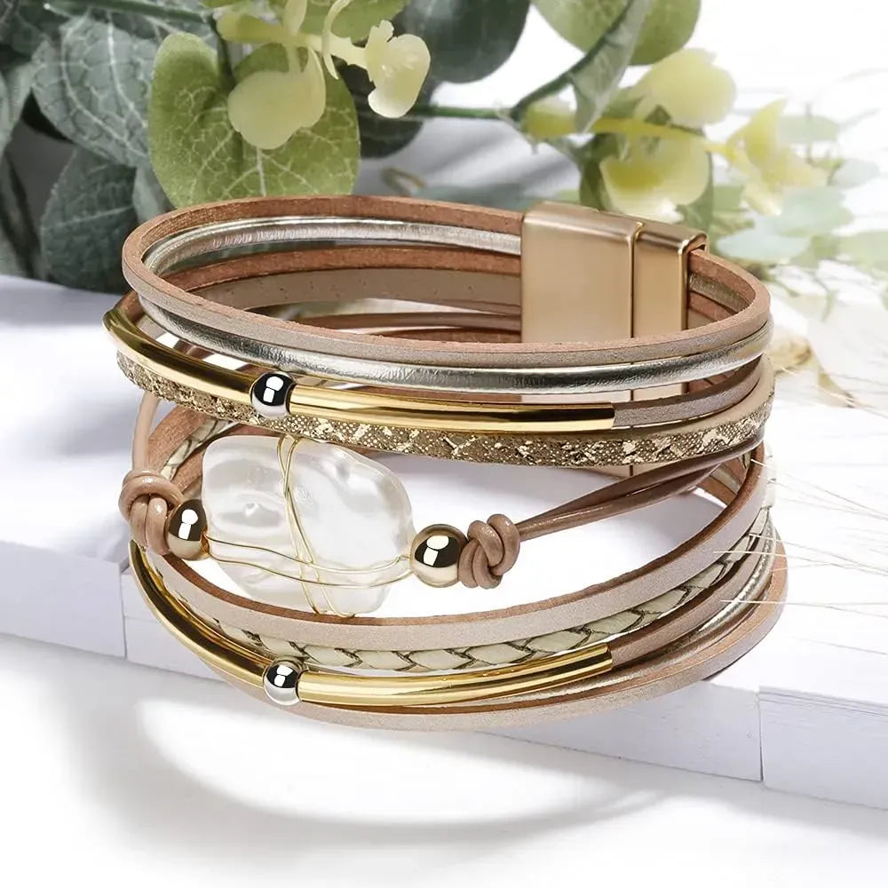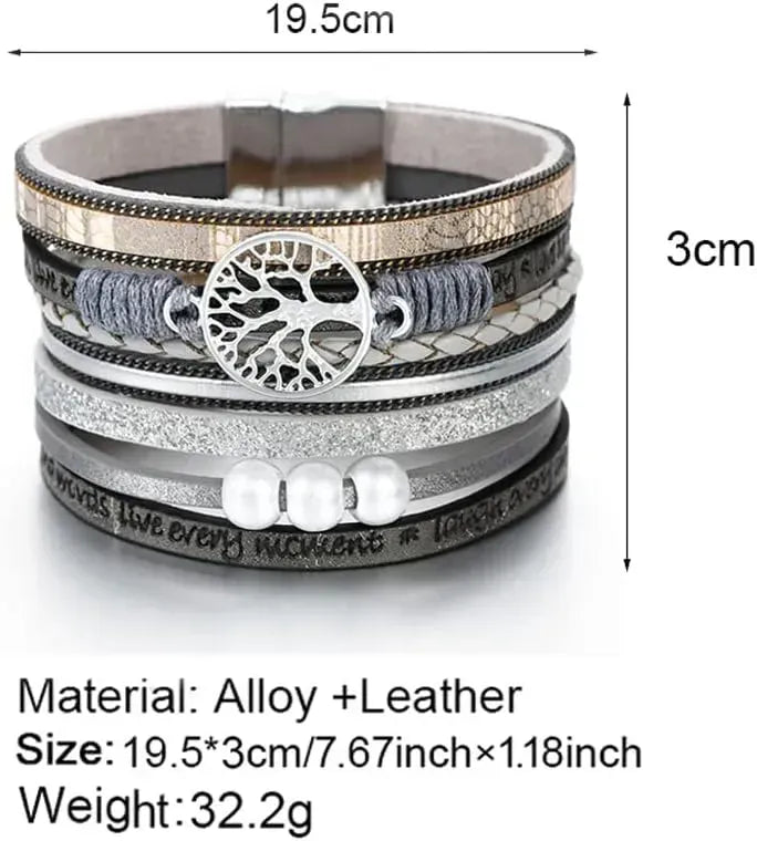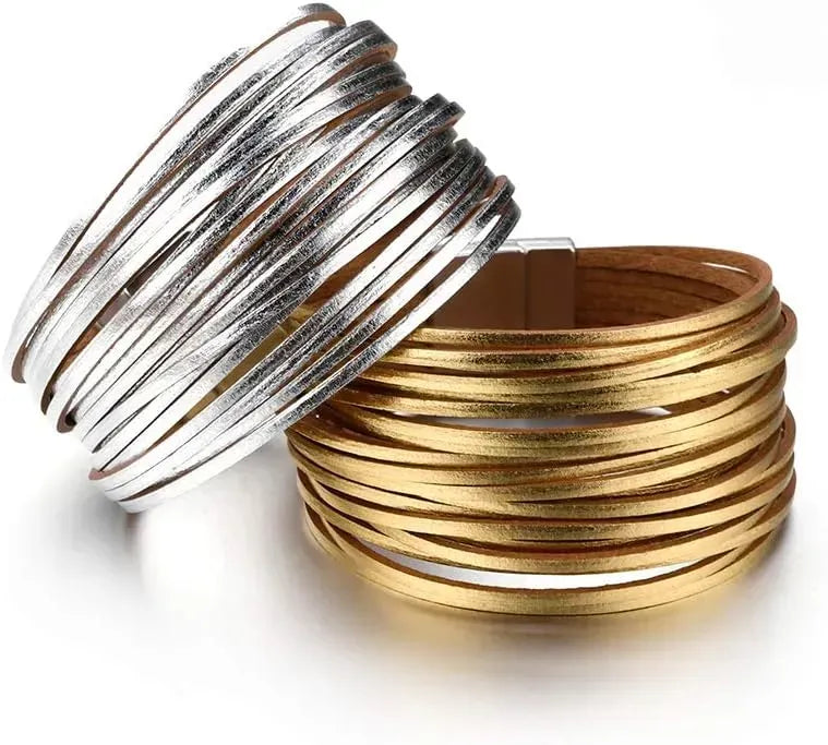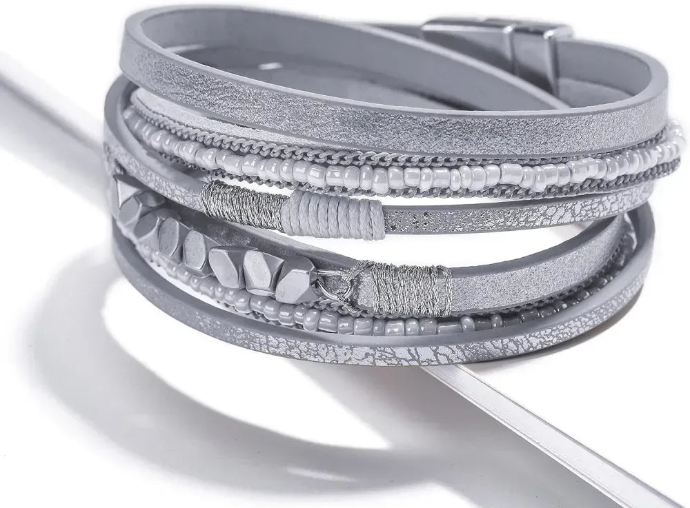 Fesciory Leather Wrap Bracelets for Women, Boho Leopard Multi-Layer Crystal Beads Cuff Bracelet Jewelry