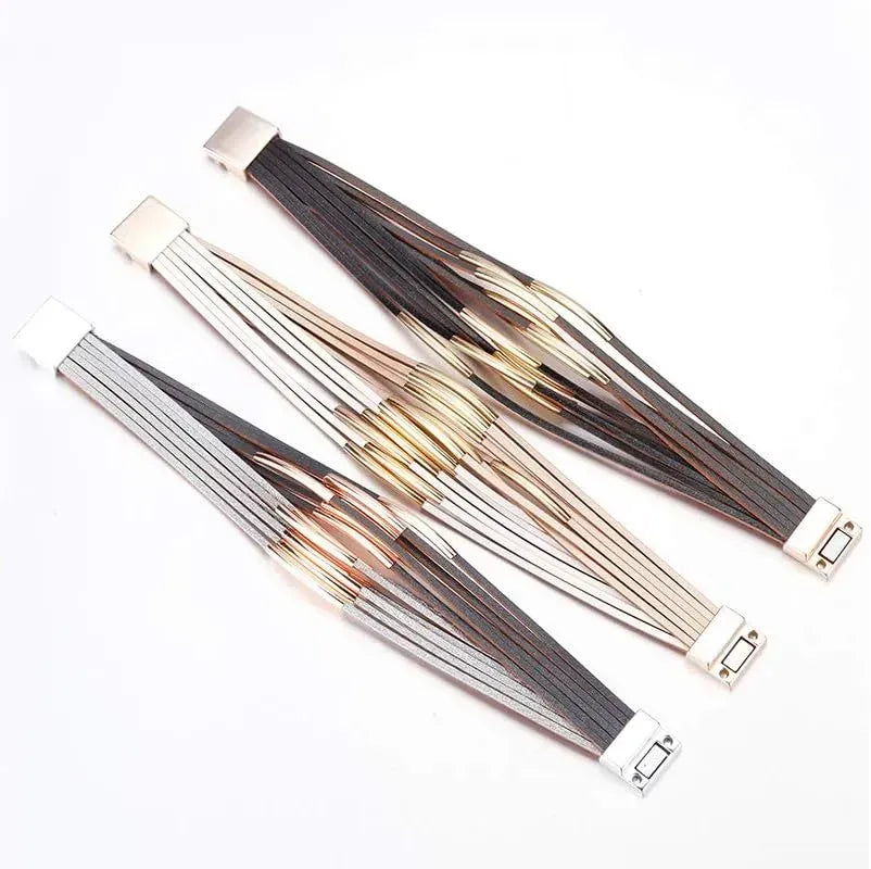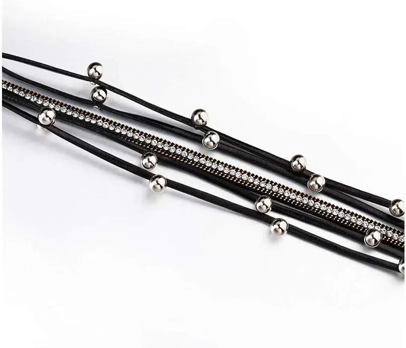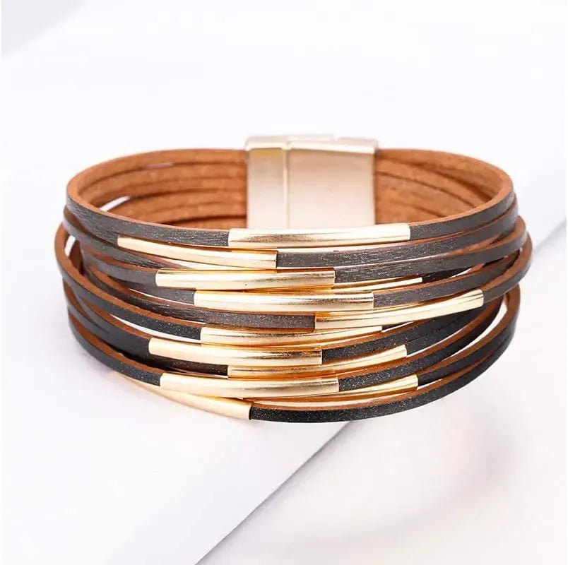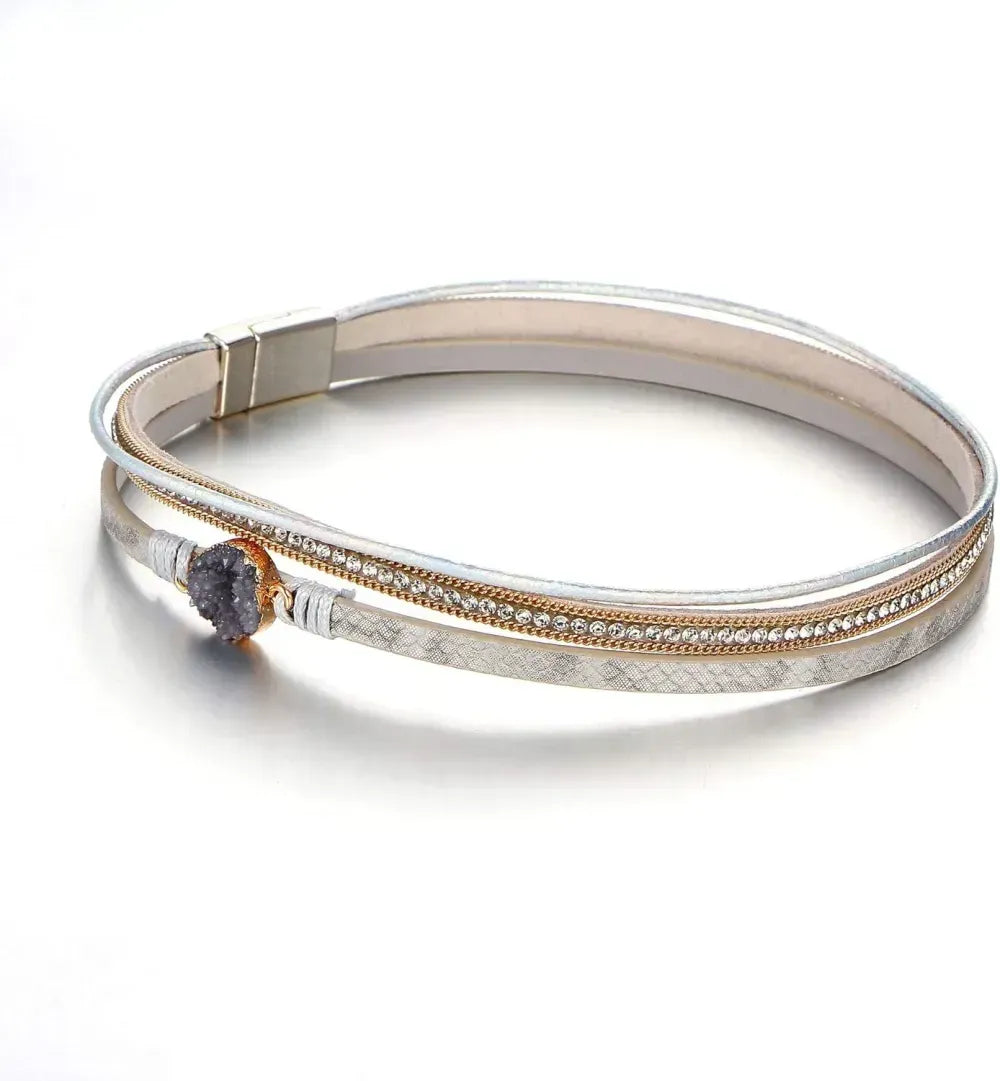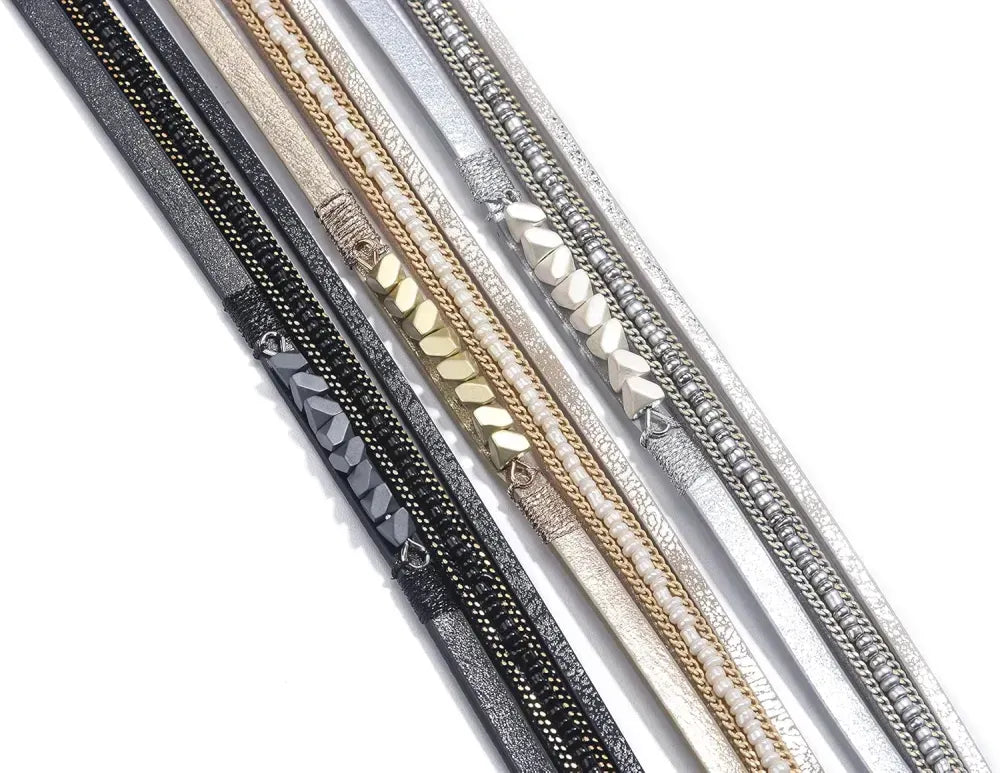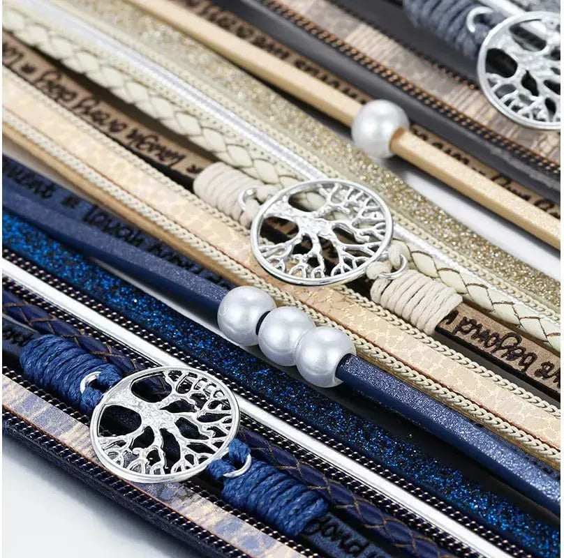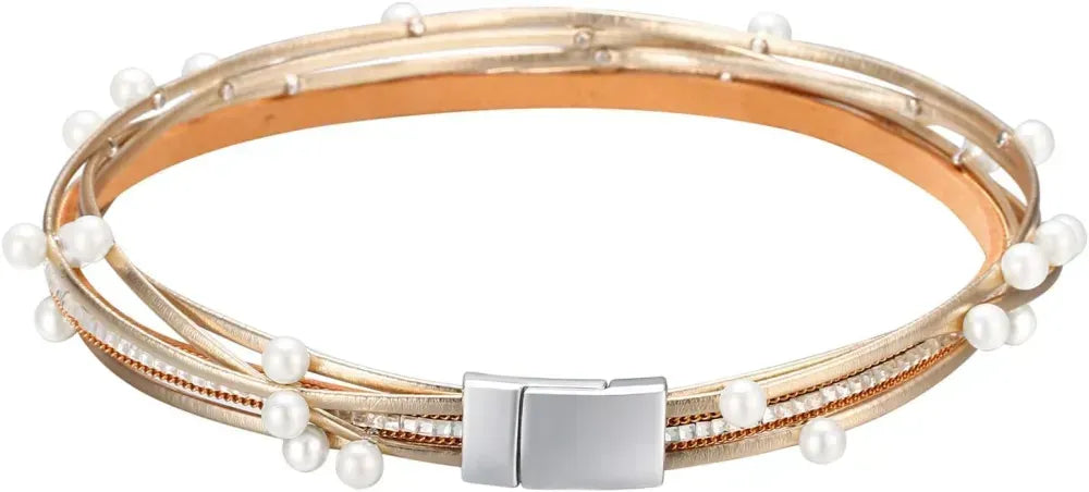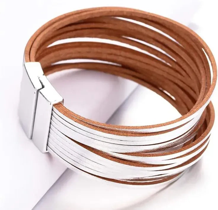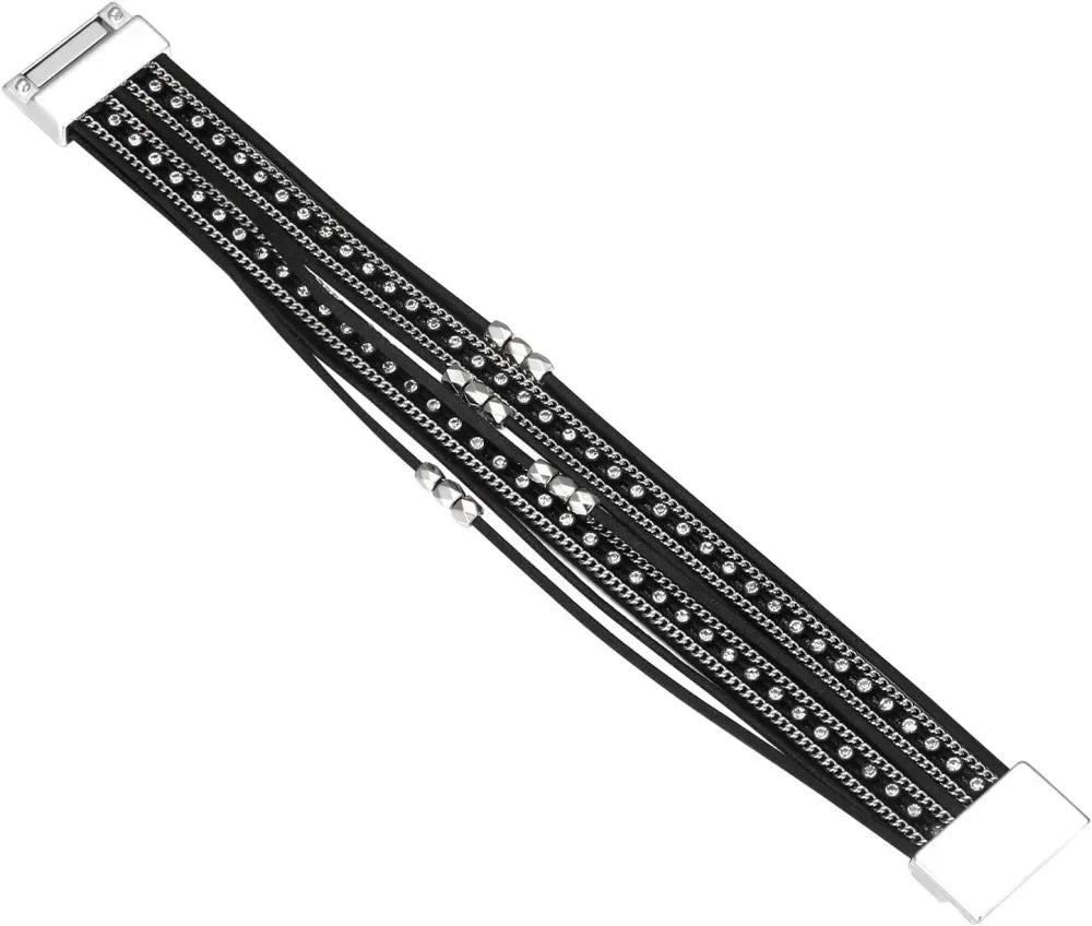 Fesciory Leather Wrap Bracelets for Women, Boho Leopard Multi-Layer Crystal Beads Cuff Bracelet Jewelry
