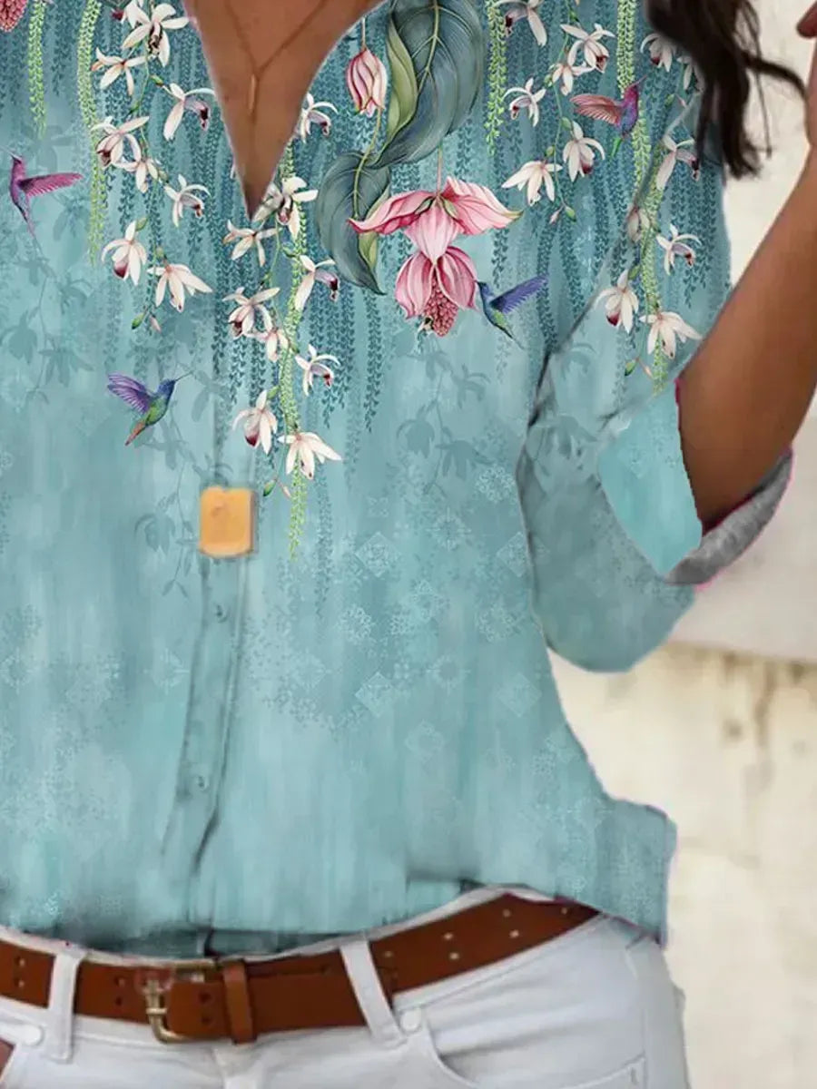 Floral Print Loose Casual Long-sleeved Blouse