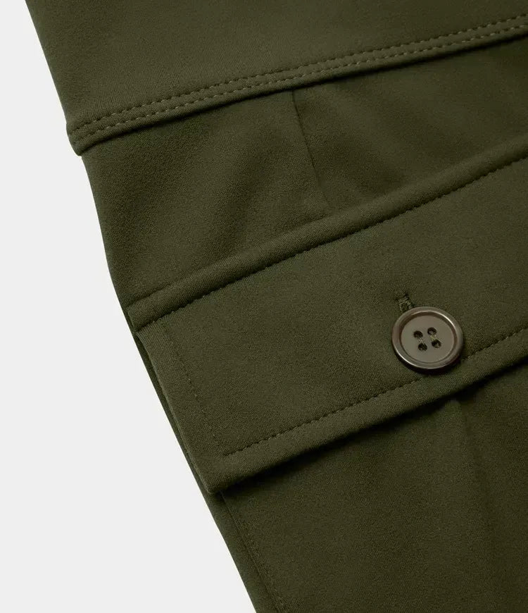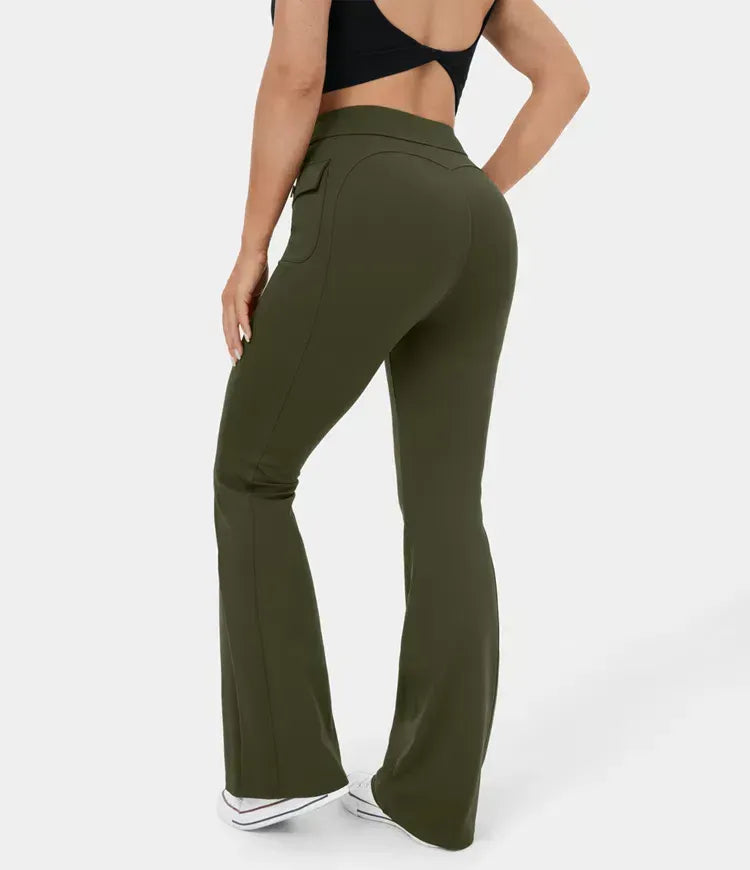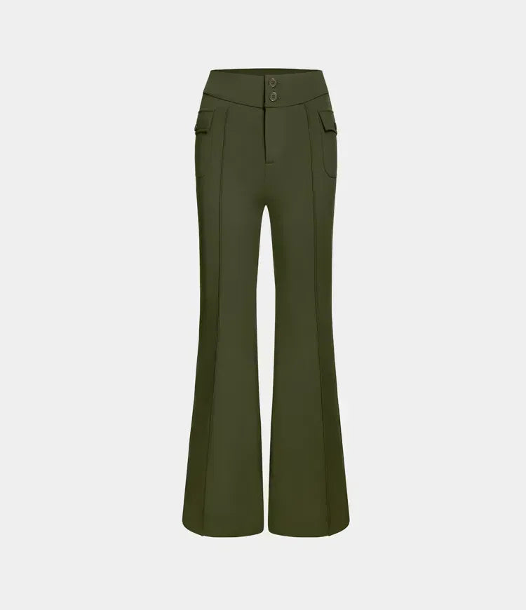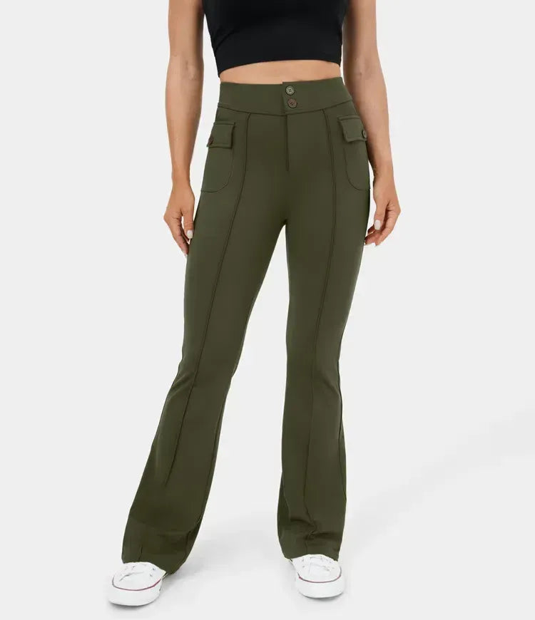 High Waisted Button Side Flap Pocket Flare Casual Cargo Pants