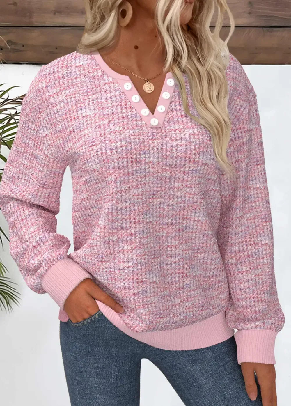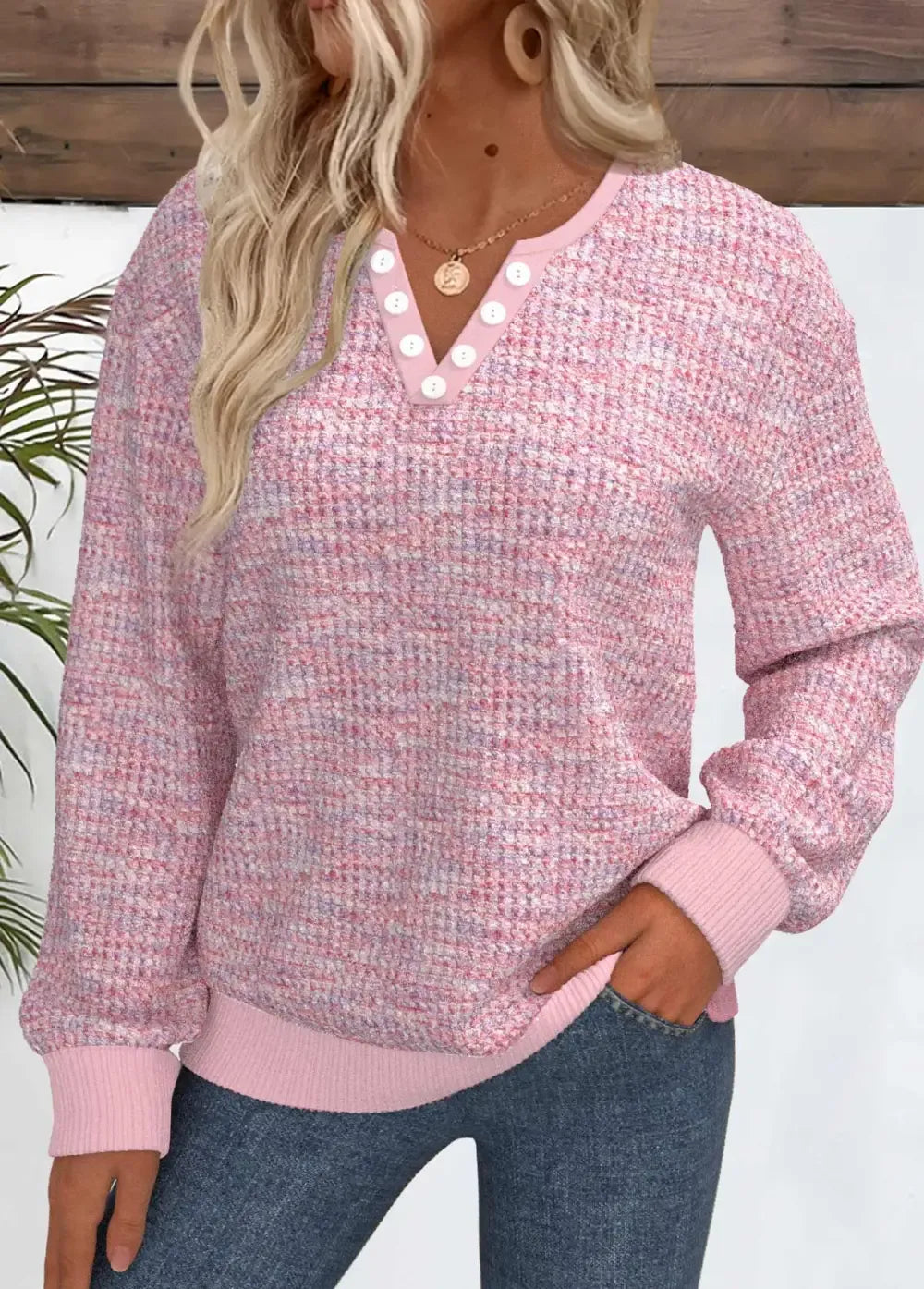 Light Pink Button Dazzle Colorful Print Long Sleeve Sweatshirt